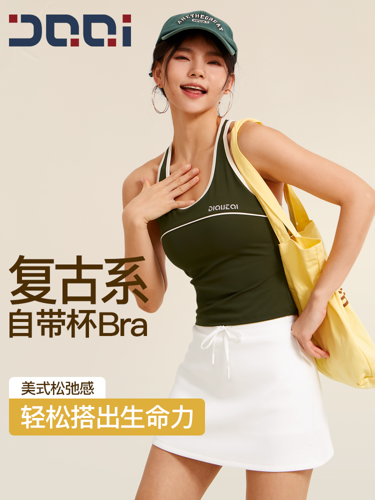 WomenYoga topstrange retro wind light sports vest women’s one cup long underwear fitness clothes top sport top fitness