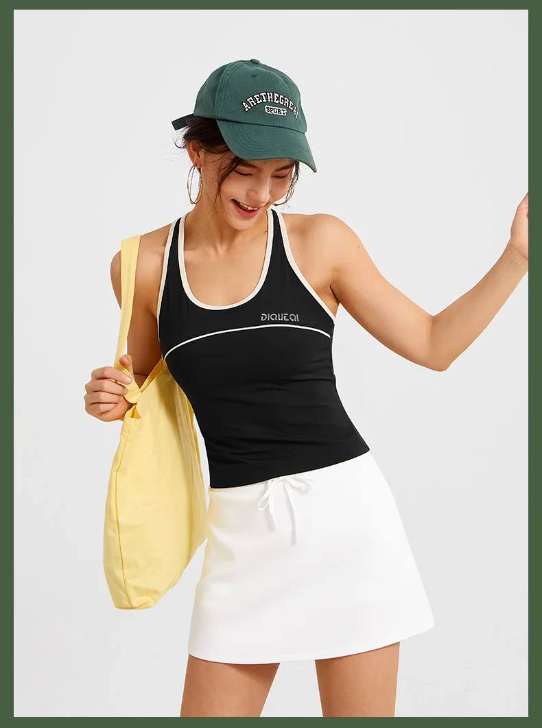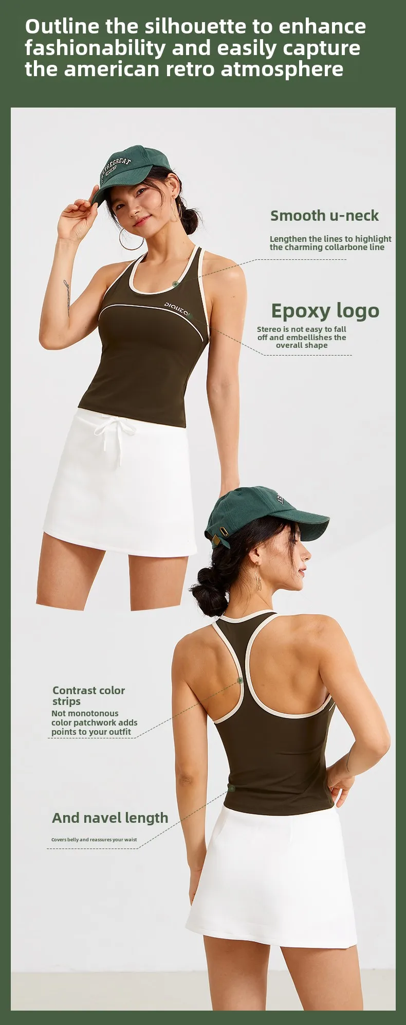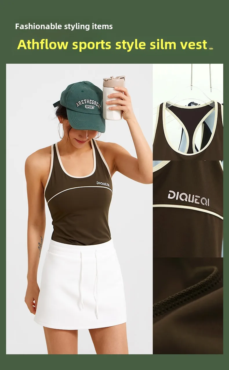 WomenYoga topstrange retro wind light sports vest women’s one cup long underwear fitness clothes top sport top fitness