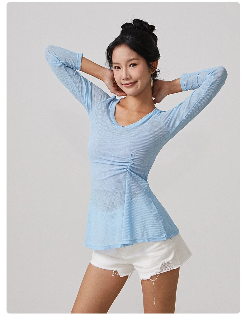 Yoga clothes women’ssoft bamboo yarn ballet training casual and thin temperament long-sleeved fitness clothes t-shirt