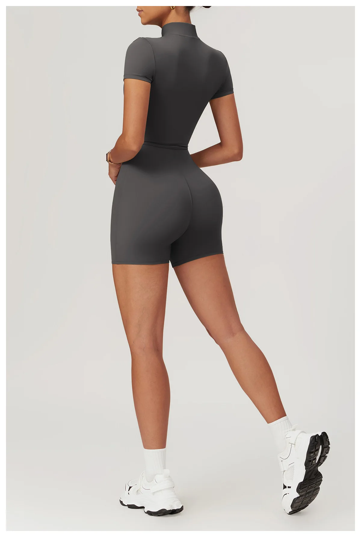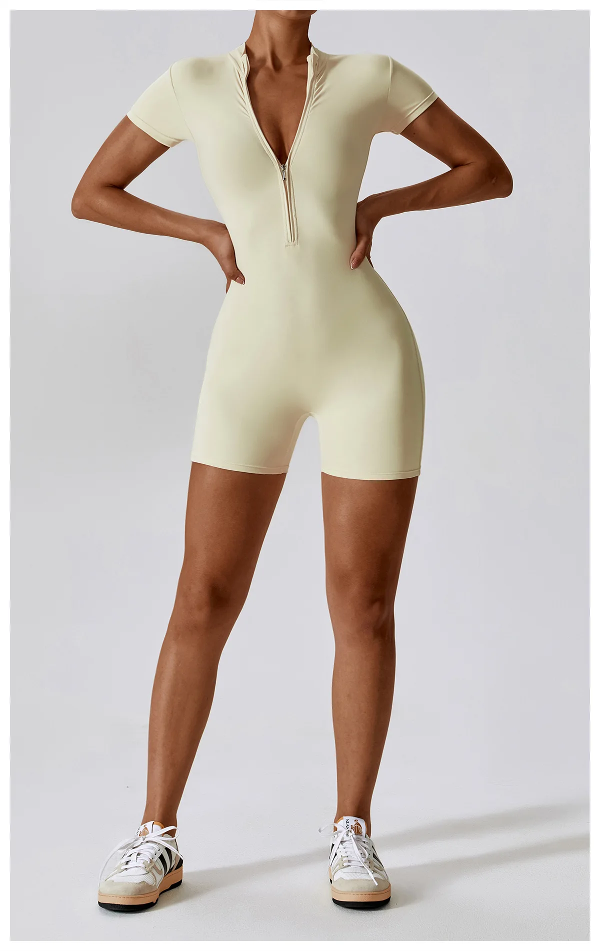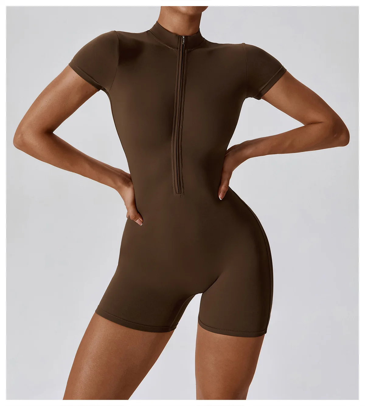 Yoga Jumpsuits Set Women’s Tracksuit One-Piece Suit Gym Push Up Workout Clothes Zipper Short Sleeve Fitness Bodysuit Sportswear
