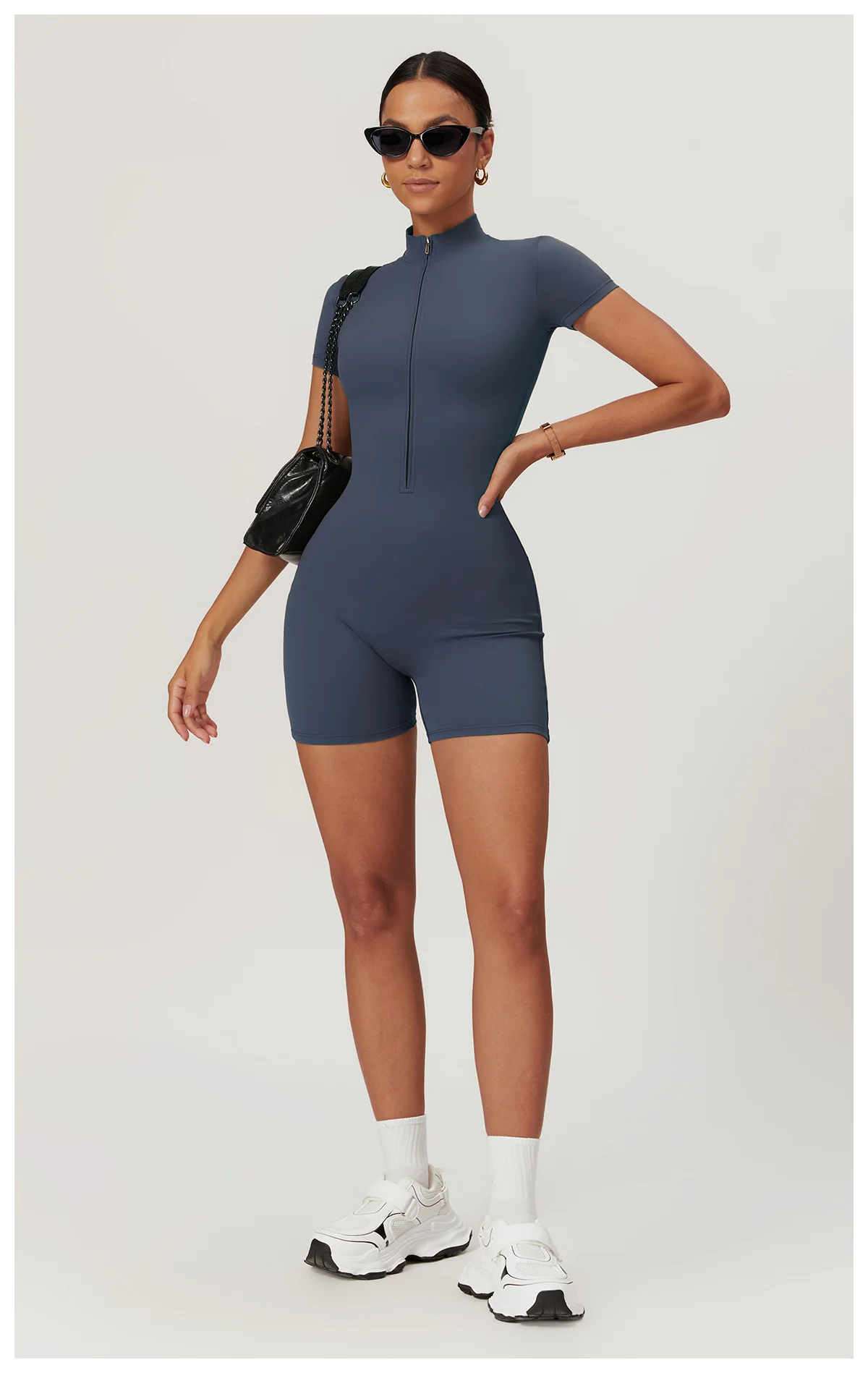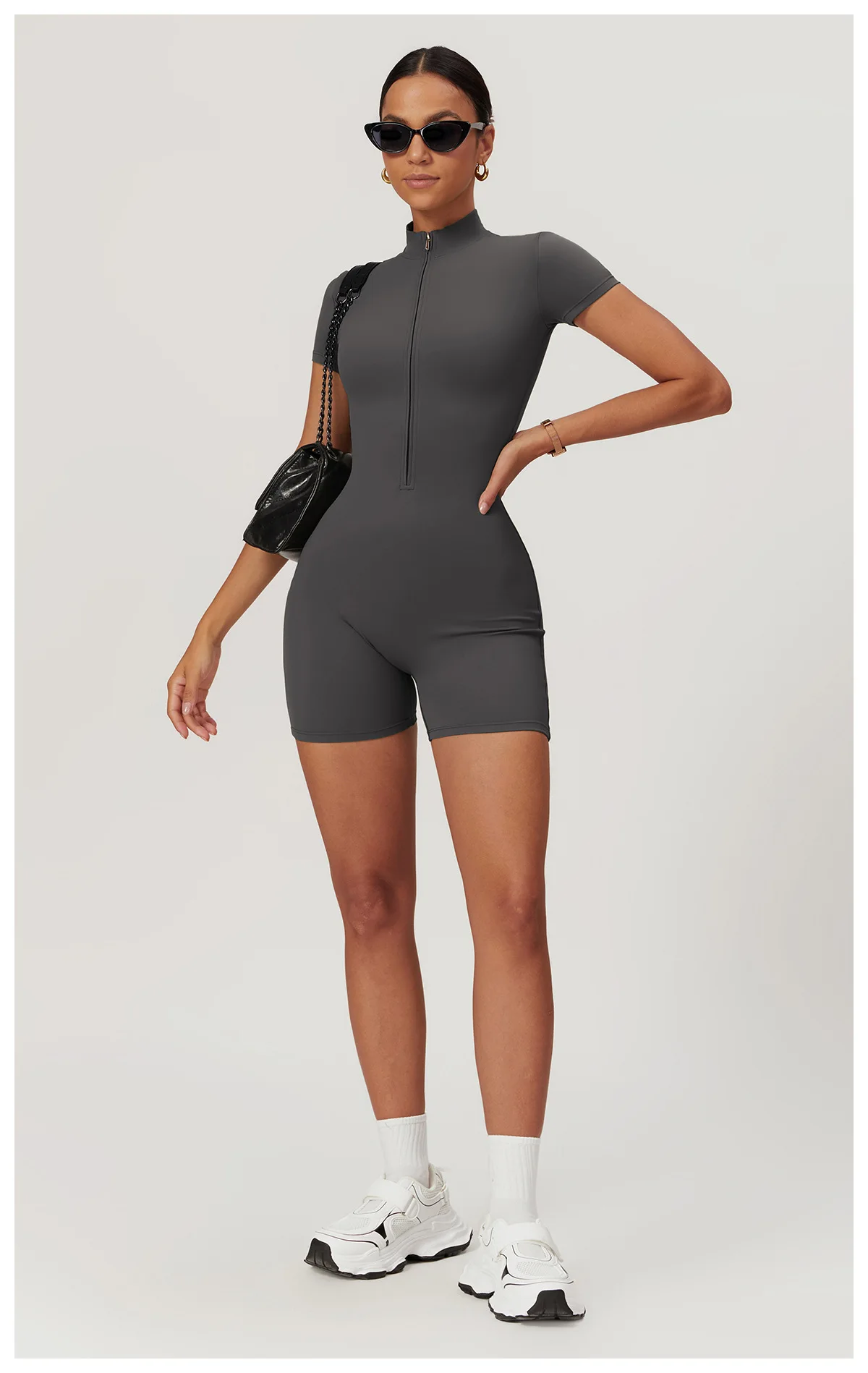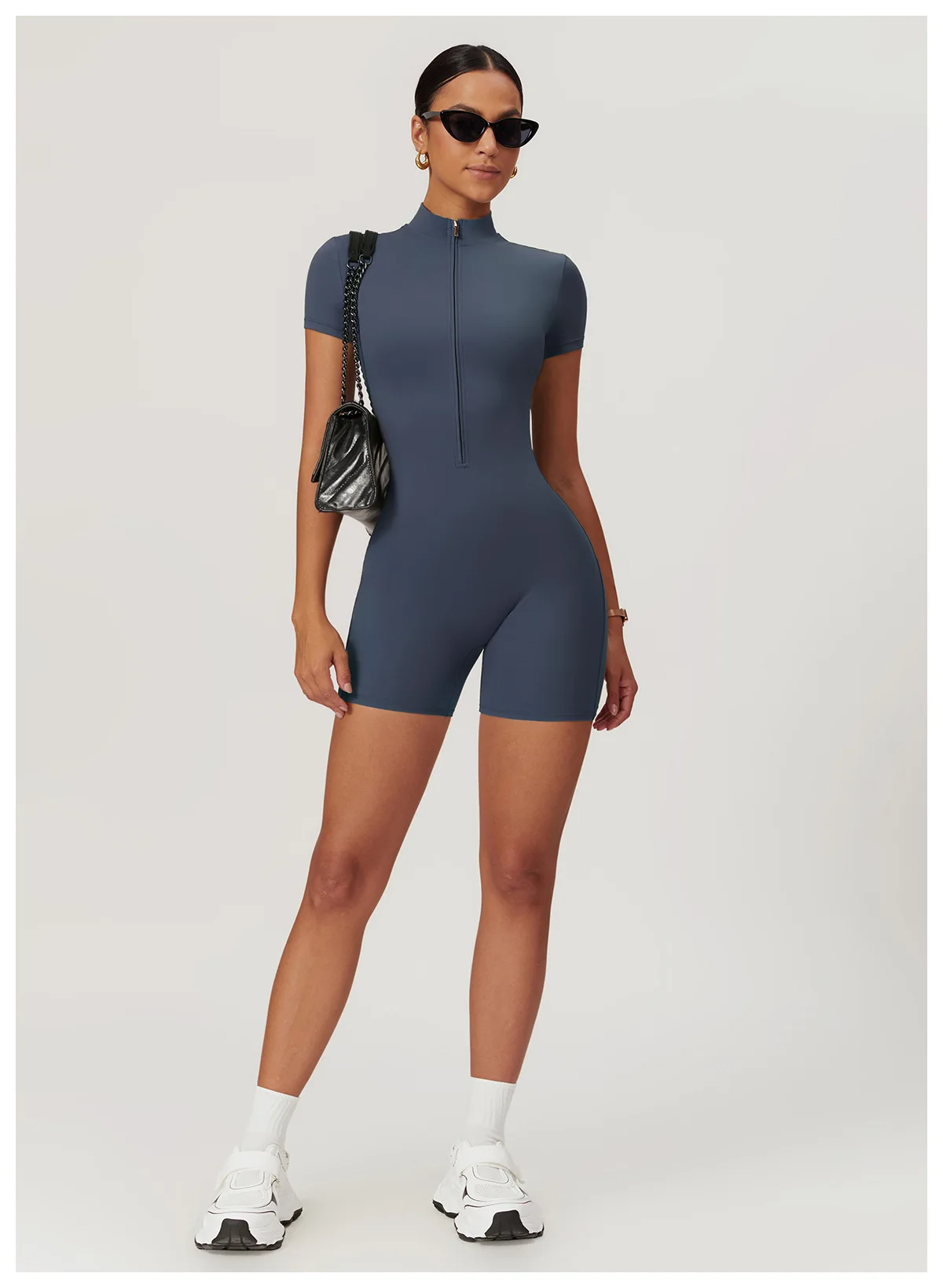 Yoga Jumpsuits Set Women’s Tracksuit One-Piece Suit Gym Push Up Workout Clothes Zipper Short Sleeve Fitness Bodysuit Sportswear