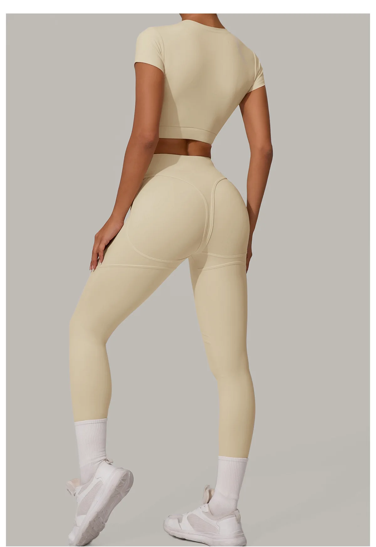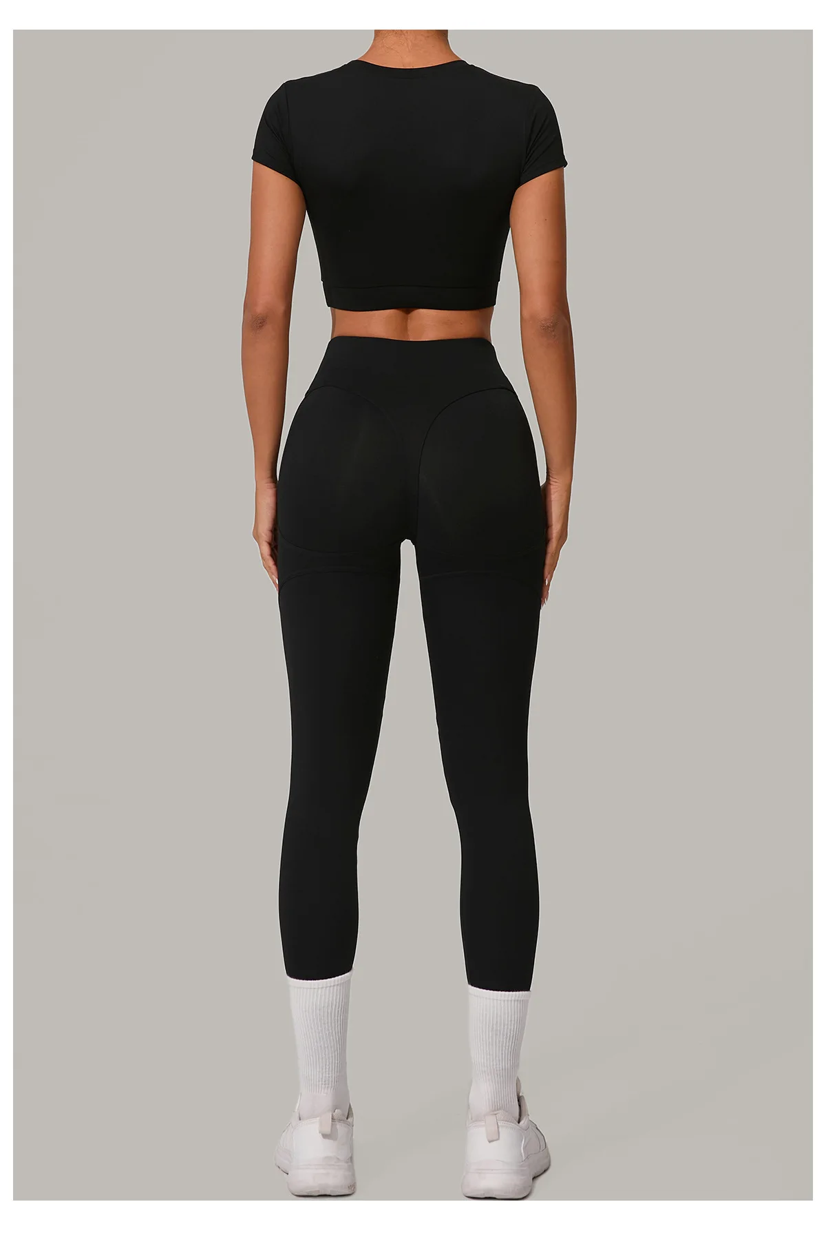 Yoga Set 2 Pieces Workout Clothing Women Tracksuits Sportswear Gym Fitness Long Sleeve Crop Top High Waist Leggings Sports Suits