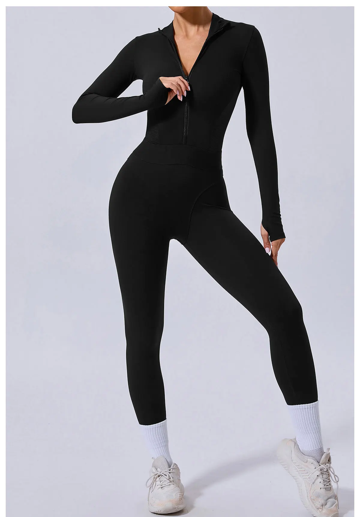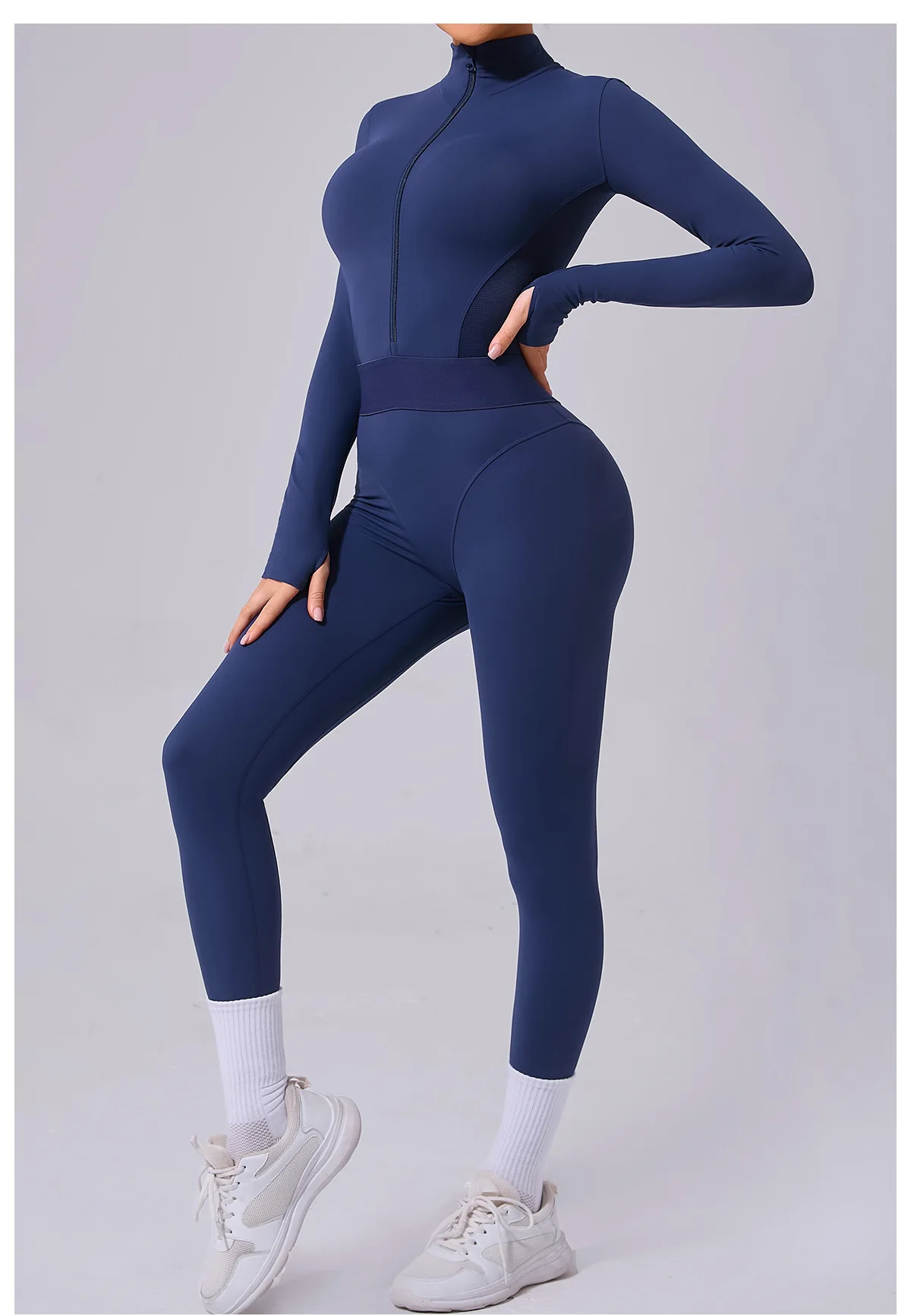 Yoga Set Women’s Tracksuit Jumpsuits One-Piece Suit Zipper Long Sleeve Gym Push Up Workout Clothes Fitness Bodysuit Sportswear