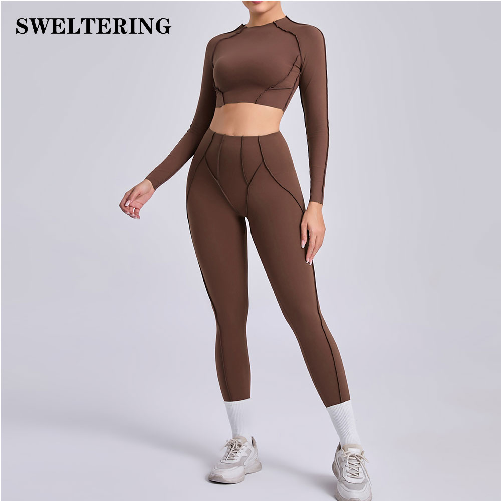 Yoga Set Workout Tracksuits 2 Pieces Gym Clothes Sportswear Yoga Suits For Women Fitness Set Sports Long Sleeved Gym Leggings