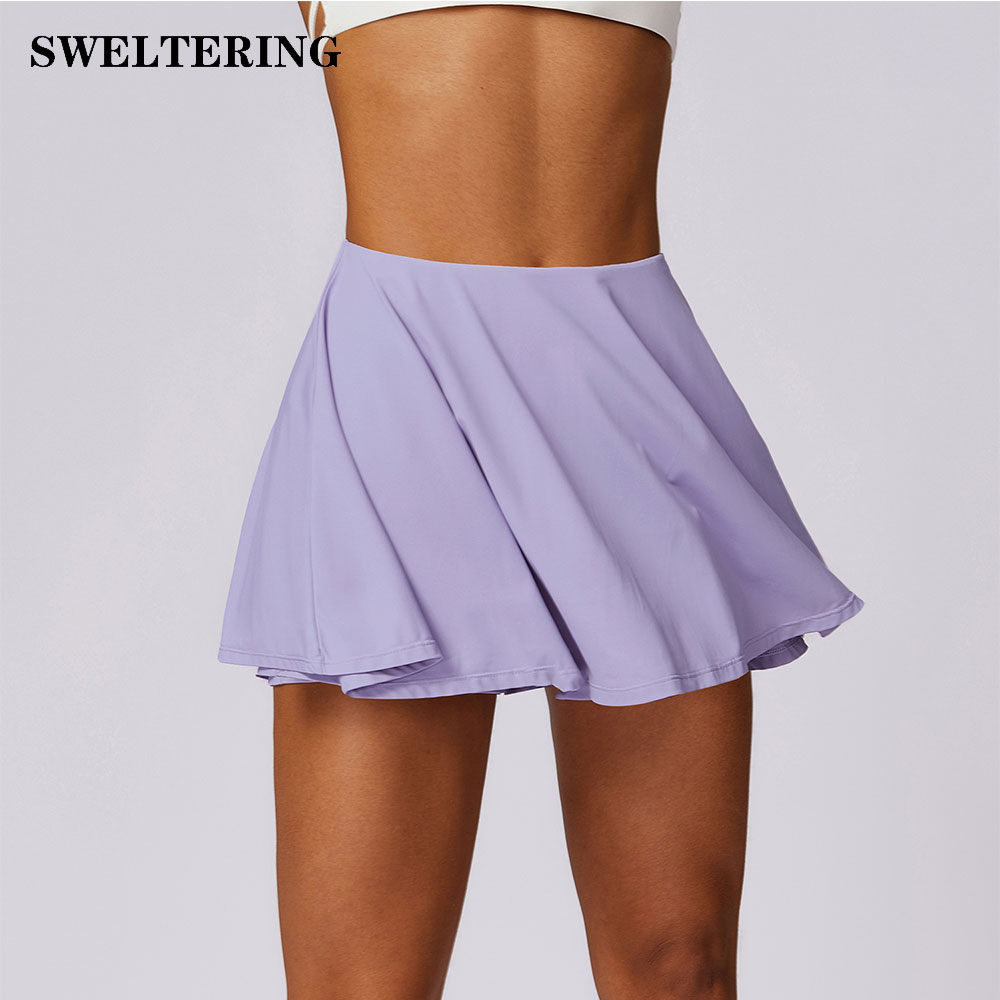 Yoga Skirt Breathable Fold Tennis Skirt High Waist Skirt Quick Dry Elasticity Anti Glare Yoga Skirt With Pocket Running Shorts