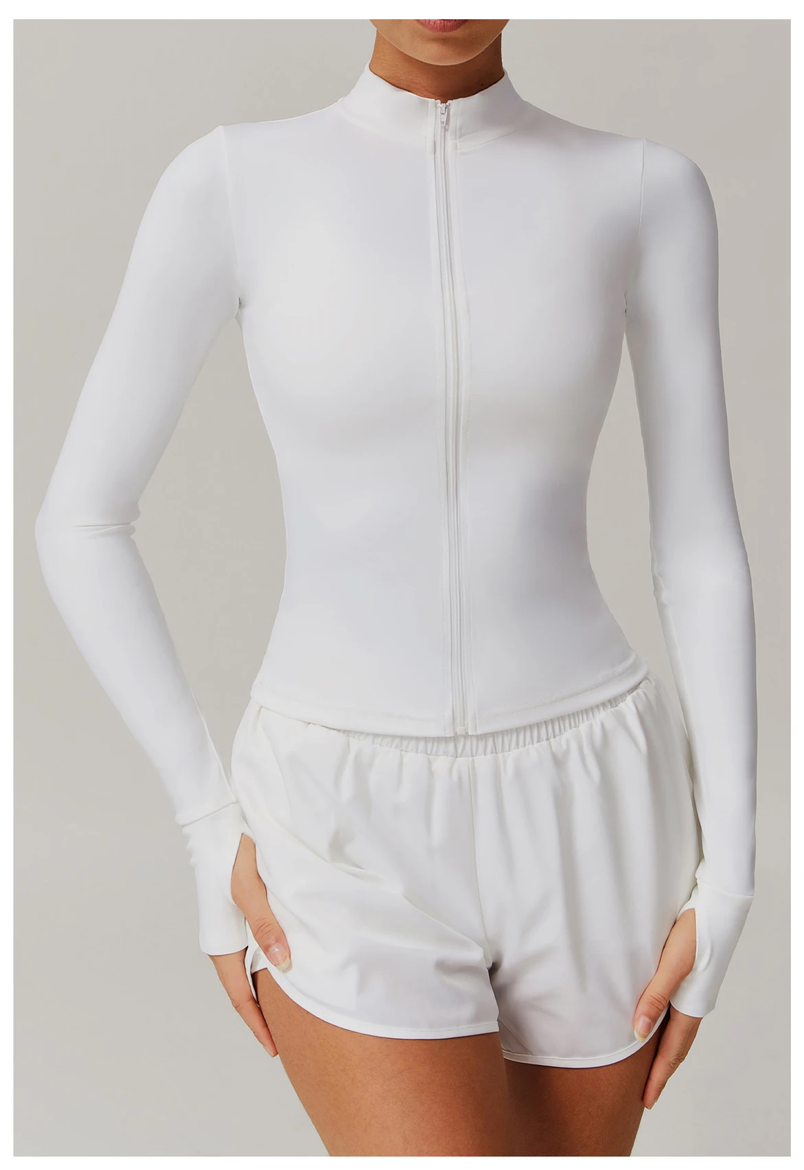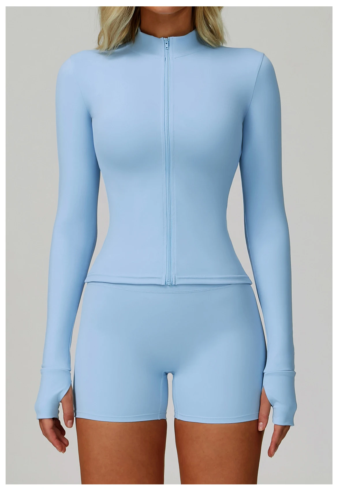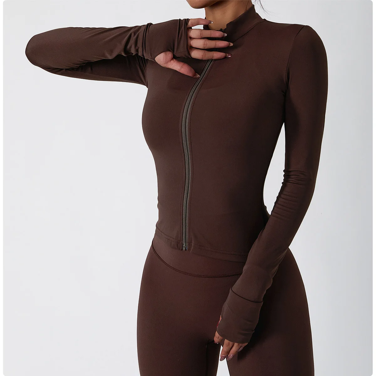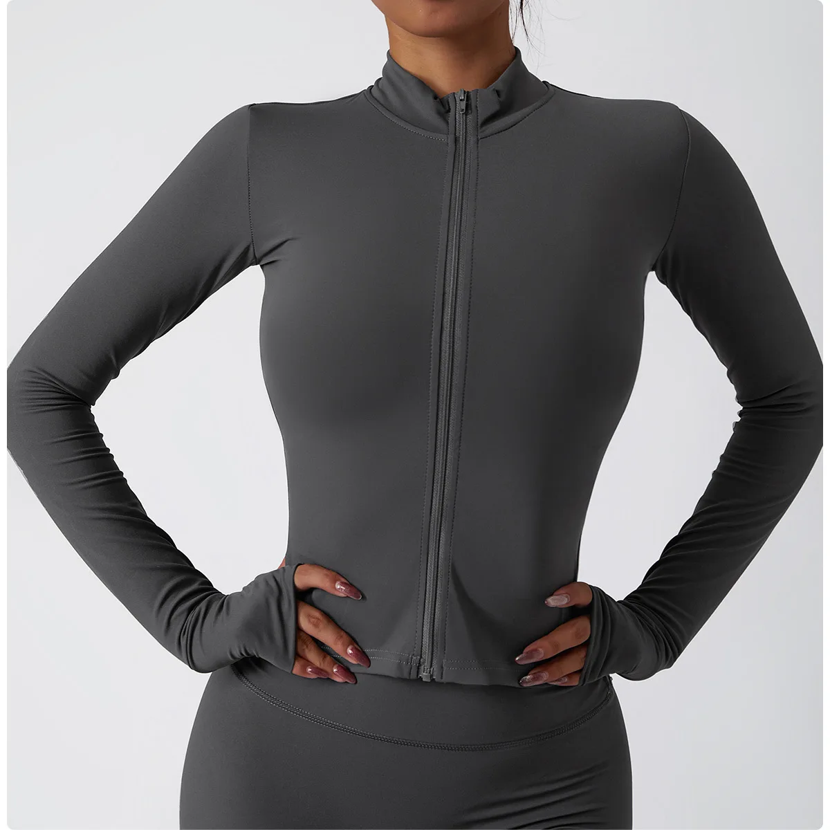 Yoga Wear Women Coat Yoga Shirts Round High Elastic Exercise Yoga Fitness Long Sleeve Stand-up Collar Gym Tops Workout Clothing