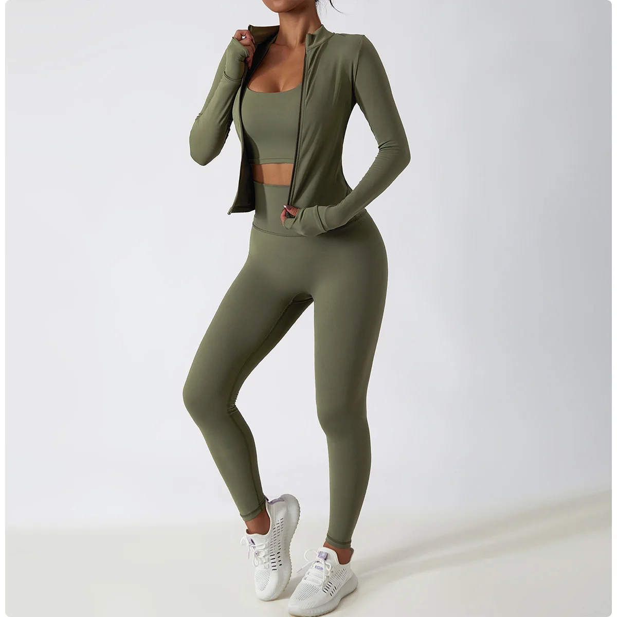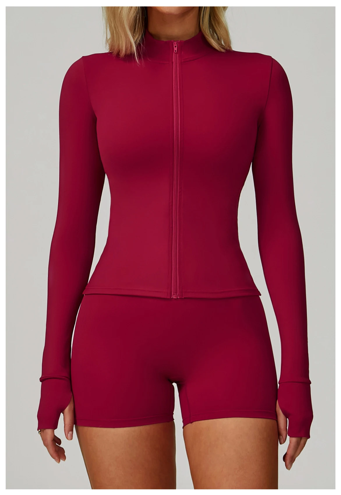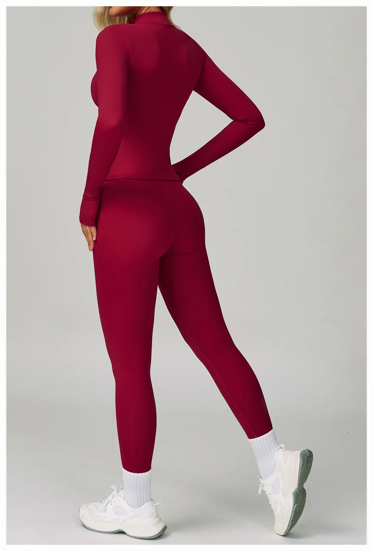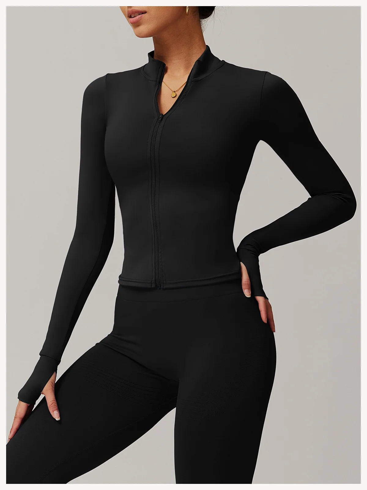 Yoga Wear Women Coat Yoga Shirts Round High Elastic Exercise Yoga Fitness Long Sleeve Stand-up Collar Gym Tops Workout Clothing