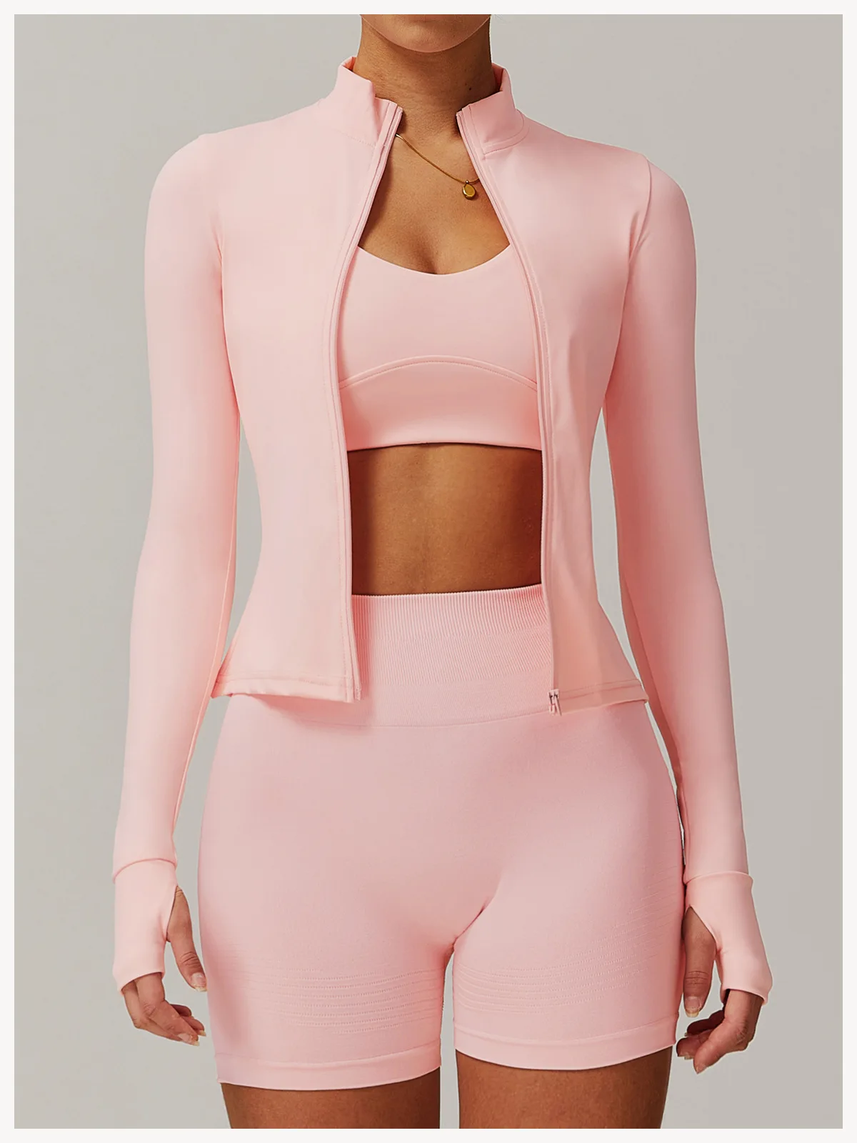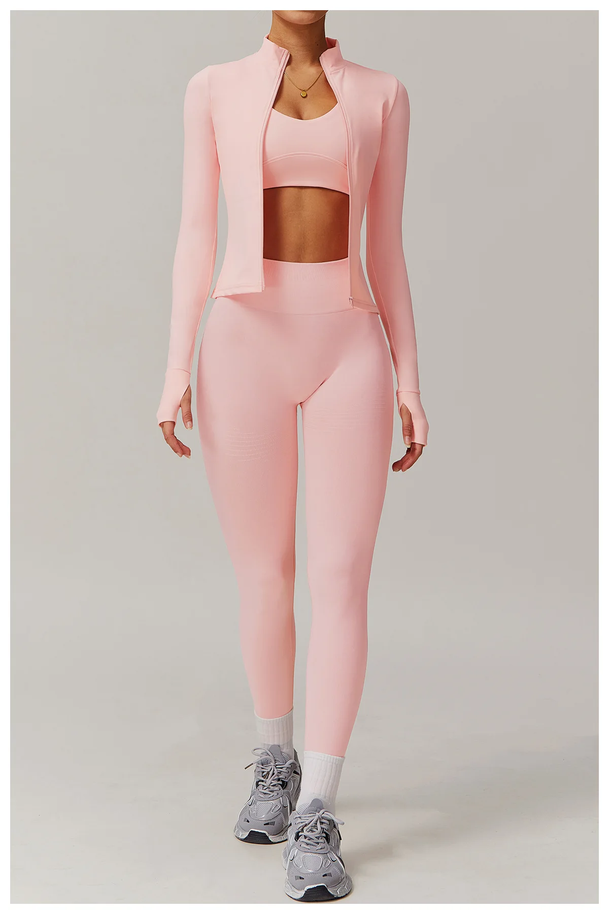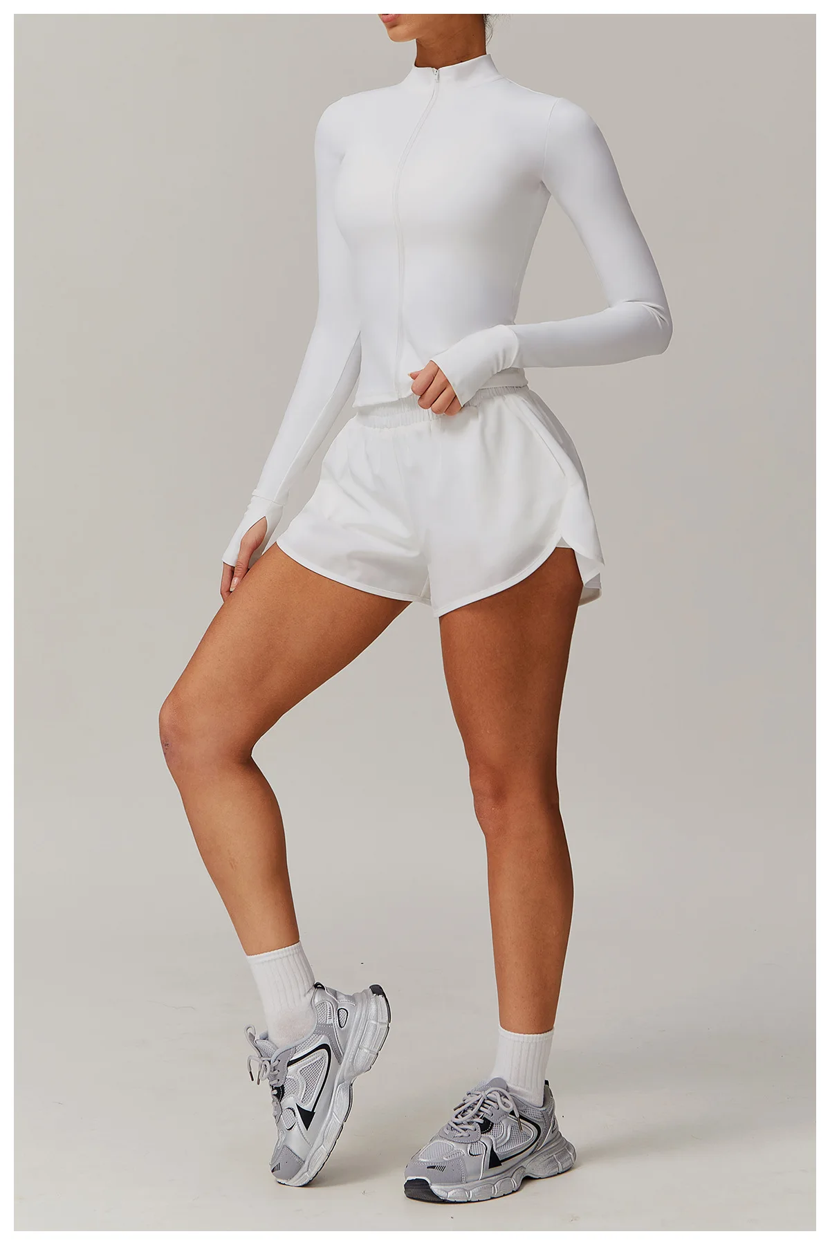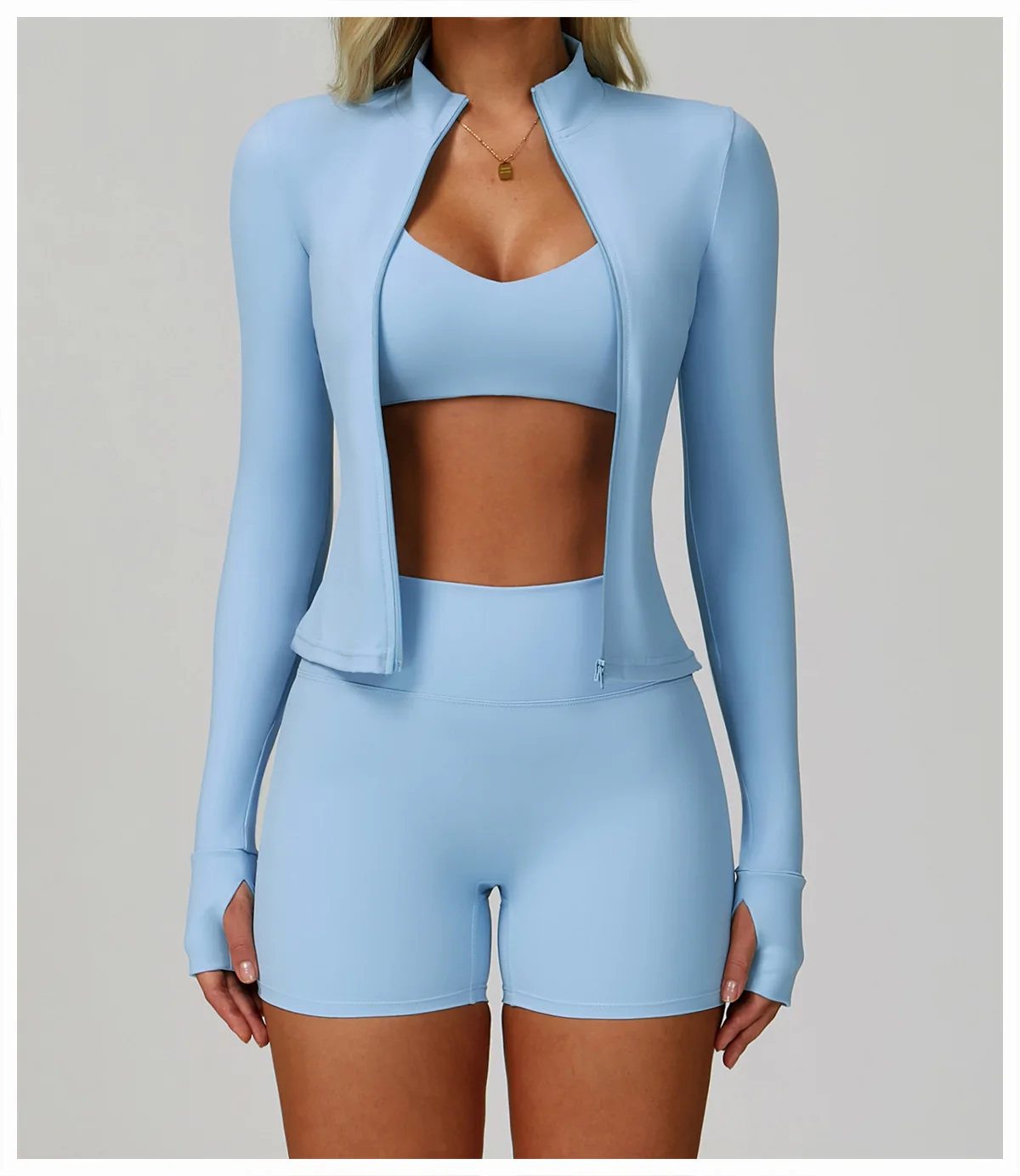 Yoga Wear Women Coat Yoga Shirts Round High Elastic Exercise Yoga Fitness Long Sleeve Stand-up Collar Gym Tops Workout Clothing