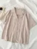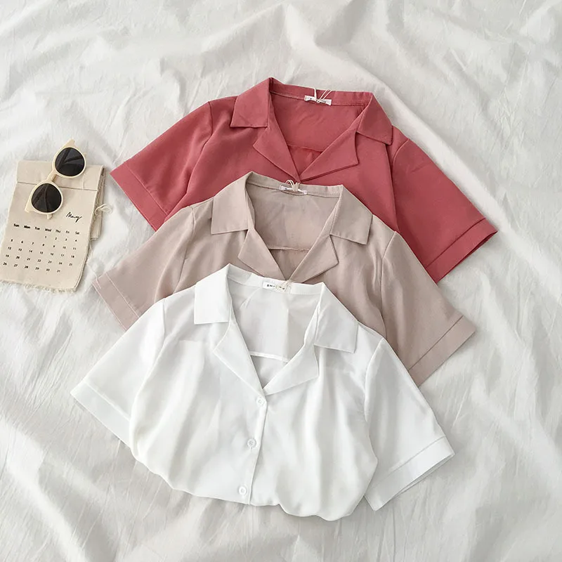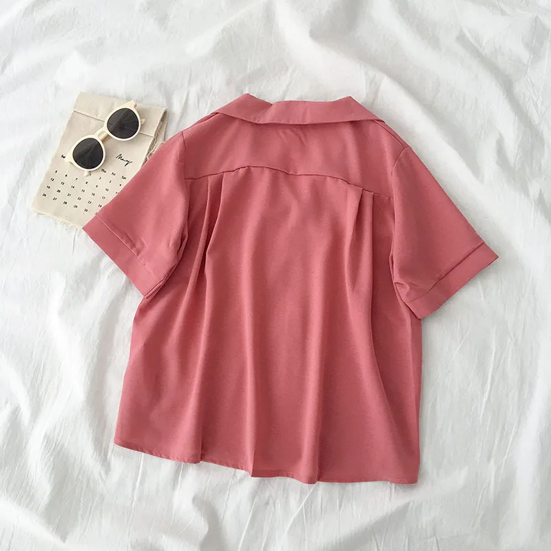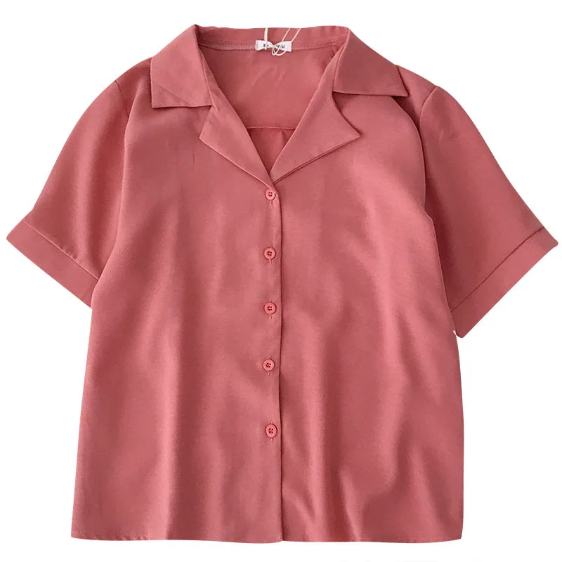YSZWDBLX 2025 Women Shirt Short Sleeve Summer Casual Solid Blouse Korean Turn-down Collar Chiffon Shirts White Pink Woman Tops