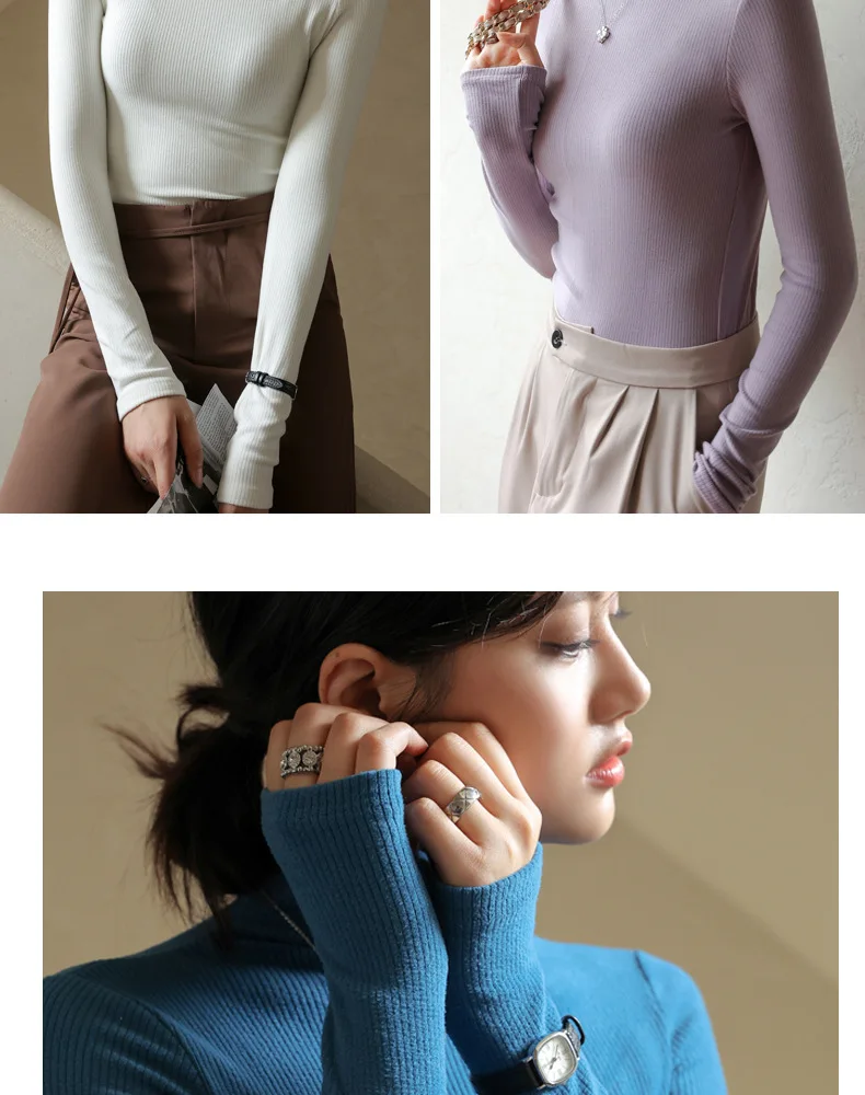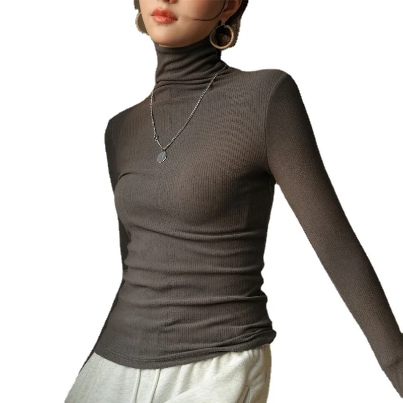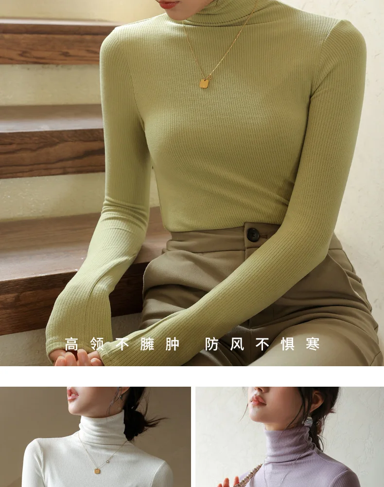 YSZWDBLX Turtleneck Women T-shirt Long Sleeve Velvet Warm Inner Wear Autumn Winter Fashion Korean Slim Fit Lady Bottoming Shirt