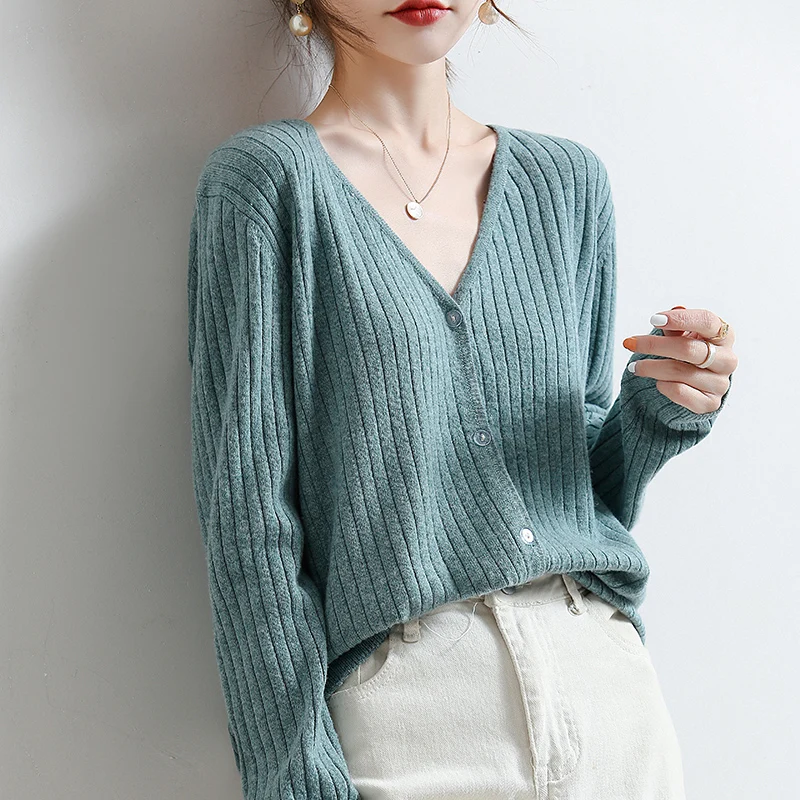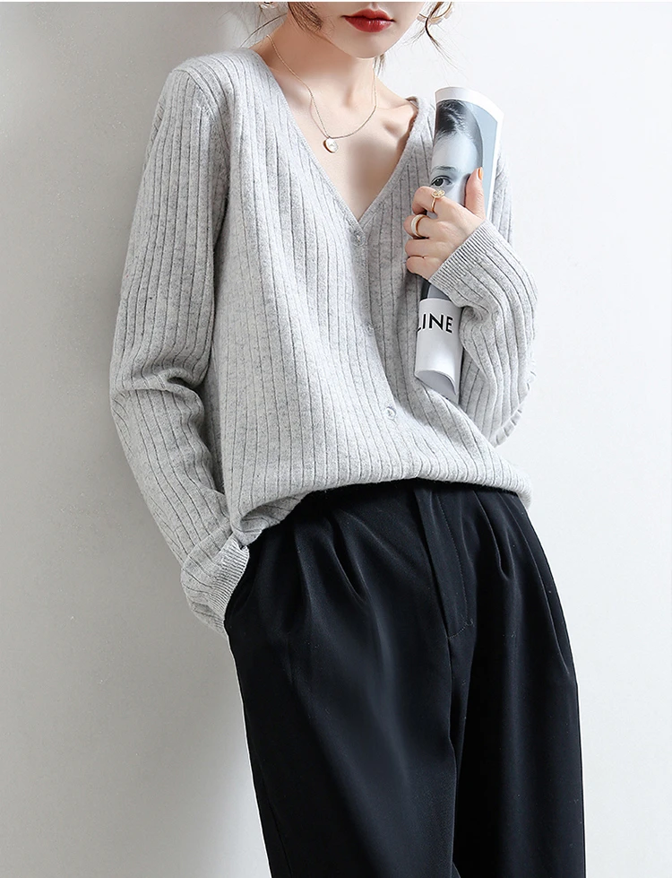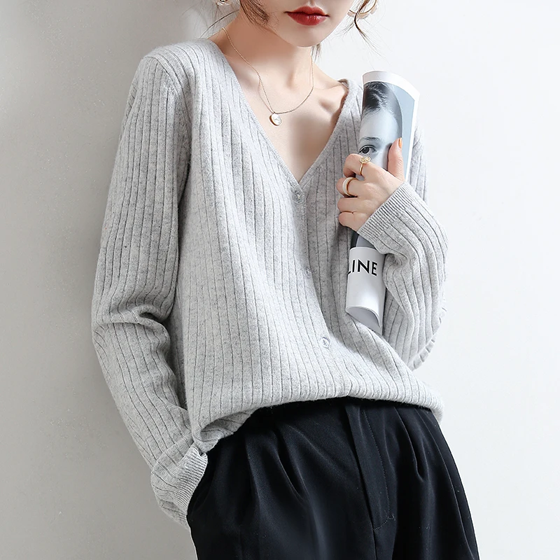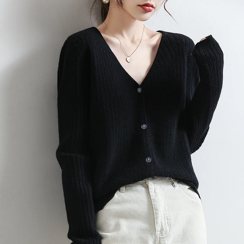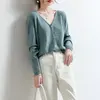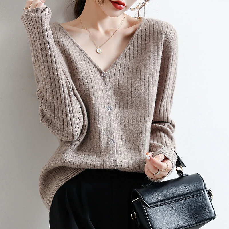 YSZWDBLX Women Cardigans 2025 Solid V-neck Knitted Autumn Winter Long Sleeve Sweater Korean Fashion Loose Fit Woman Cardigan