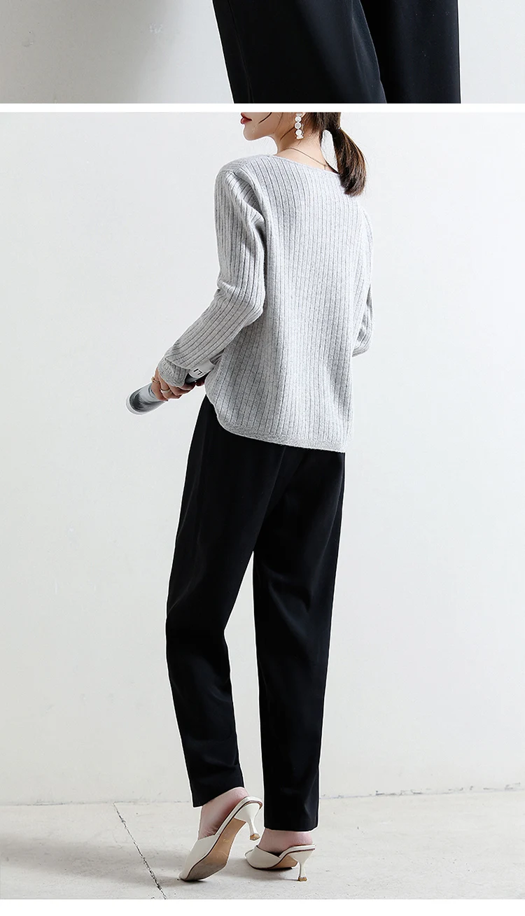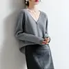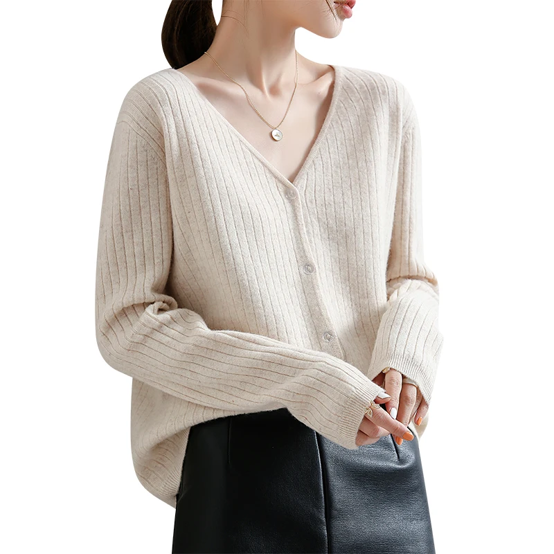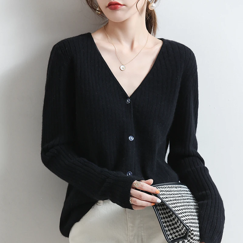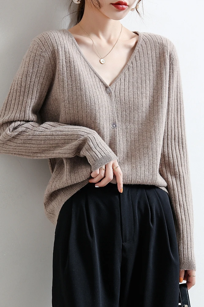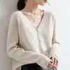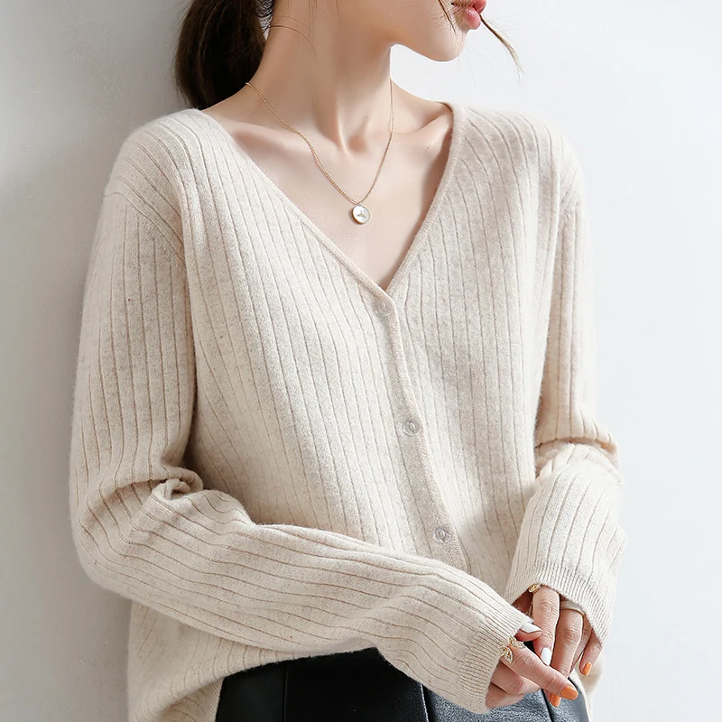YSZWDBLX Women Cardigans 2025 Solid V-neck Knitted Autumn Winter Long Sleeve Sweater Korean Fashion Loose Fit Woman Cardigan