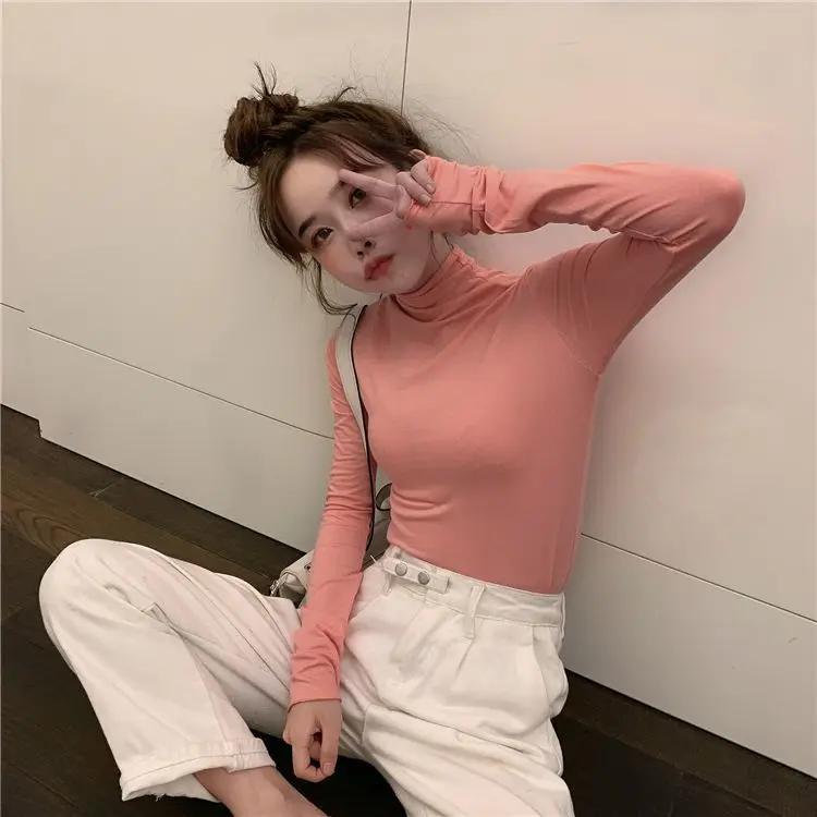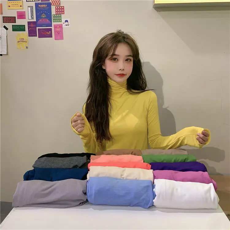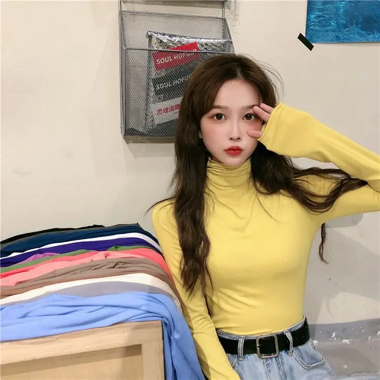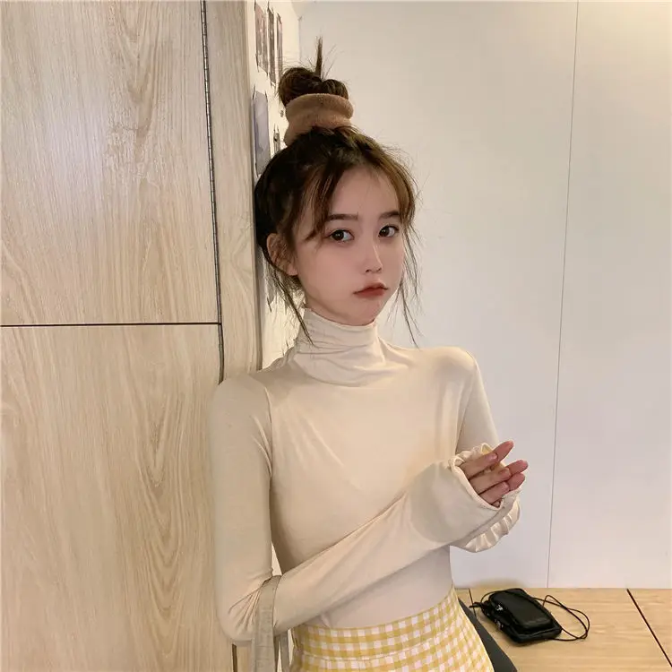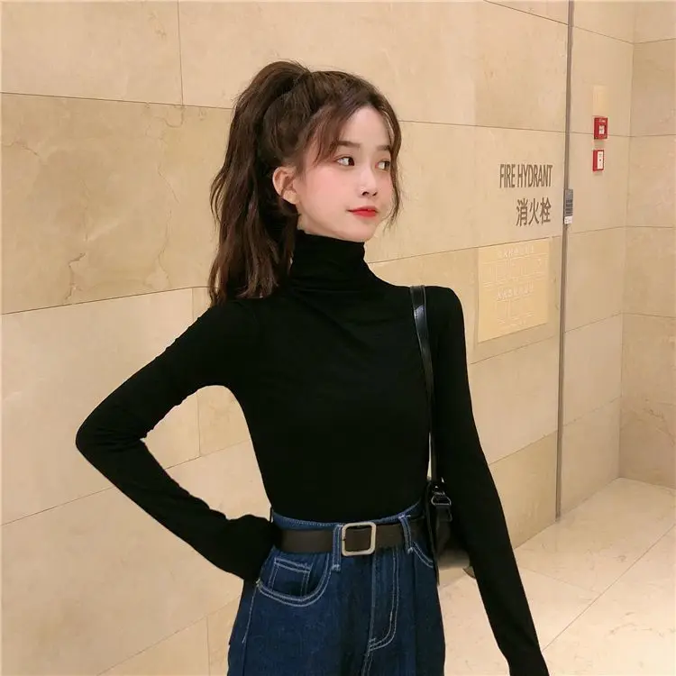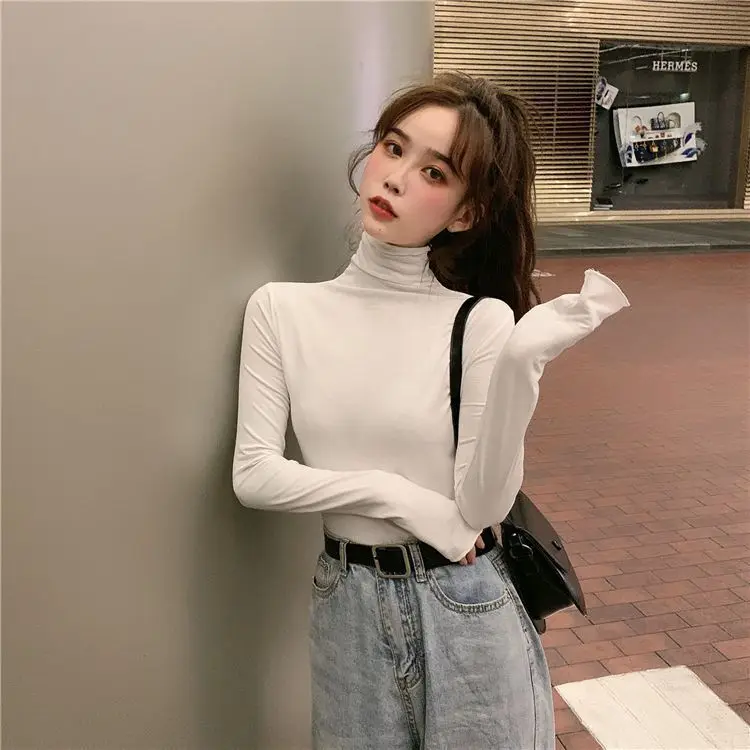 YSZWDBLX Women T-shirts Autumn Winter Modal Bottoming Shirt Warm Turtleneck Inner Wear Korean Casual Slim High Strecth Tops