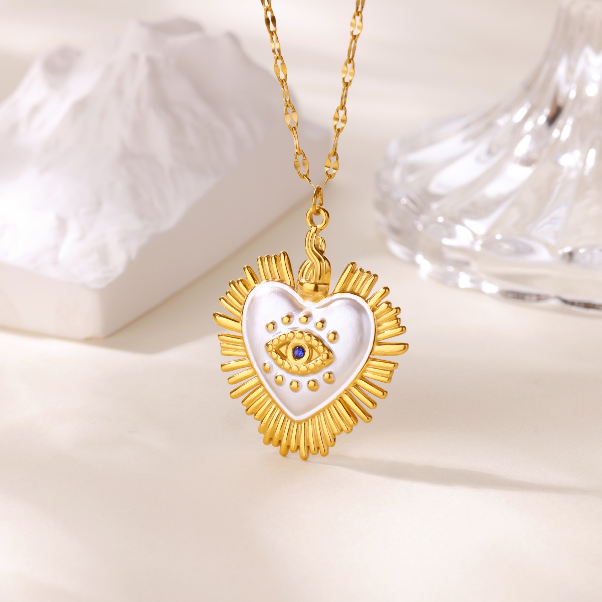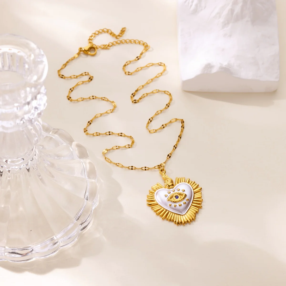 Zircon Evil Eye Heart Necklaces For Women Gold Color Stainless Steel Evil Eye Heart Necklace Lucky Aesthetic Turkish Waterproof Jewelry Gift