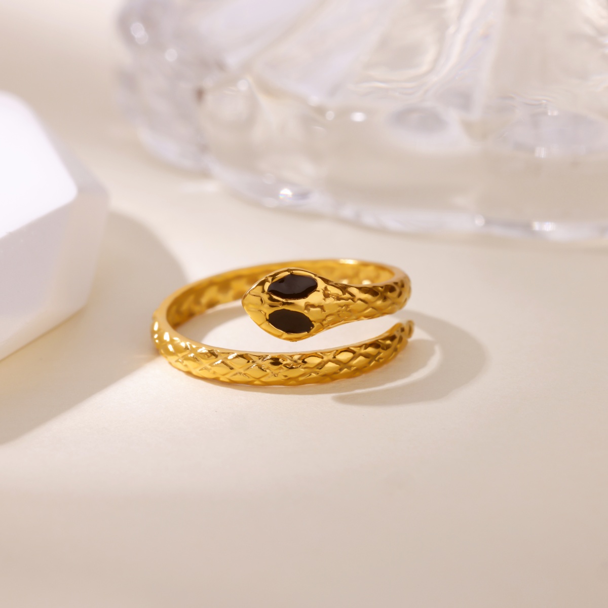 Classic Zircon Snake Ring For Women 18K Gold-Plated Stainless Steel Geometric Multi-elements Ring Wedding Christmas Jewelry Gift