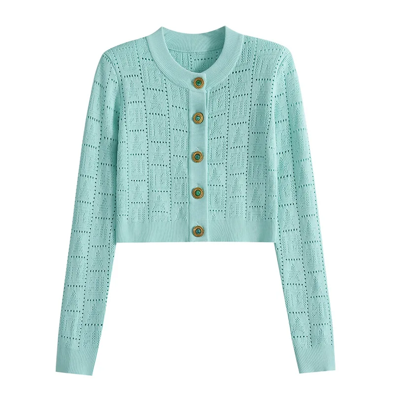 ZJYT 2025 New Fashion Autumn Long Sleeve Sweaters O Neck Single Breasted Short Casual Slim Fit Knitted Tops Jersey Mujer Green