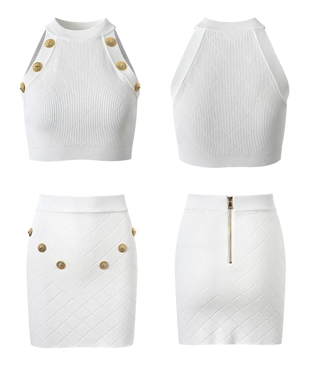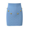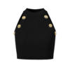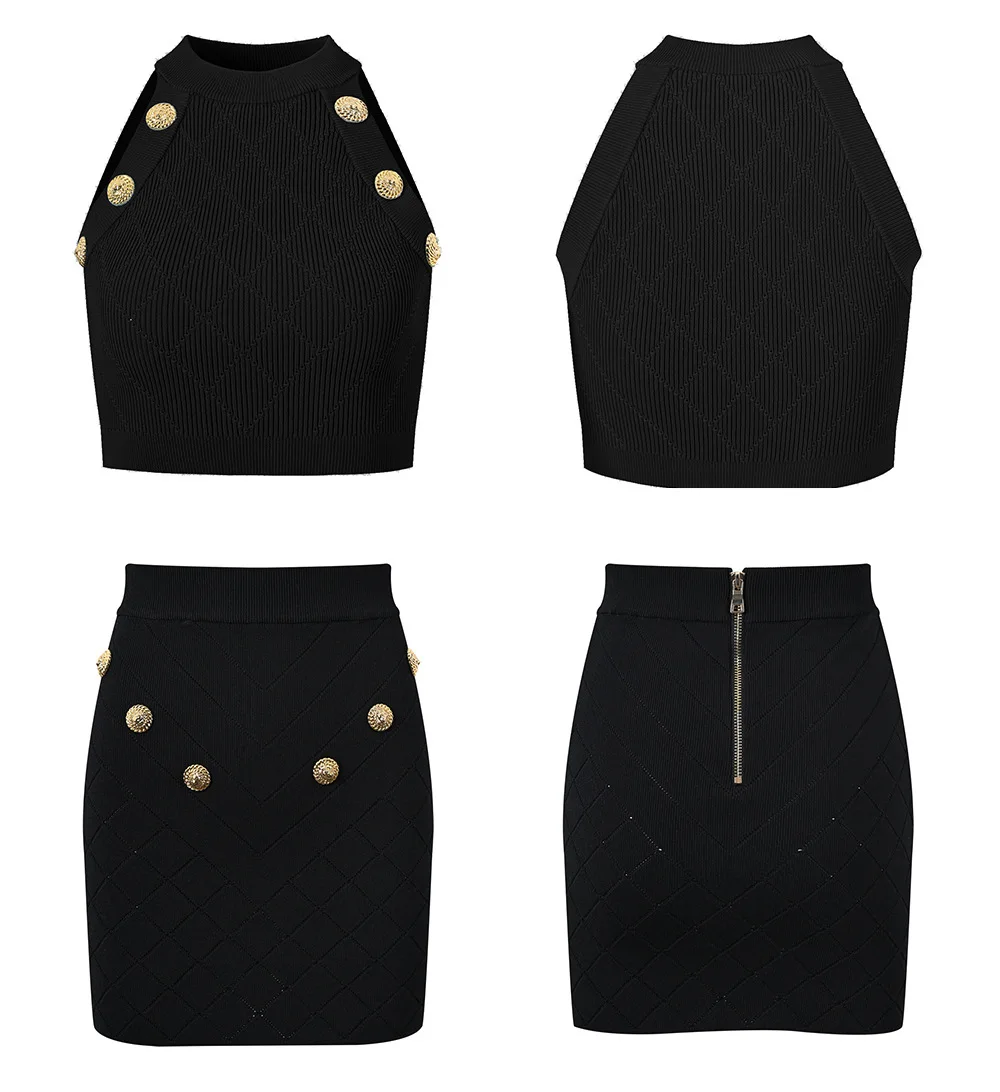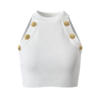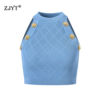 ZJYT 2025 New Fashion Summer Women’s Sleeveless Knitting Crop Tops Halter Neck Buttons Sweaters Skirt Knitwears Blue Female