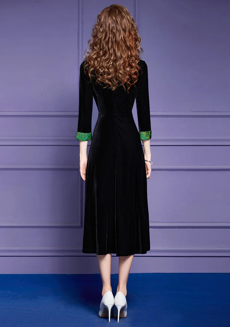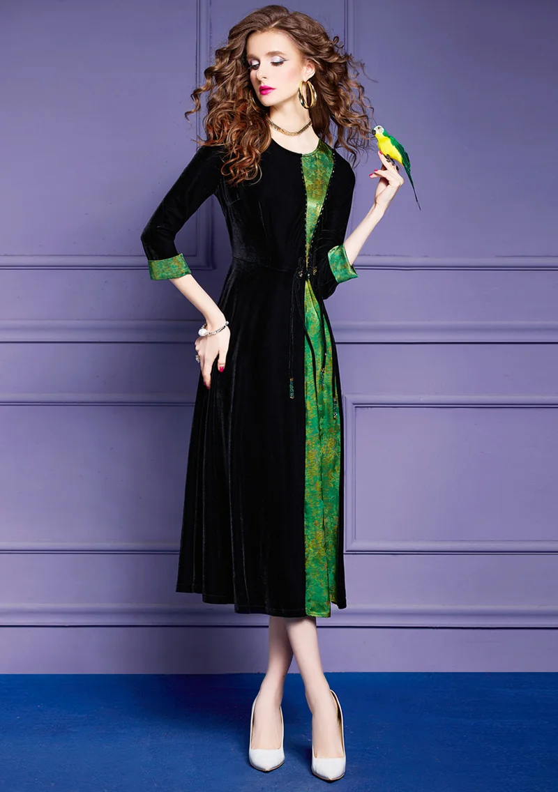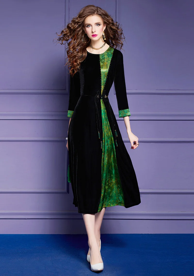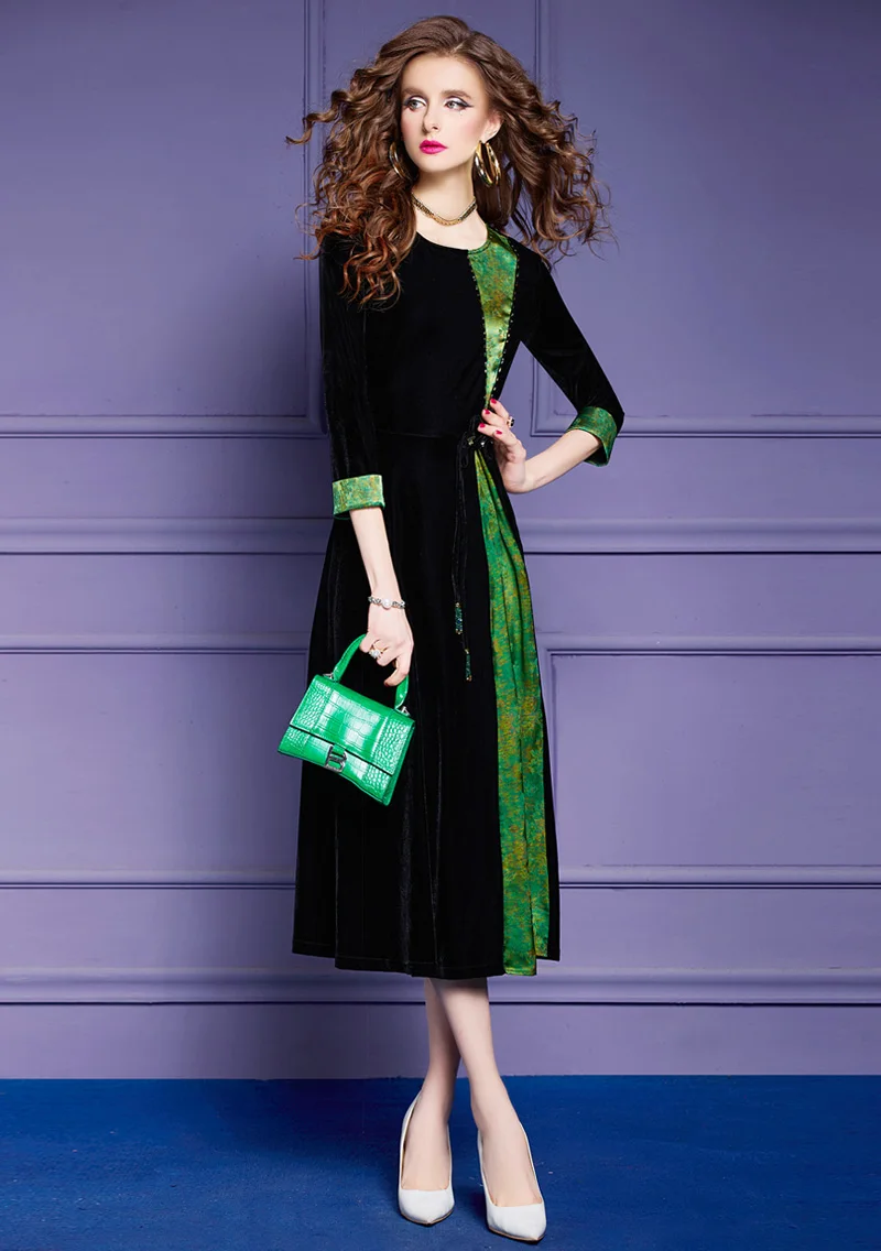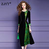 ZJYT Autumn Elegant Print Patchwork Midi Velvet Dresses for Women 2025 New Designer Vintage Casual Party Dress Plus Size Vestido