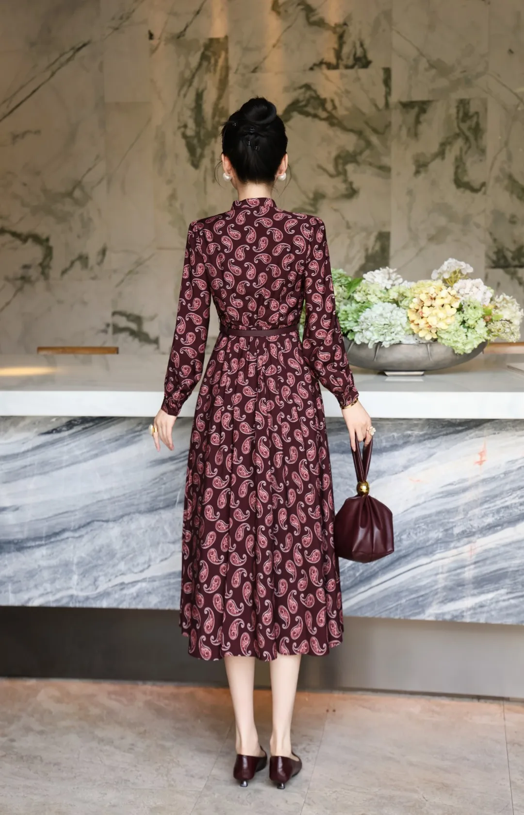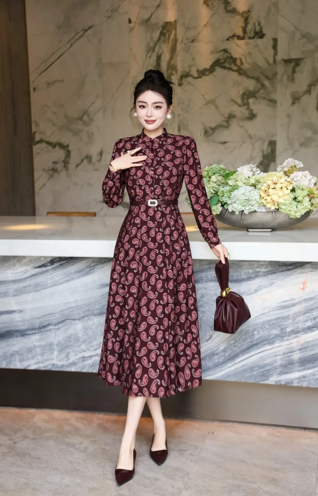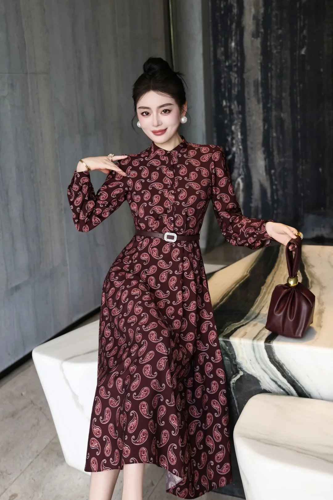 ZJYT Autumn New 2025 Fashion Women Print Dress Long Sleeve Elegant Designer Vintage Casual Holiday Midi Dresses Female Vestidos