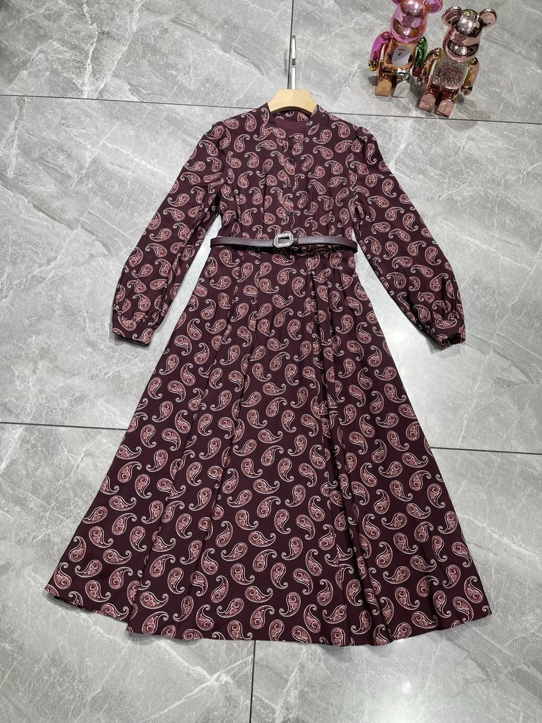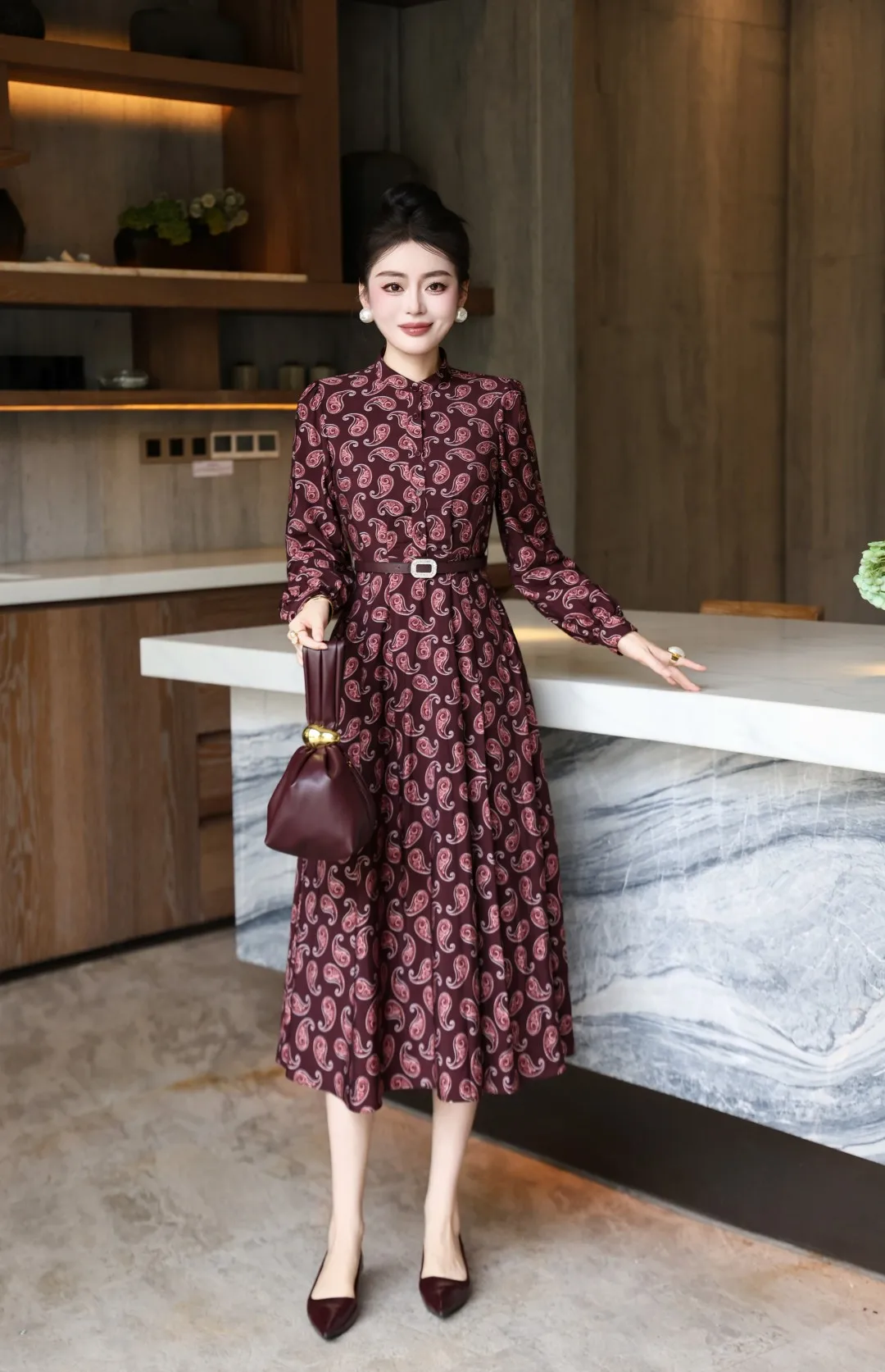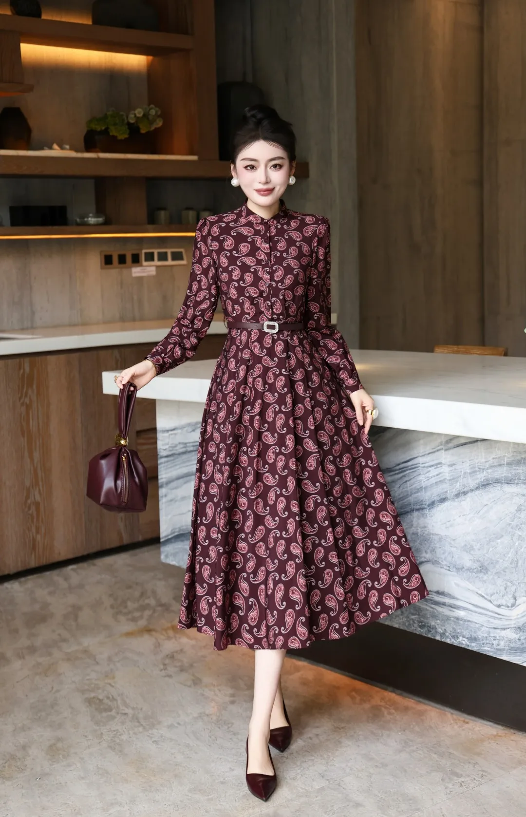 ZJYT Autumn New 2025 Fashion Women Print Dress Long Sleeve Elegant Designer Vintage Casual Holiday Midi Dresses Female Vestidos