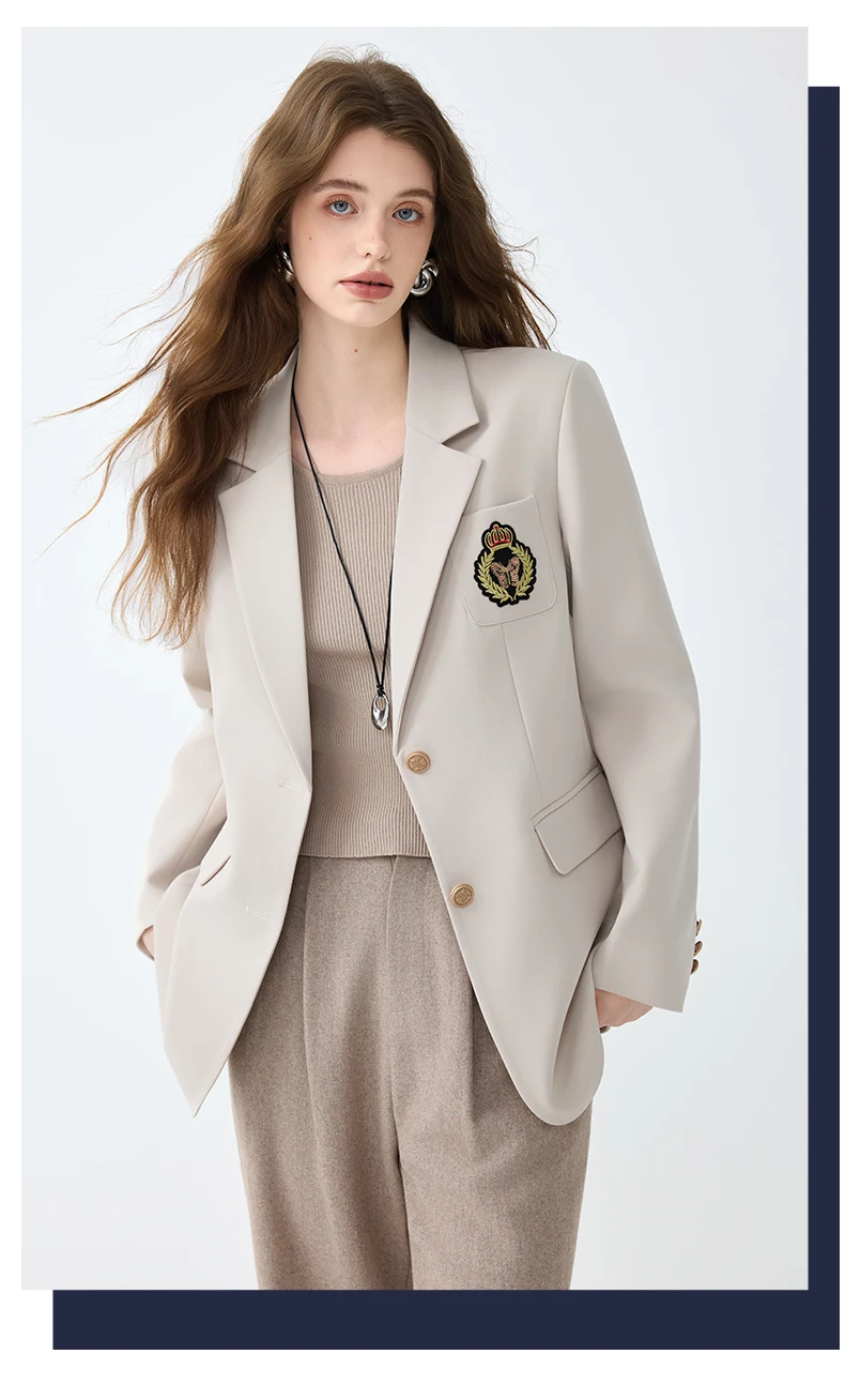 ZJYT Autumn New Fashion Blazers for Woman Long Sleeve England Style Casual Loose Jackets Coats Office Ladies Plus Size Outerwear