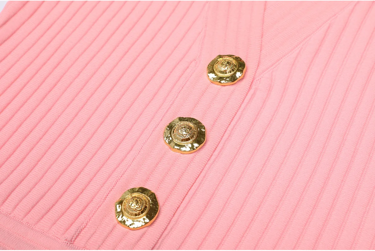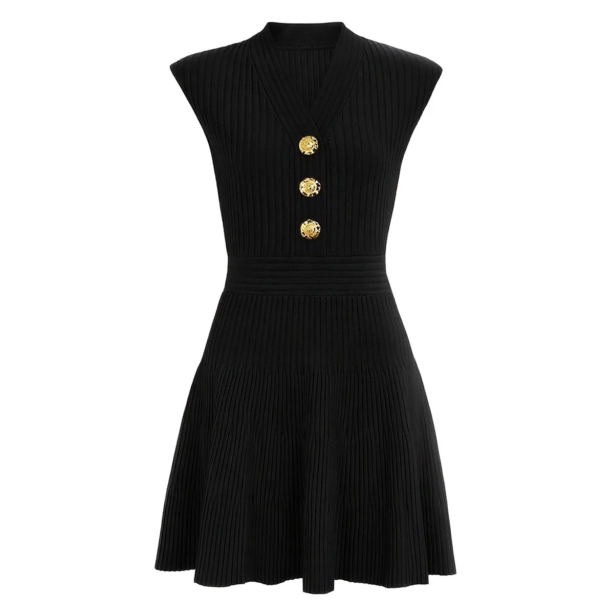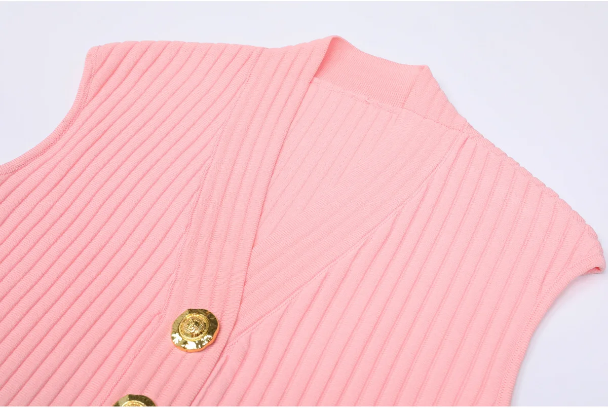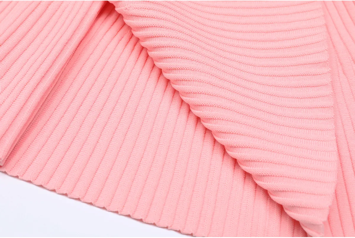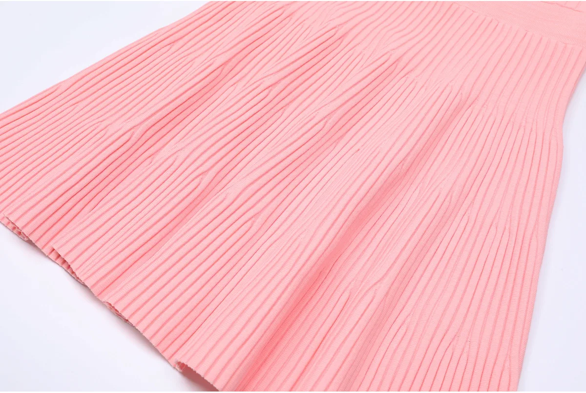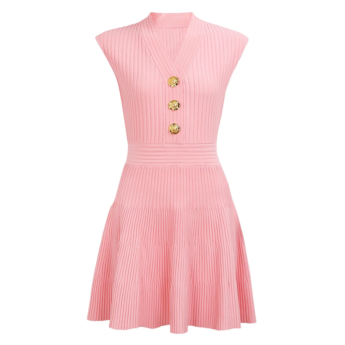 ZJYT Autumn New Fashion Women Knitting Dresses Sleeveless Elegant V Neck Solid Pink Casual Aline Mini Party Dress Female Vestido