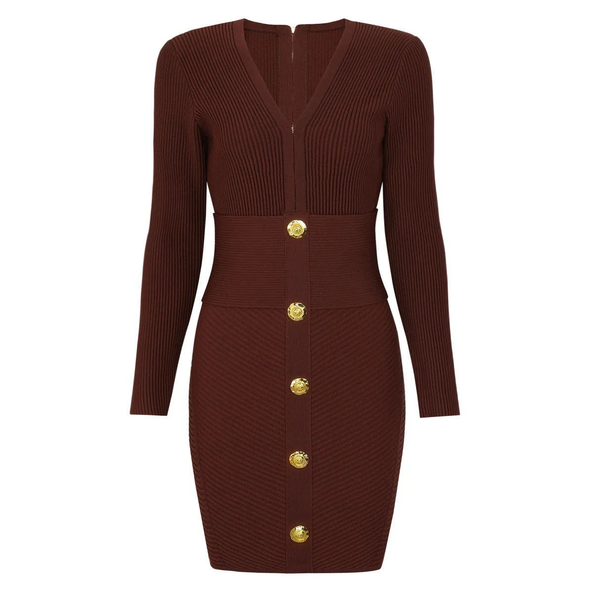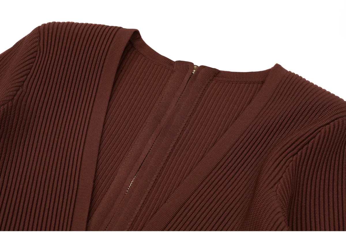 ZJYT Autumn New Long Sleeve Knitting Sweater Dresses for Women 2025 Fashion V Neck Sheath Bodycon Mini Dress Female Vestidos Red