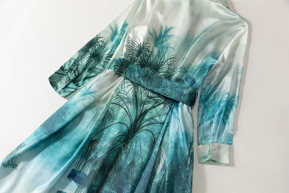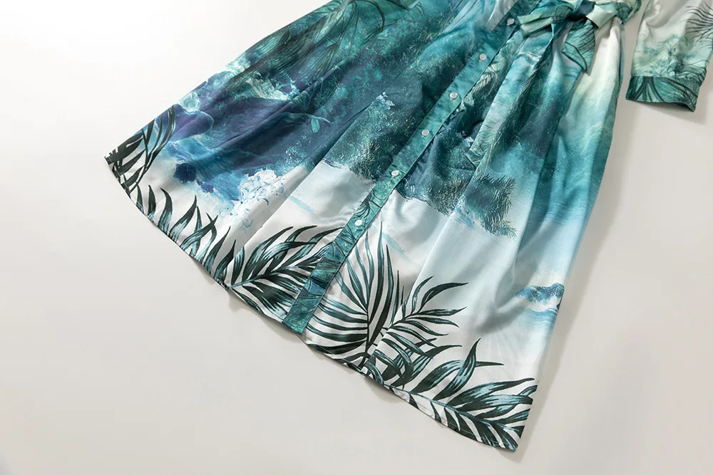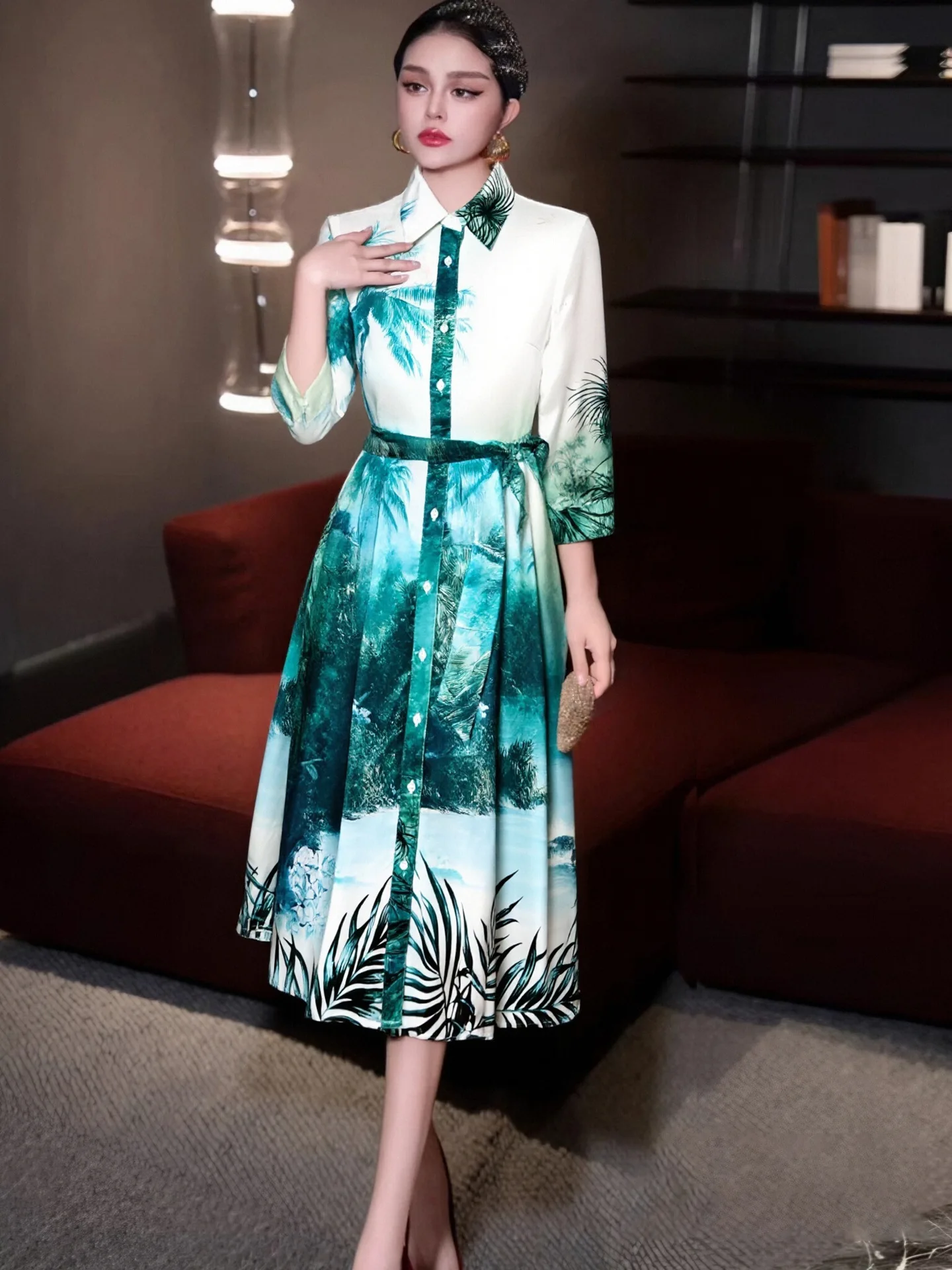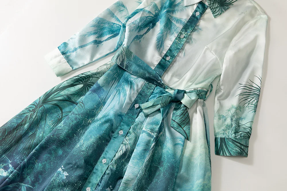 ZJYT Autumn New Runway Fashion Print Midi Shirt Dresses for Women 2025 Single Breasted Lace Up Casual Holiday Dress Female