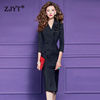 ZJYT Autumn New Women Business Chic Commuter Office Blazer Pencil Dresses Party Formal Elegant Plus Size Midi Beading Dress Lady