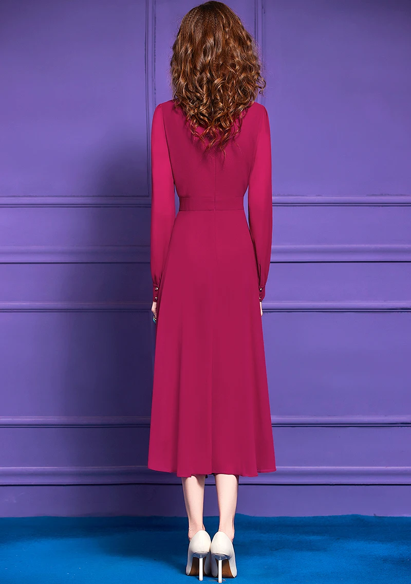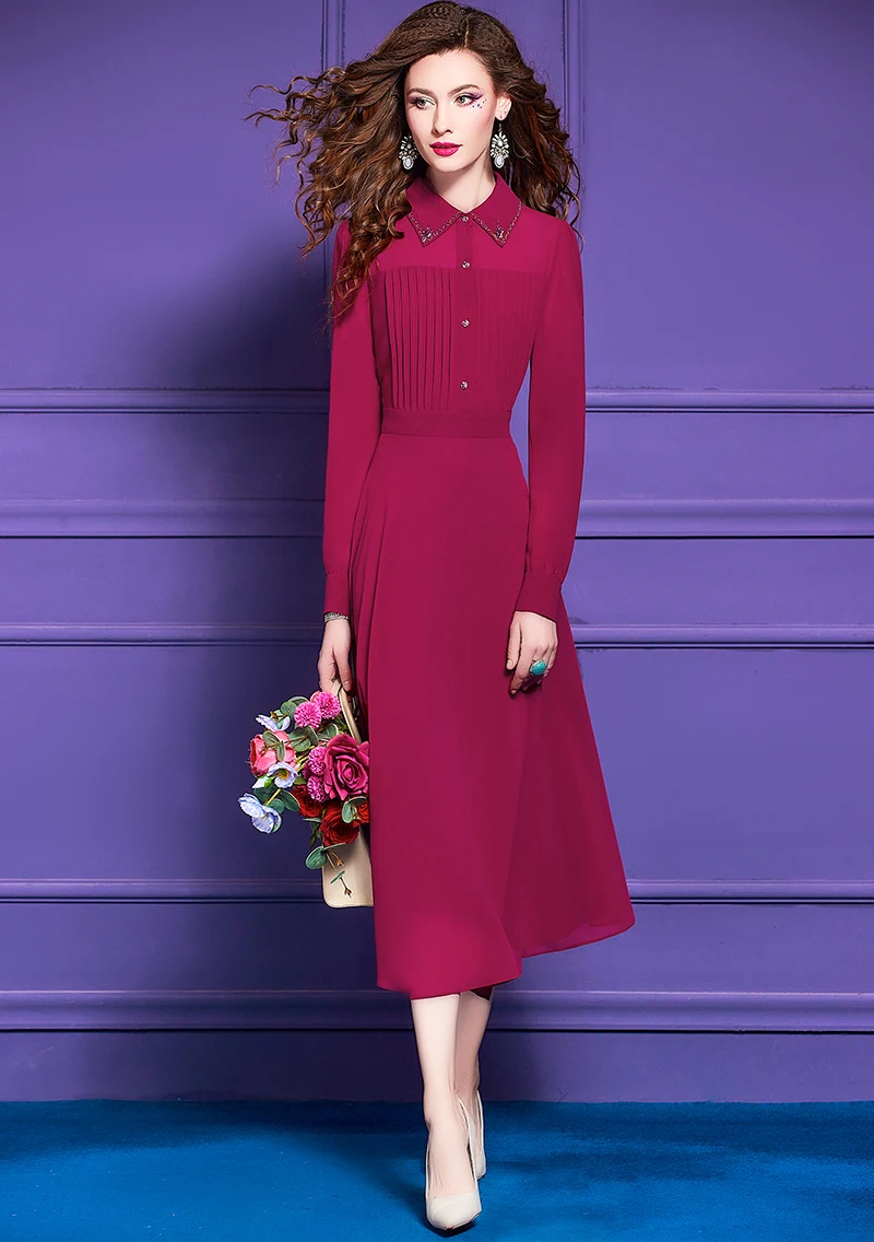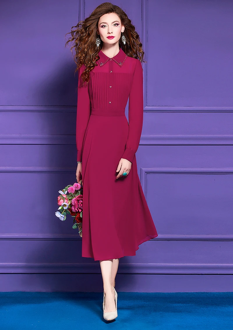 ZJYT Autumn New Women’s Beading Long Sleeve Dress 2025 Fashion Lapel Collar Plus Size Midi Casual Party Dresses Female Clothing