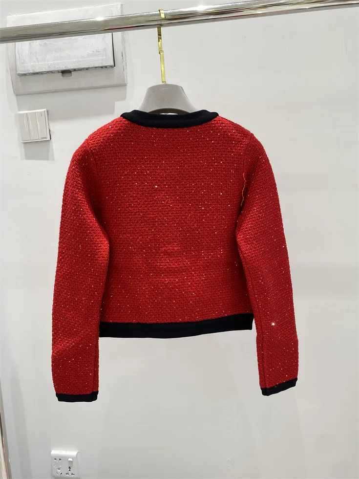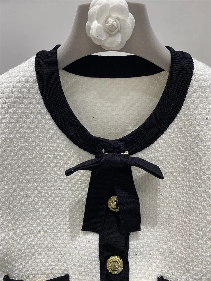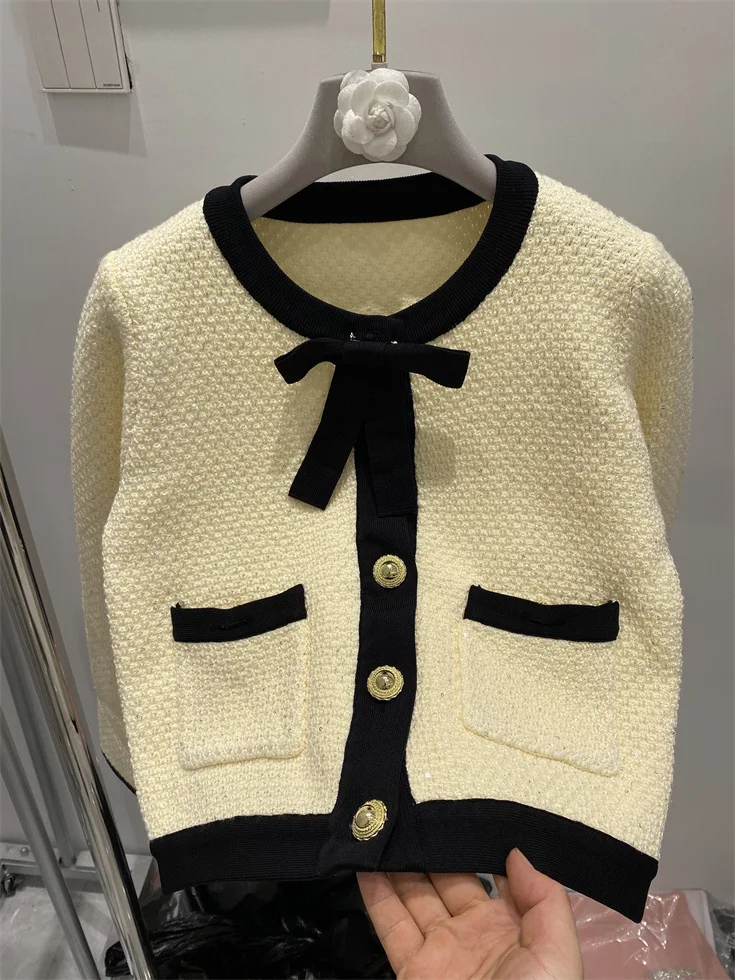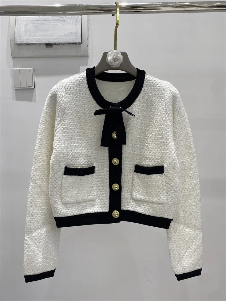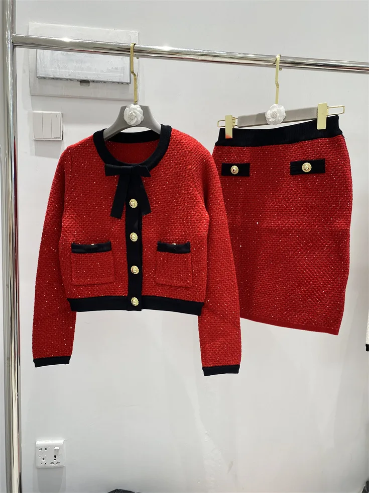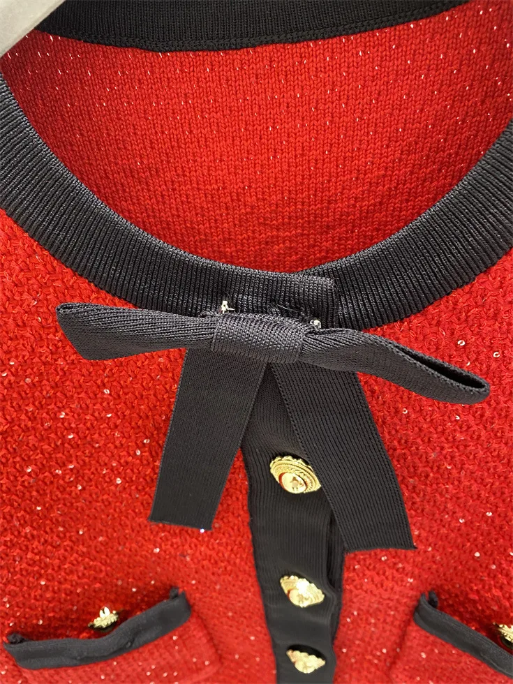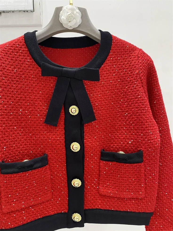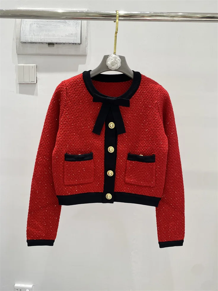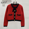 ZJYT Autumn Winter 2025 Fashion Women’s Knitting Cardgians Long Sleeve Hit Color Bowknot Sweaters Knitwears Jersey Lady Red