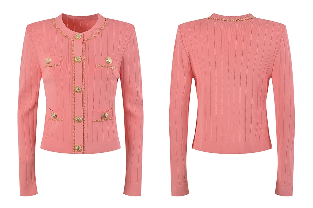 ZJYT Autumn Winter Chain Patchwork Cardigan Sweaters for Women Long Sleeve Knitted Tops Pink Jersey Mujer Fashion 2024 New