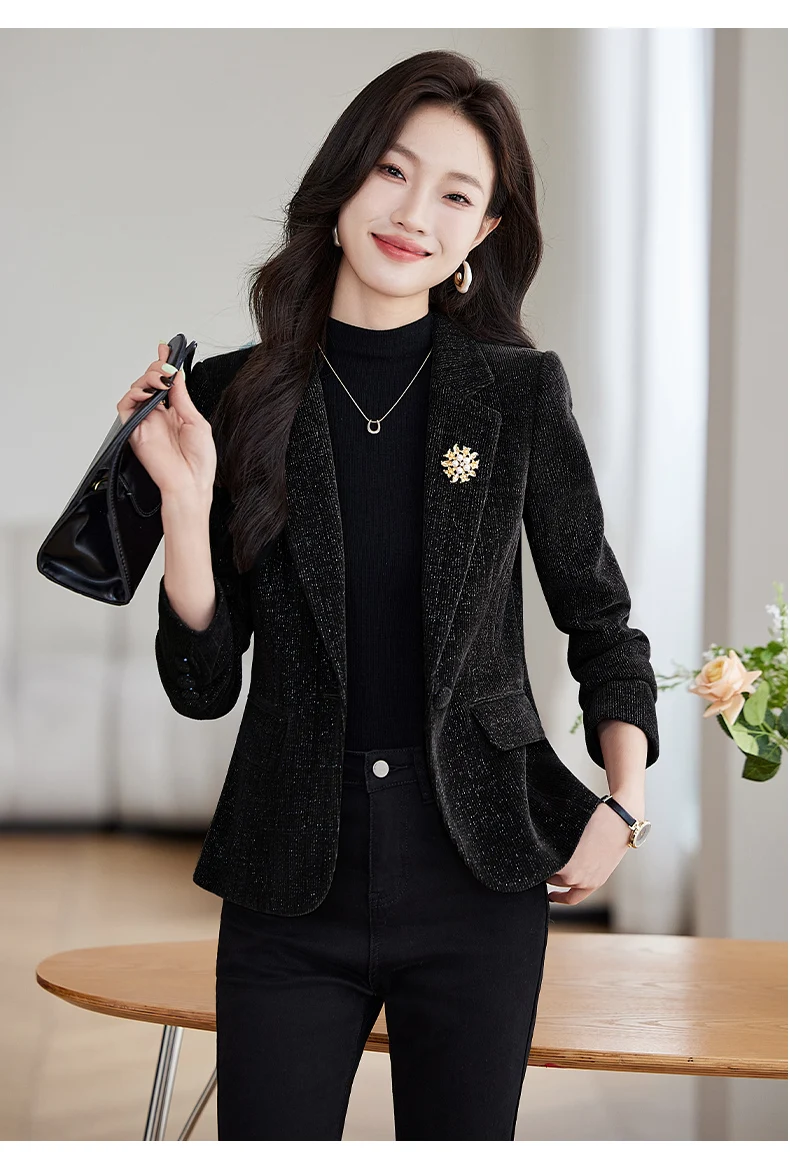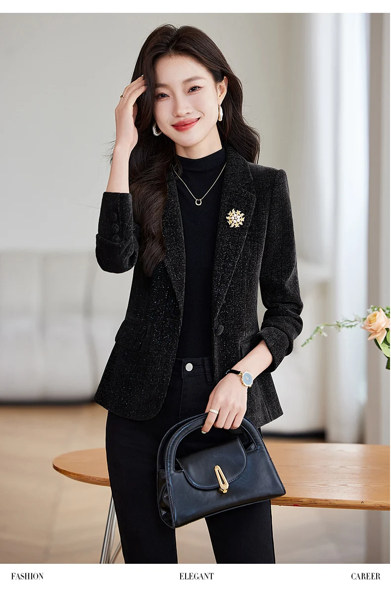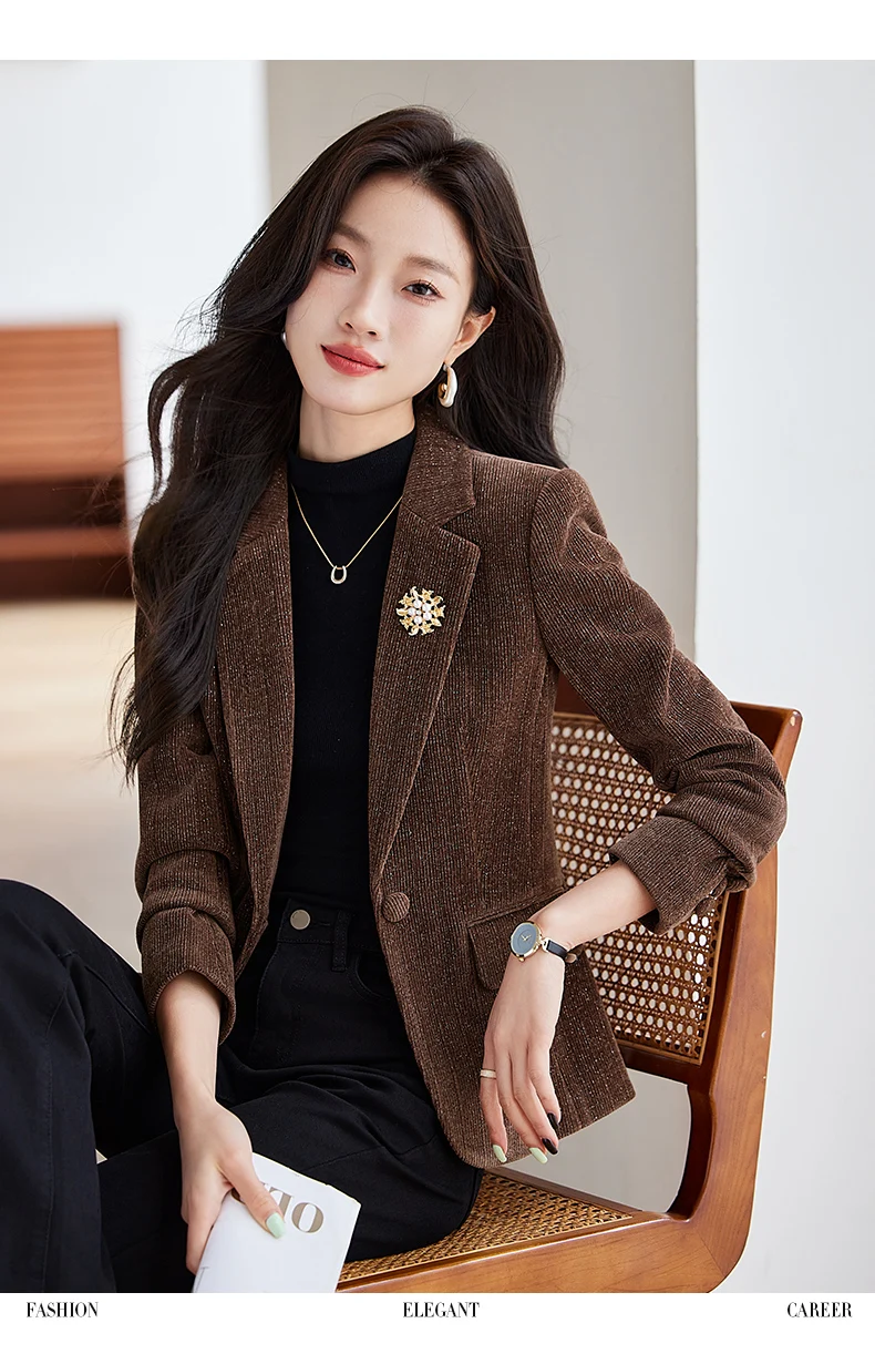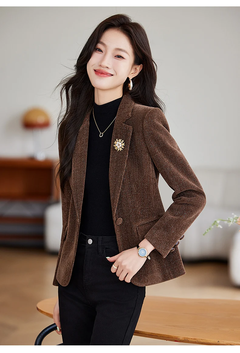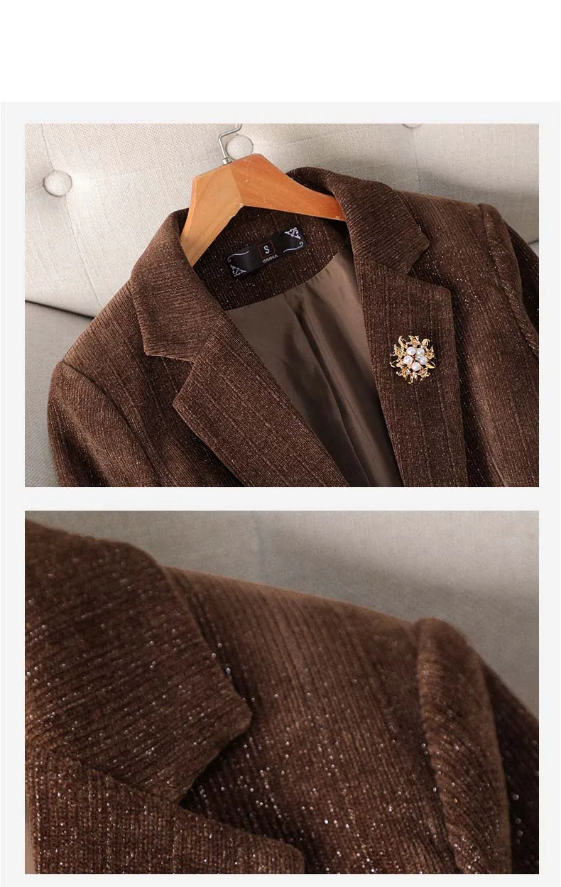 ZJYT Autumn Winter Corduroy Jackets Woman 2024 New Outerwears Coats Elegant Chic Vintage Blazers Mujer Plus Size Korean Style