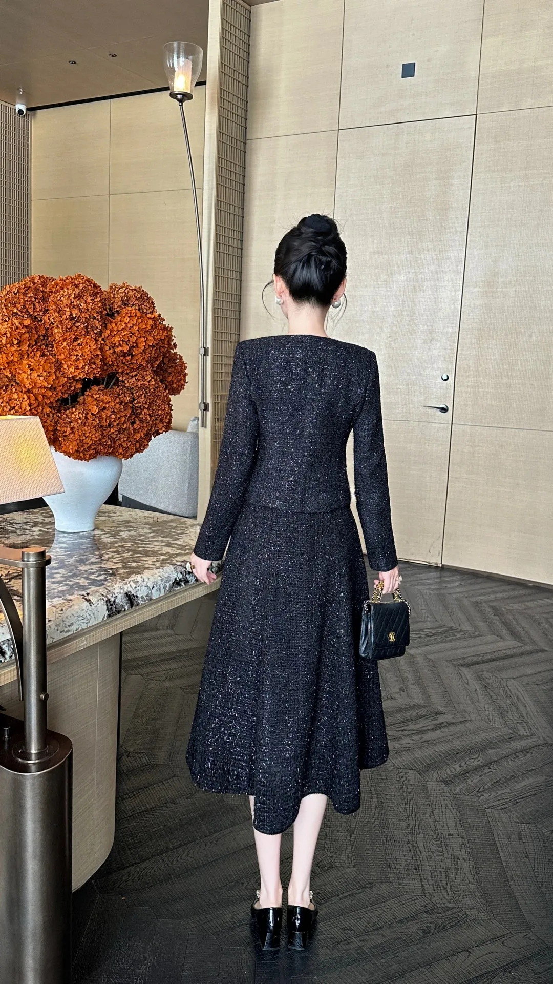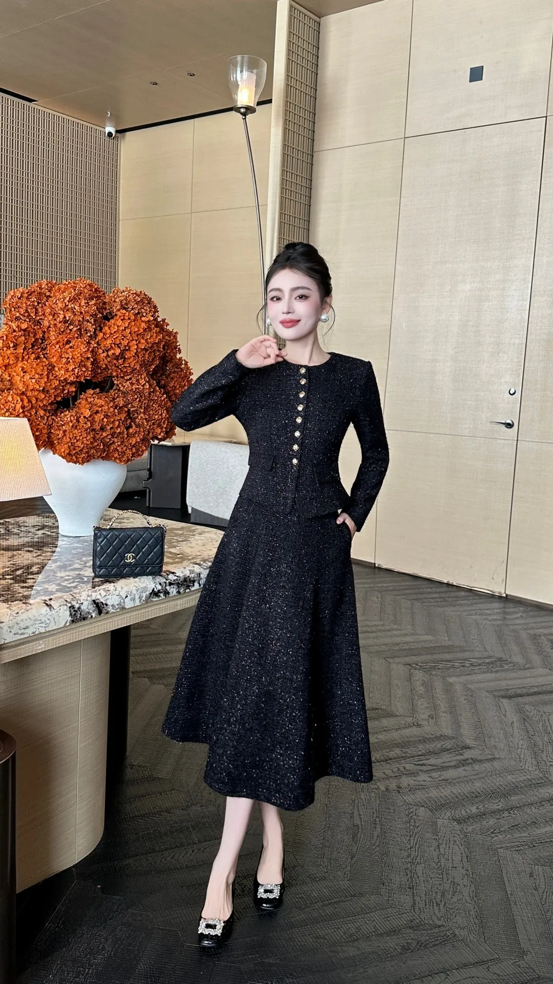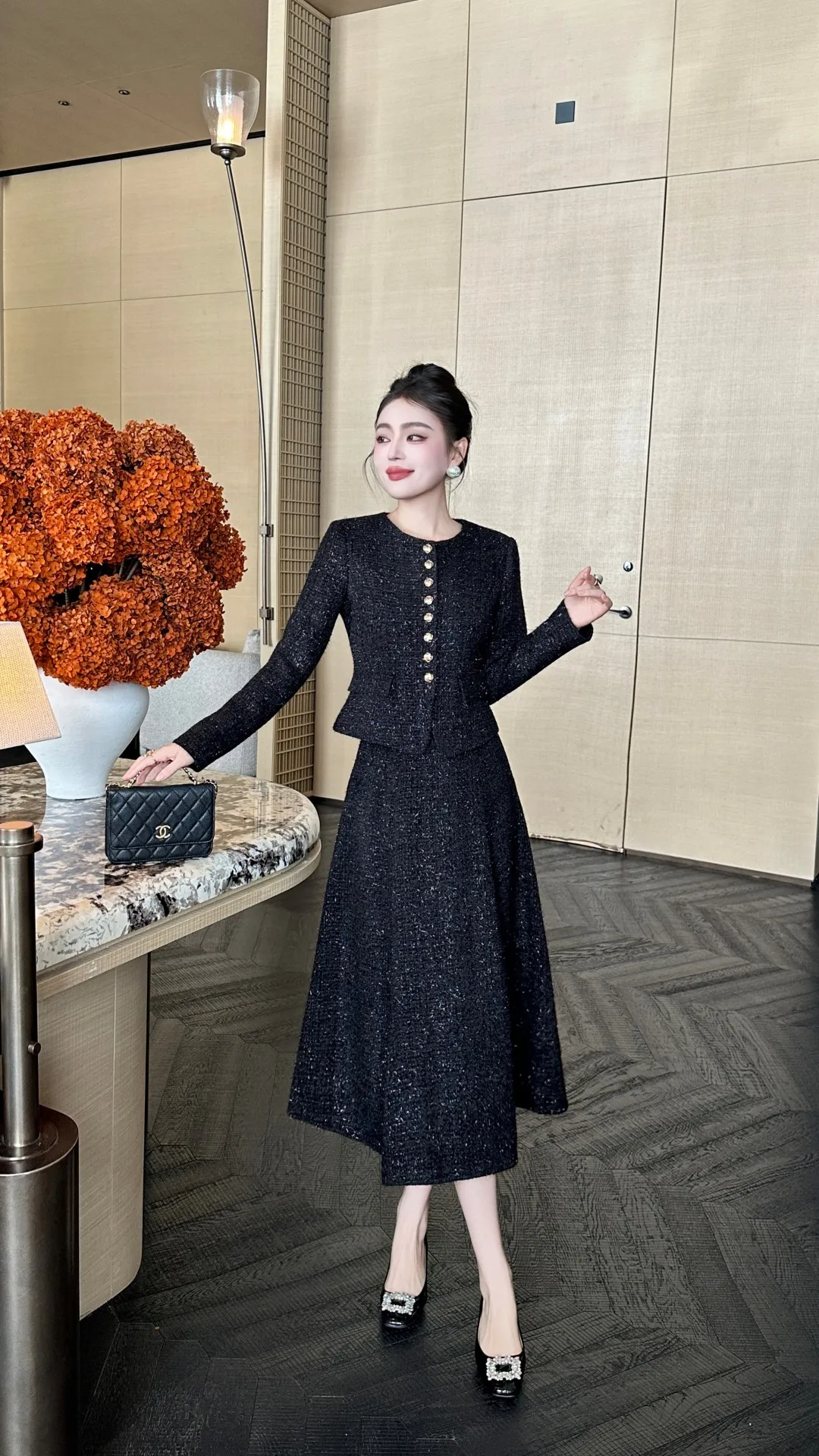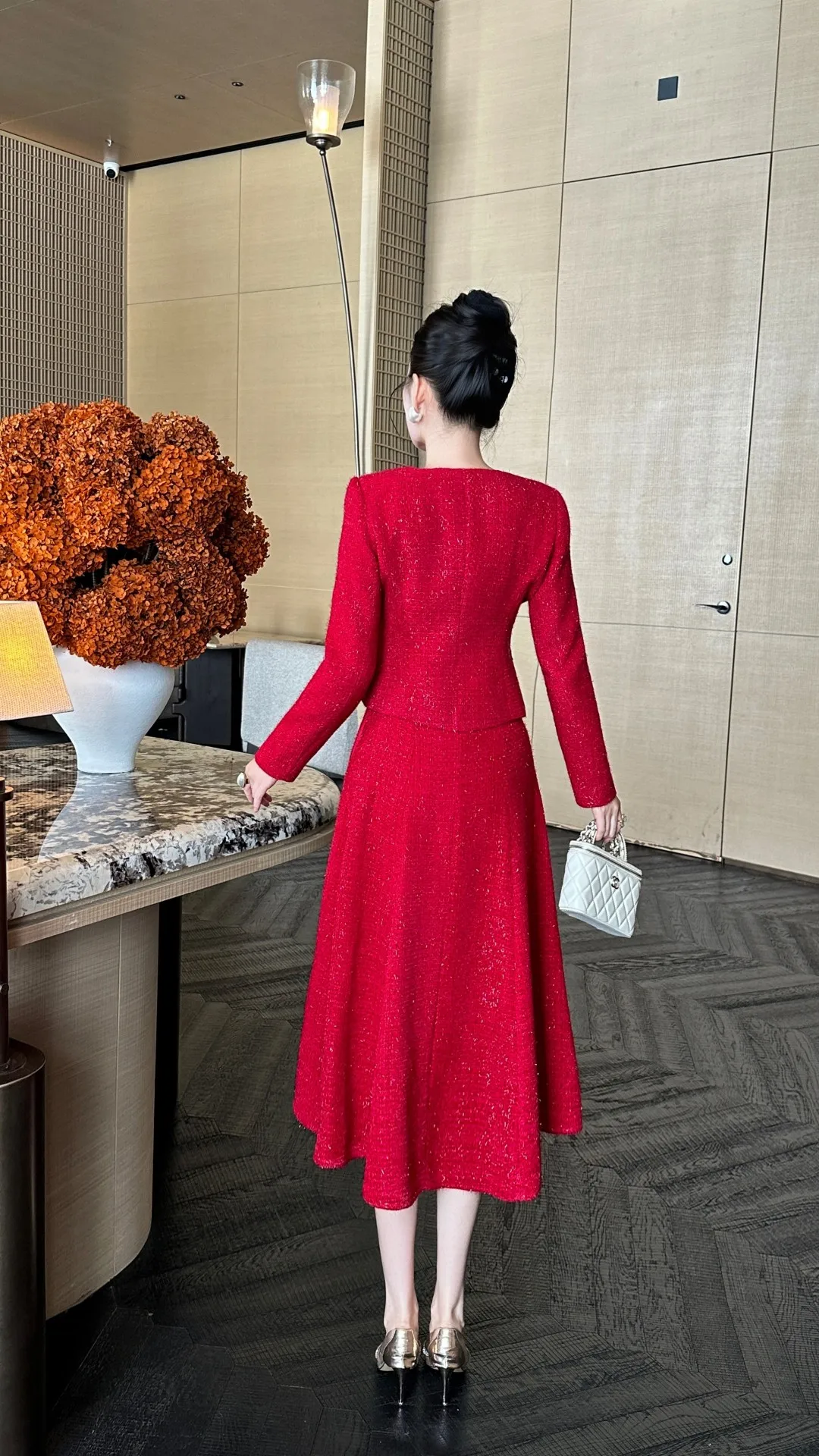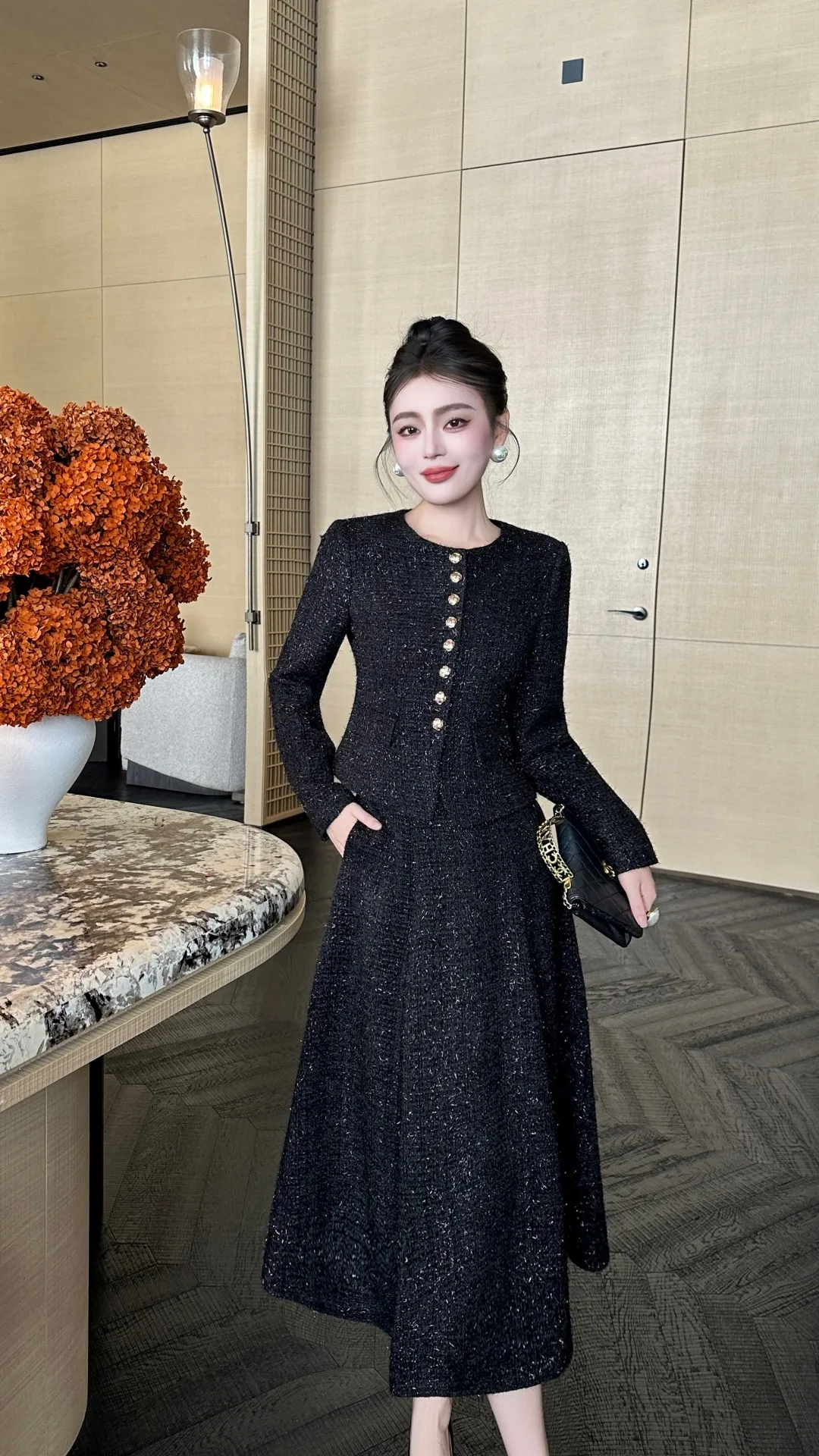 ZJYT Autumn Winter New Women Tweed Woolen Jacket and Skirt Suit 2 Piece Matching Sets Fashion Long Sleeve Red Black Party Outfit