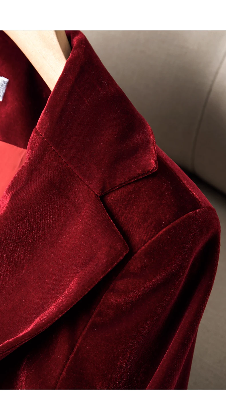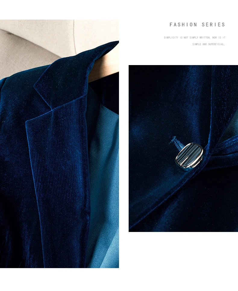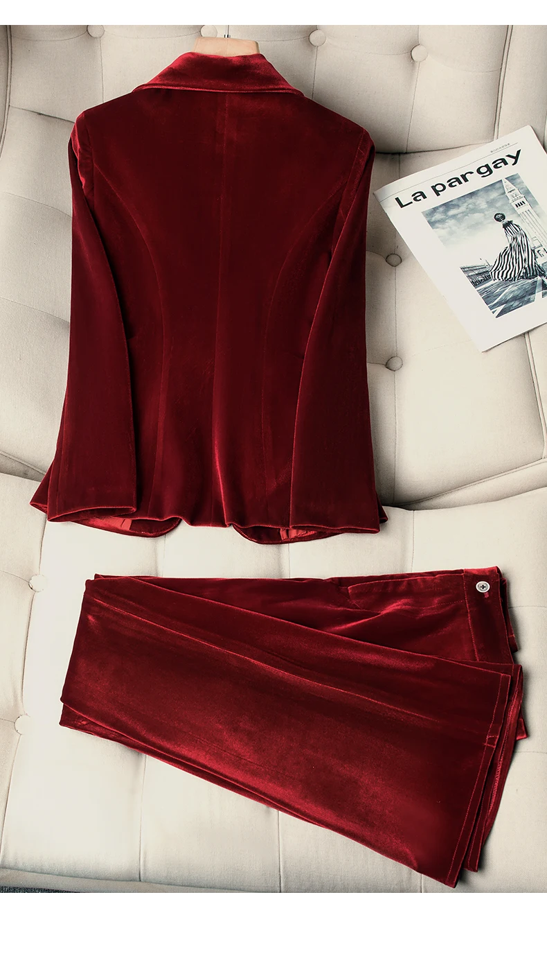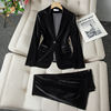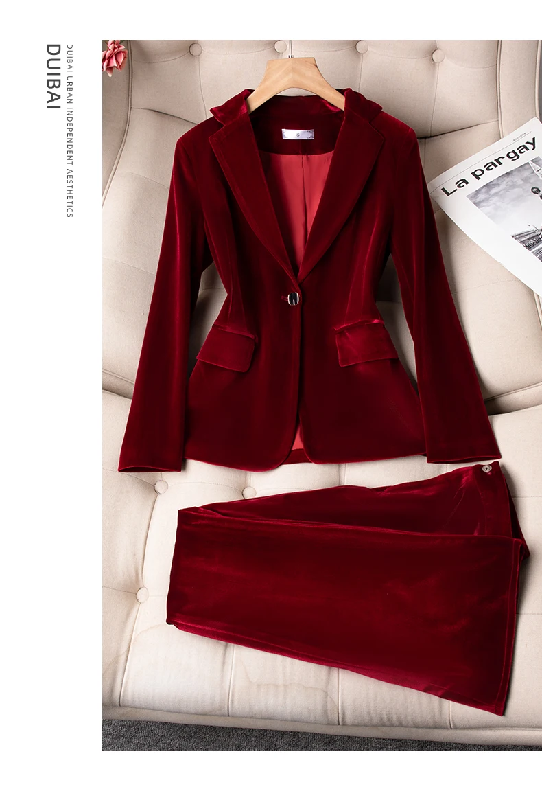 ZJYT Autumn Winter Velvet Jacket Pant Sets Two Pieces Womens Outfit Elegant Ladies One Button Blazer Suit Trousers Office Work