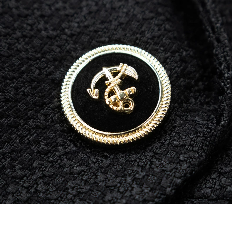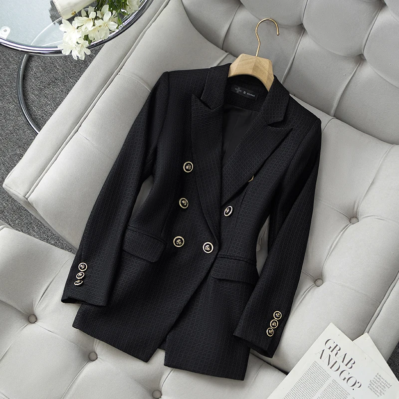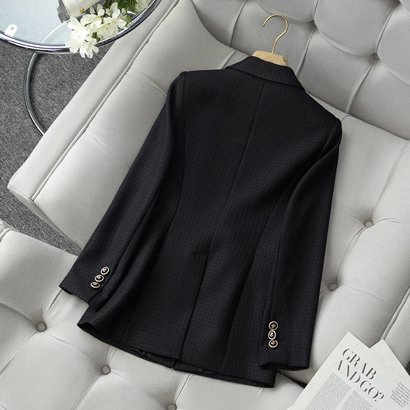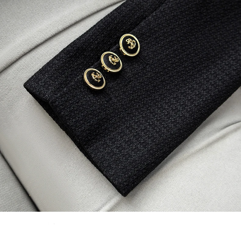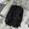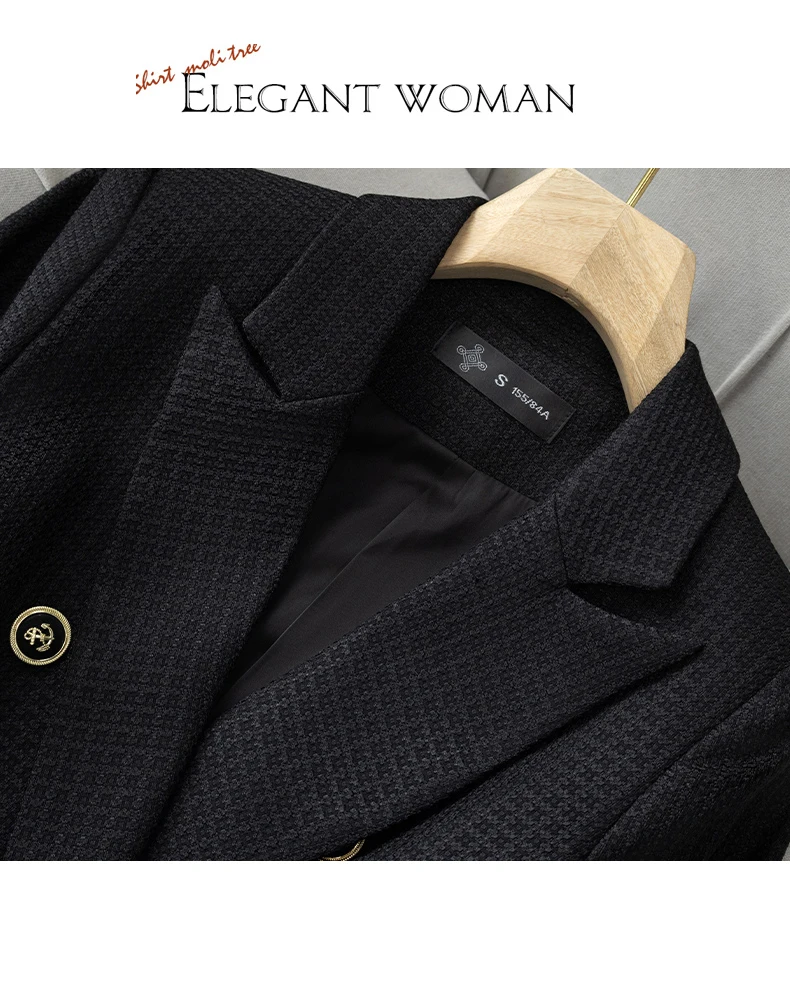 ZJYT Autumn Winter Women’s Double Breasted Tweed Woolen Bazers Women Turn Down Collar Black Casual Jackets Coats Veste Femme