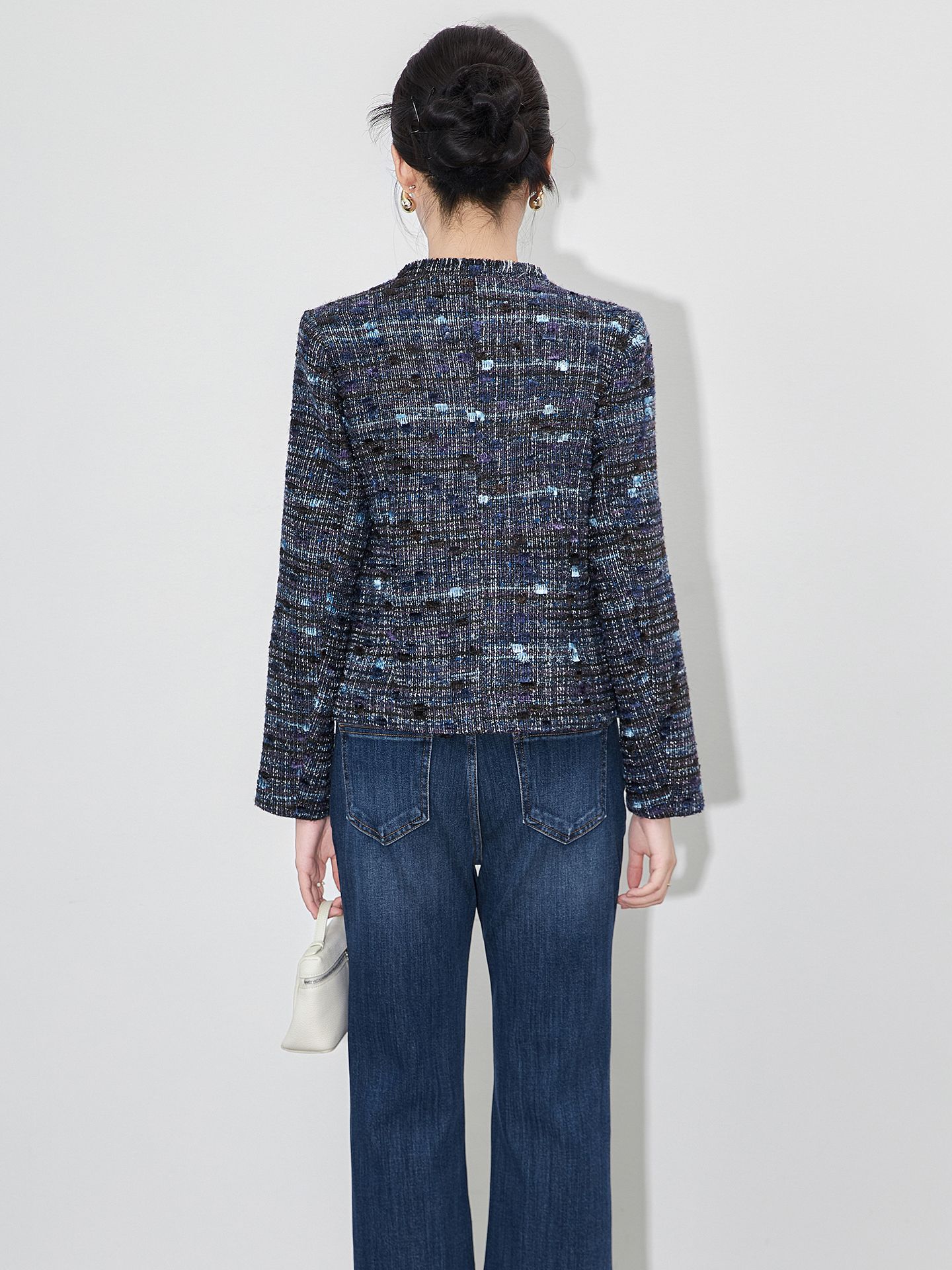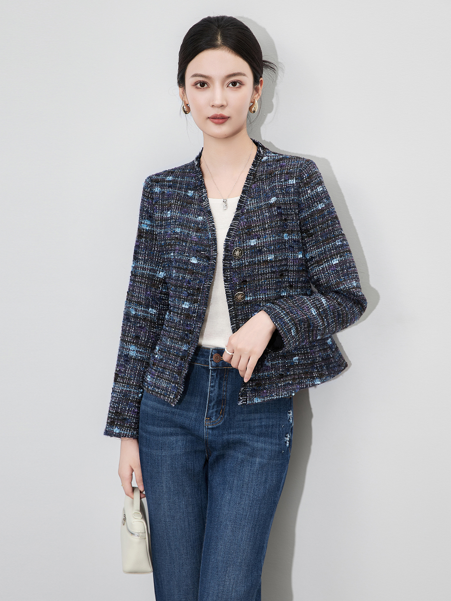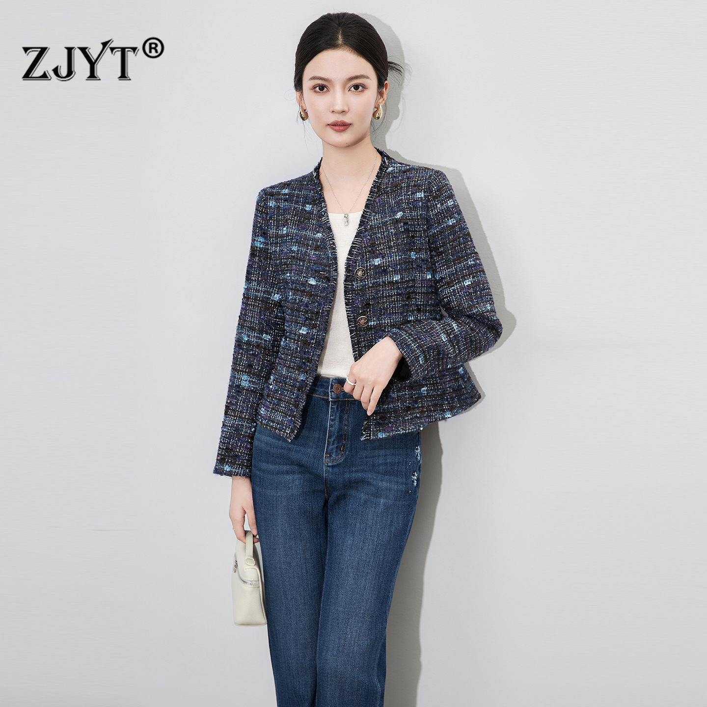 ZJYT Autumn Winter Women’s Tweed Woolen Jackets Coats Elegant Fashion Long Sleeve V Neck Vintage Casual Outerwears Female Veste