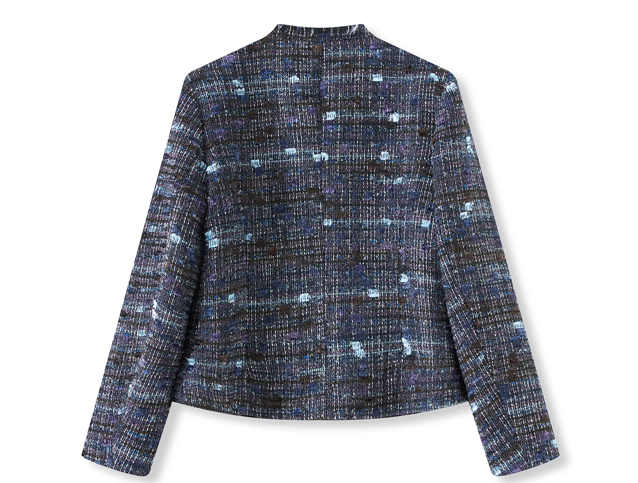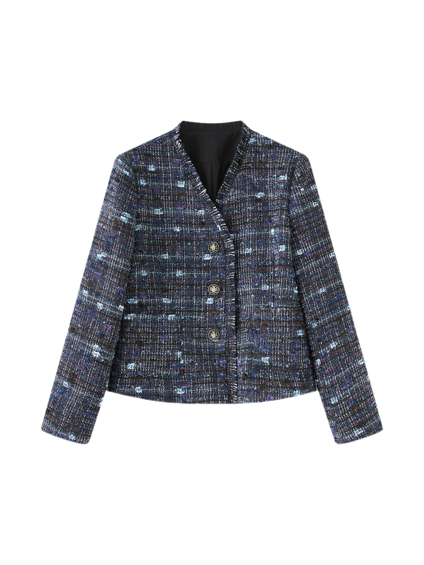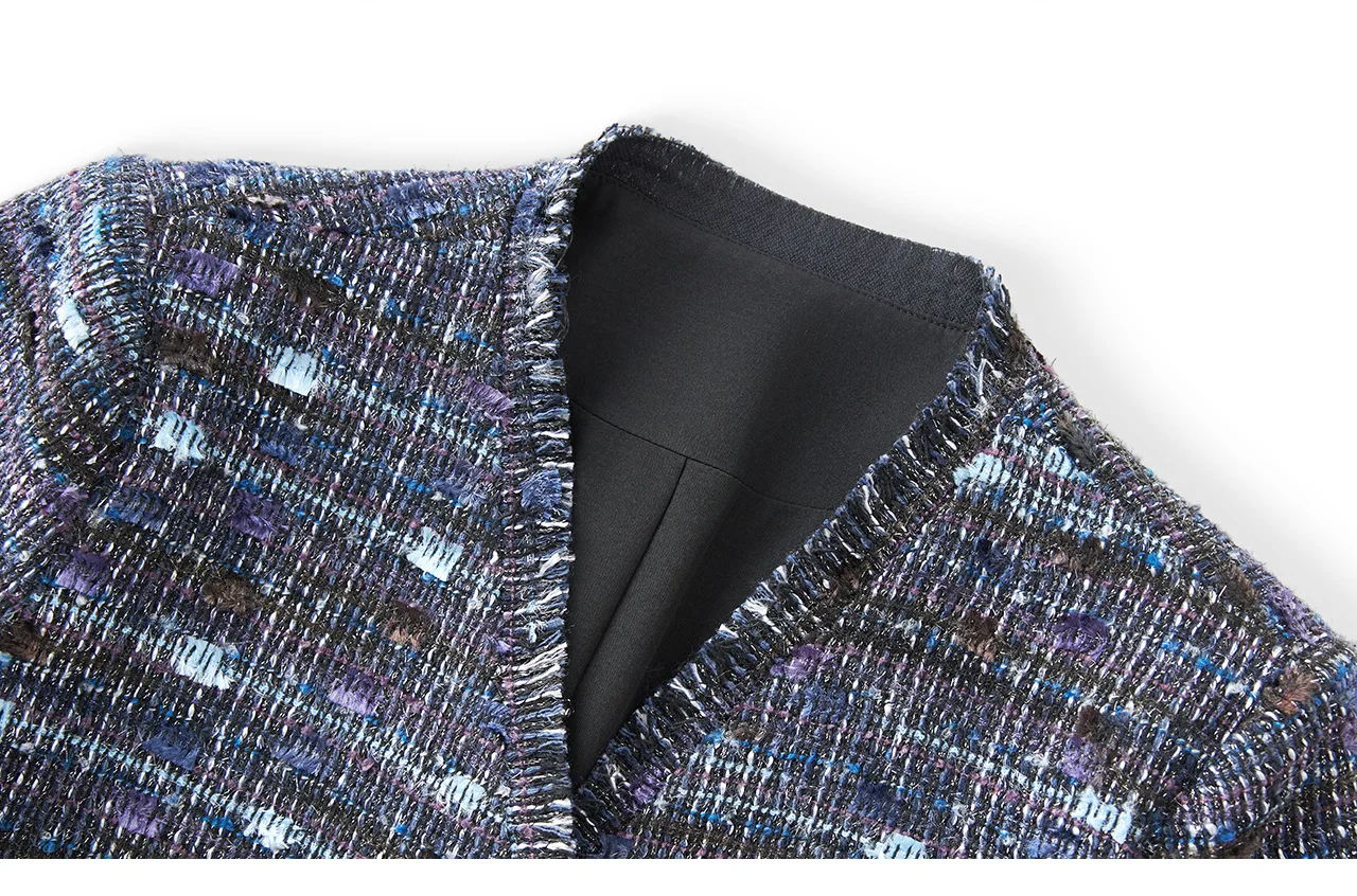 ZJYT Autumn Winter Women’s Tweed Woolen Jackets Coats Elegant Fashion Long Sleeve V Neck Vintage Casual Outerwears Female Veste