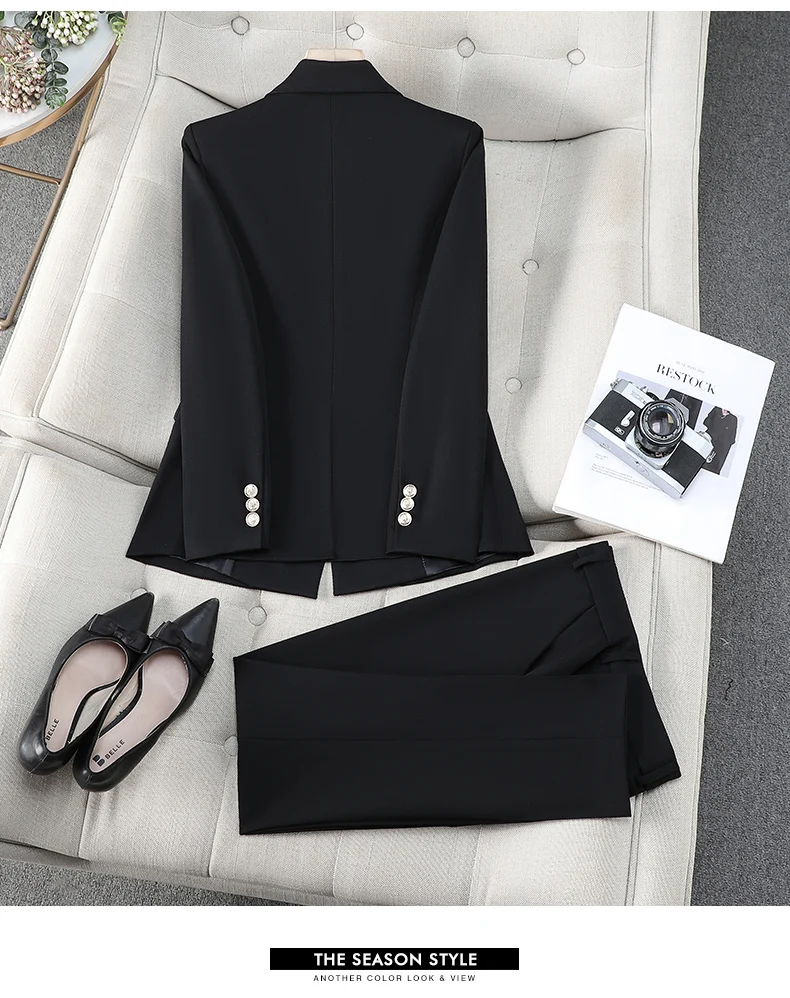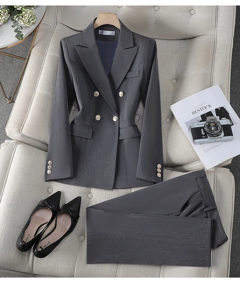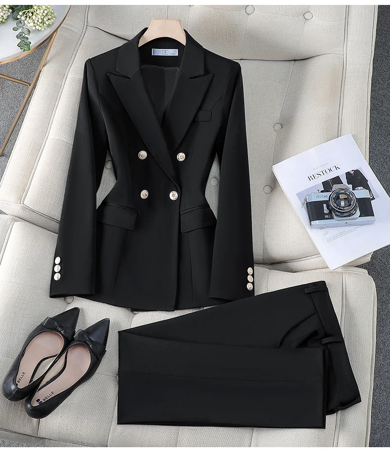 ZJYT Business Chic Formal Blazer Suit Trousers Two Pieces Womens Outfit 2025 Autumn Elegant Double Breasted Jacket and Pant Sets