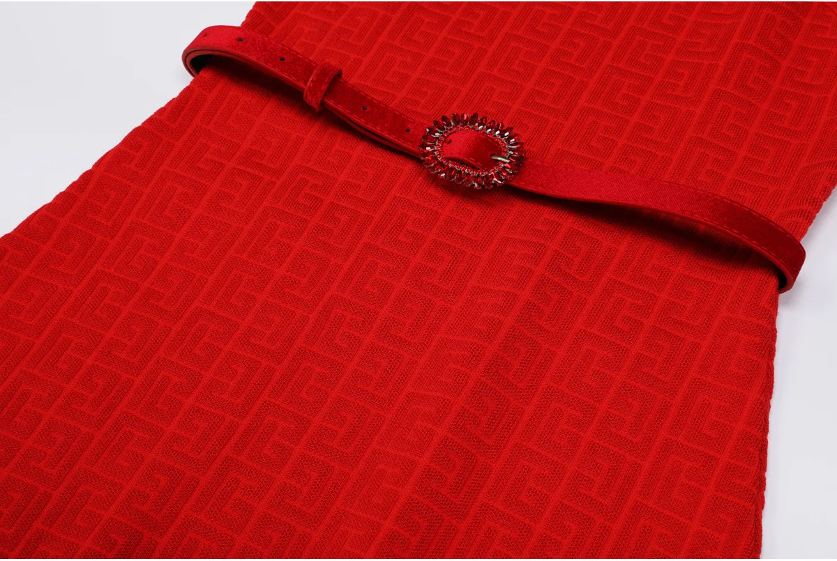 ZJYT Designer Fashion Women’s Sleeveless Knitting Sweater Dresses Elegant Basics Casual Midi Spaghetti Strap Dress Party Red