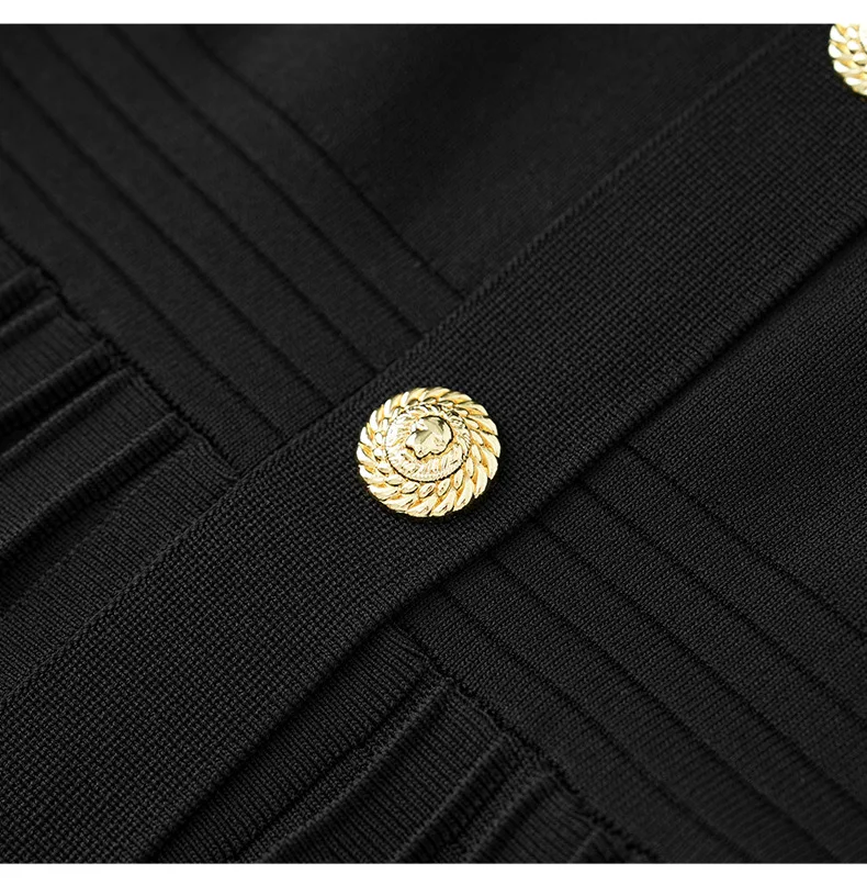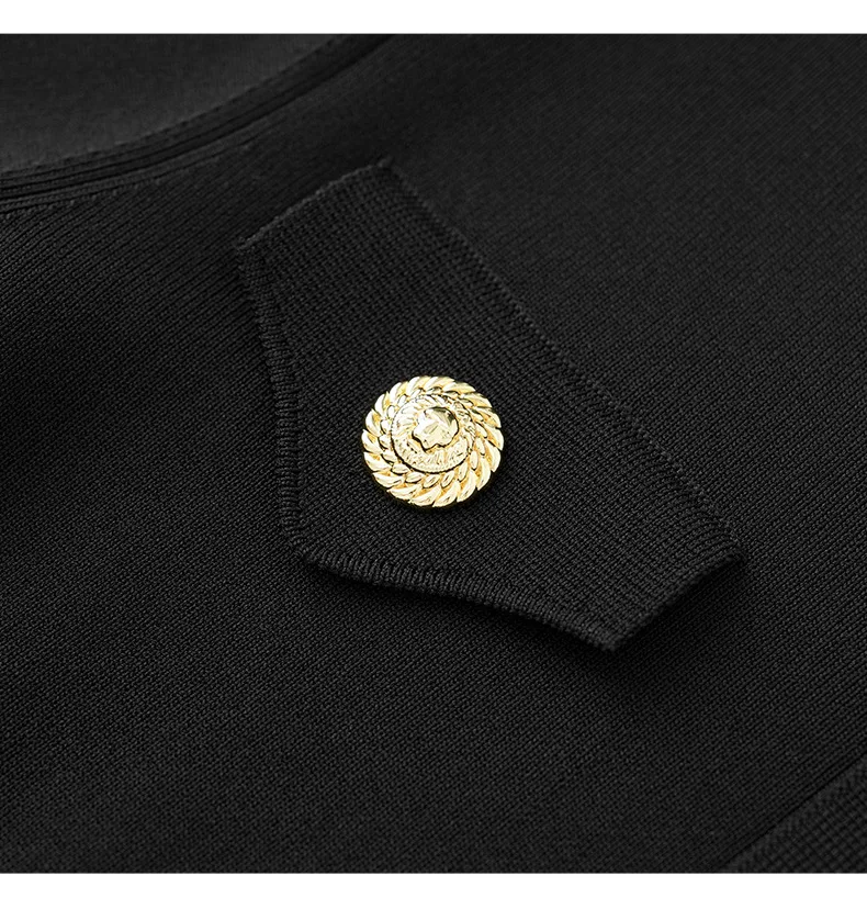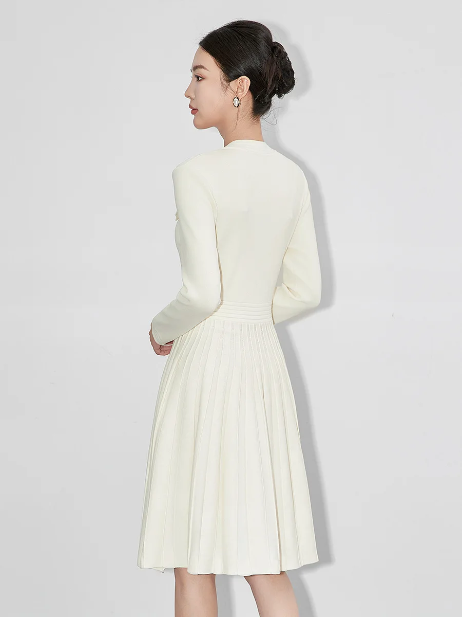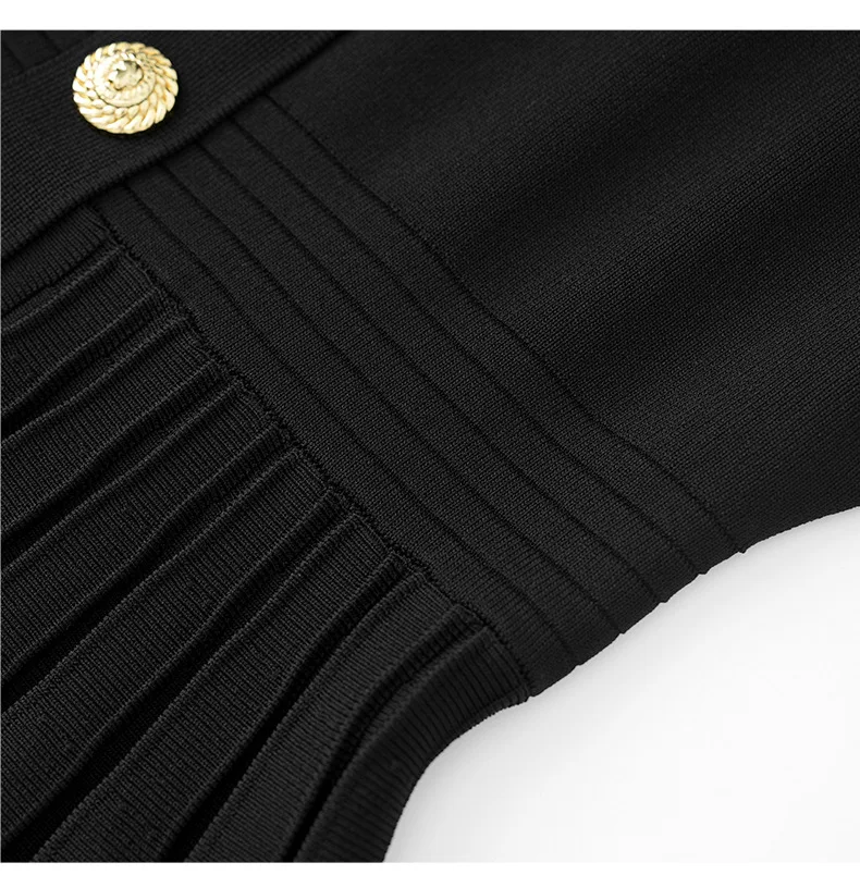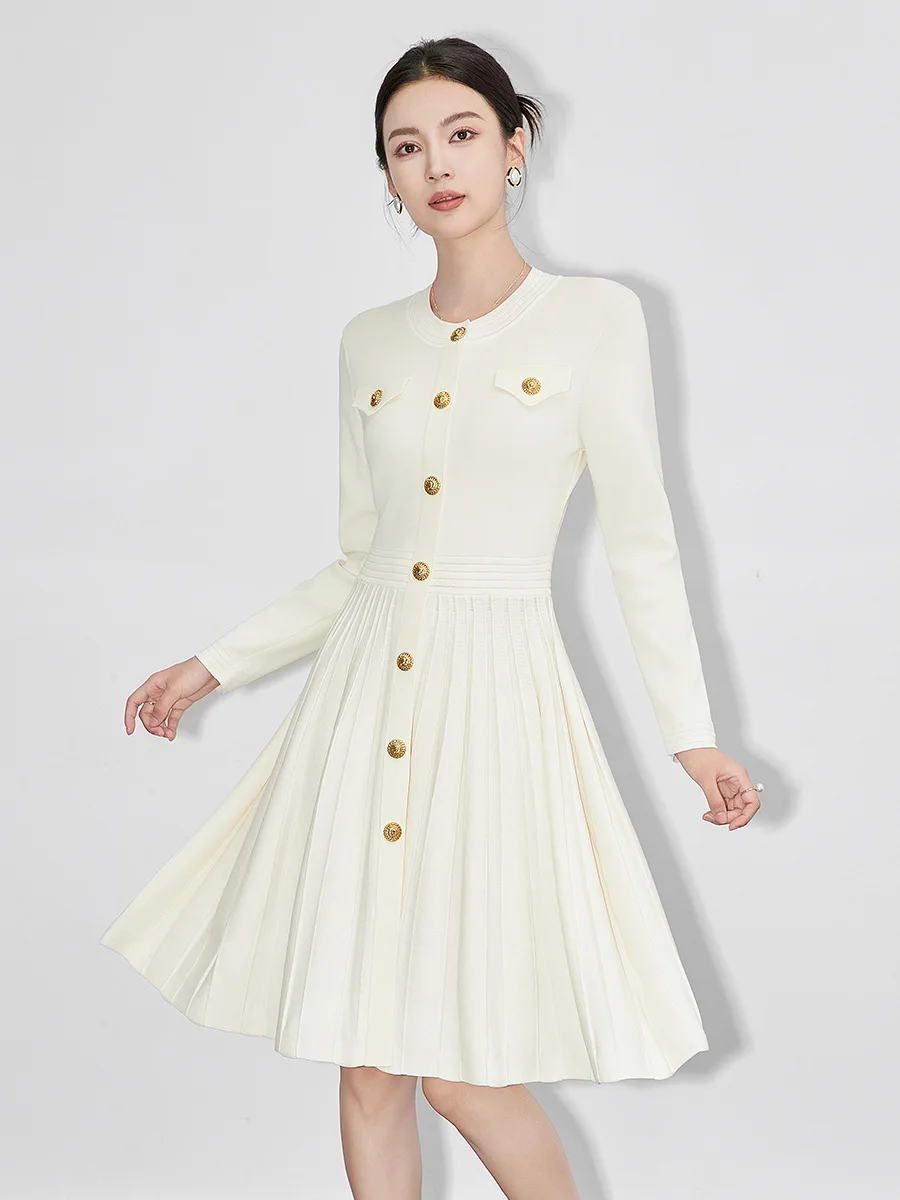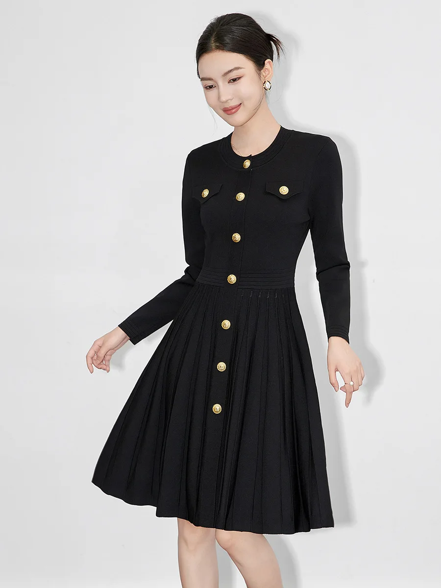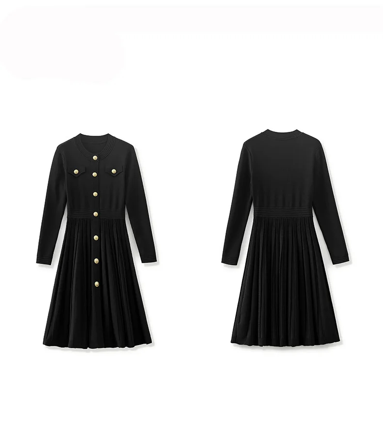 ZJYT Designer Runway Fashion Autumn Winter Knitted Sweater Dresses Women Long Sleeve O Neck Buttons Pleated Solid Casual Dress