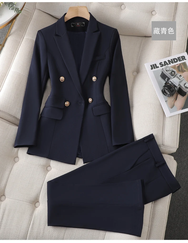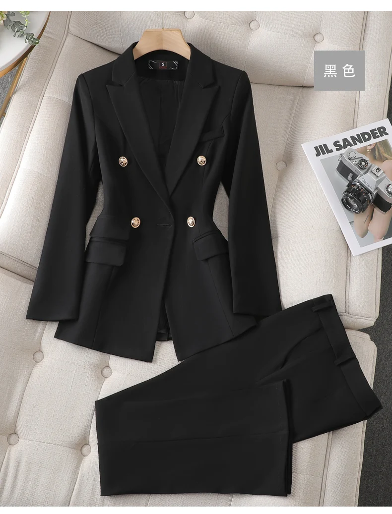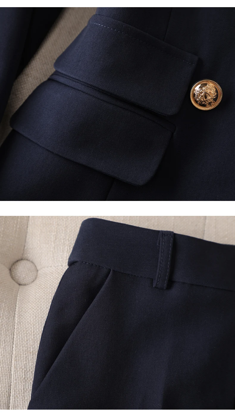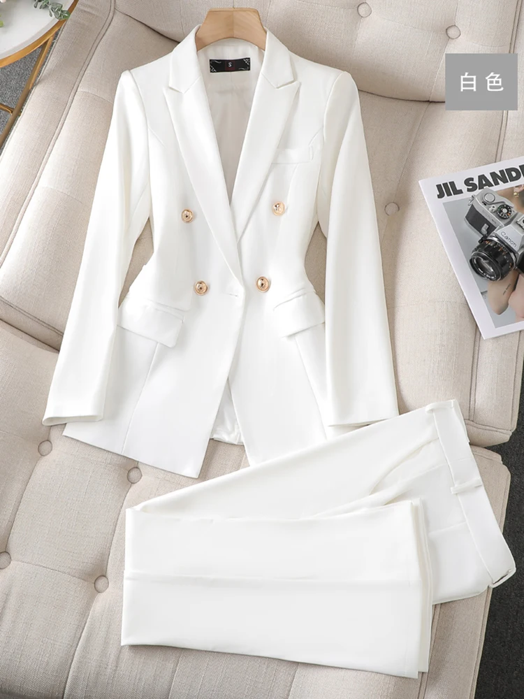 ZJYT Double Breasted Blazer Pants Suits 2 Piece Matching Set Women Conjunto Para Mujeres Work Wear Trousers Sets Office Outfit