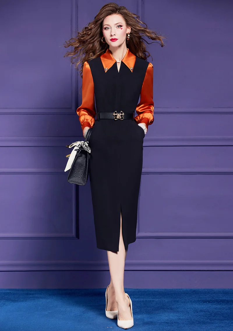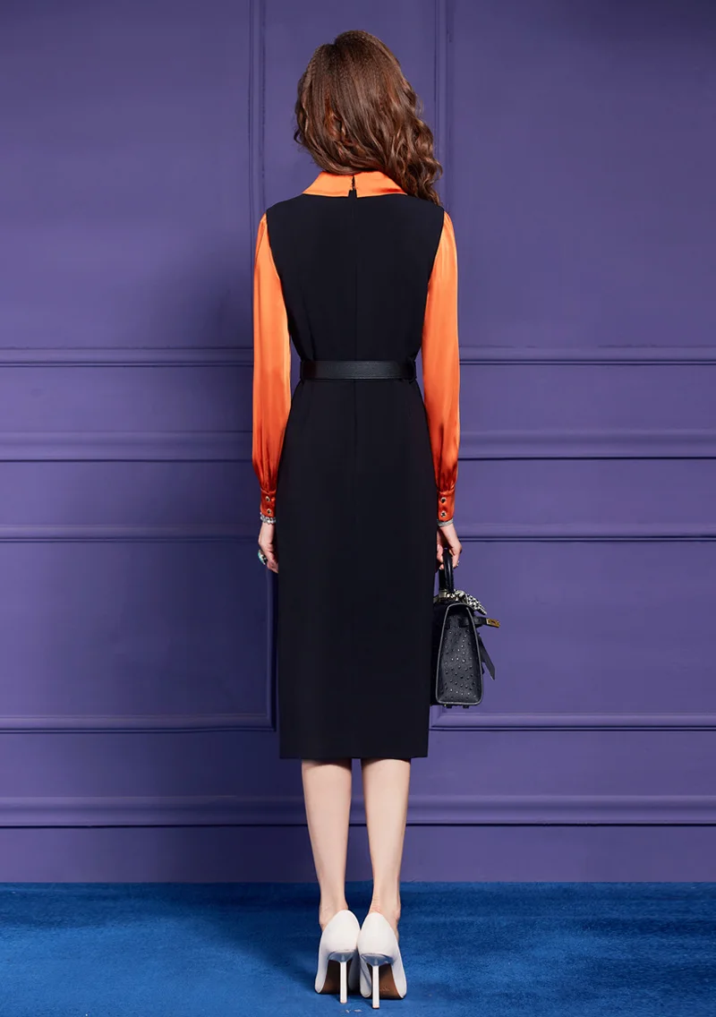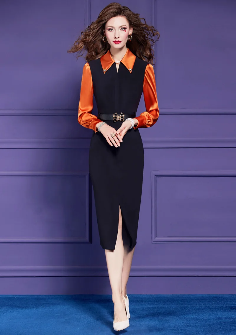 ZJYT Elegant Chic Formal Office Lady Pencil Dresses Autumn 2025 Designer Women’s Patchwork Long Sleeve Party Dress Plus Size 3XL