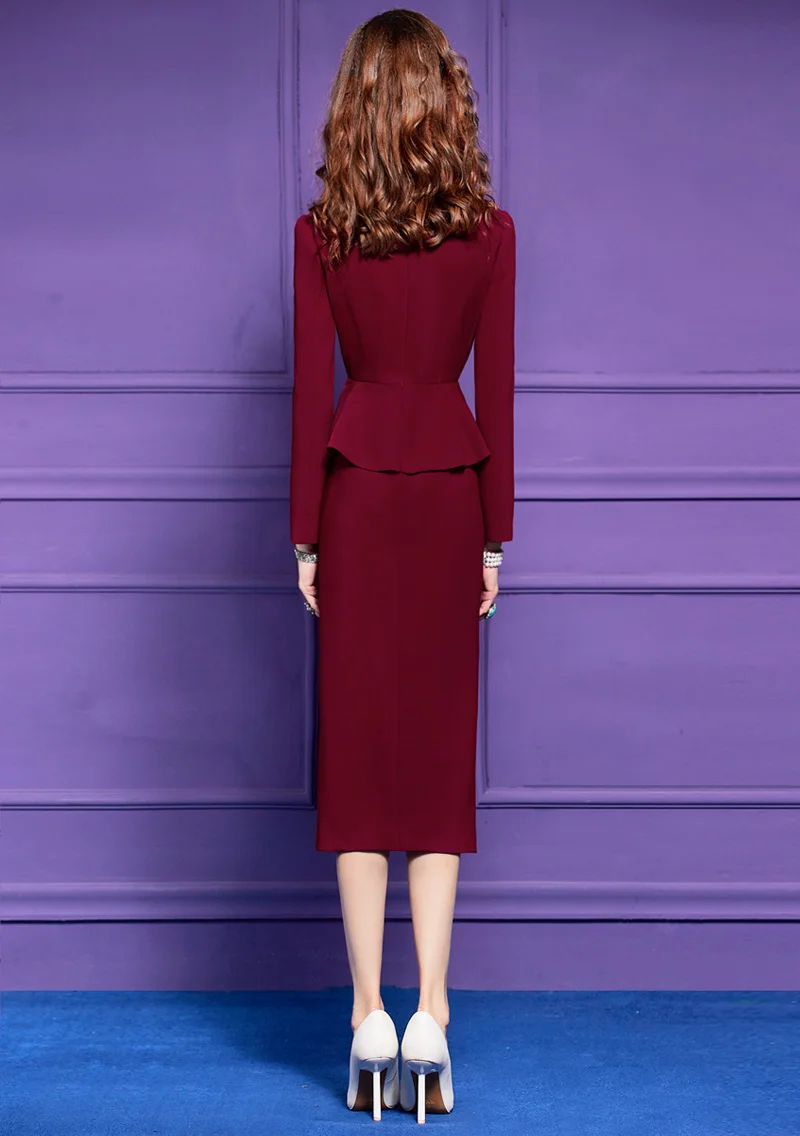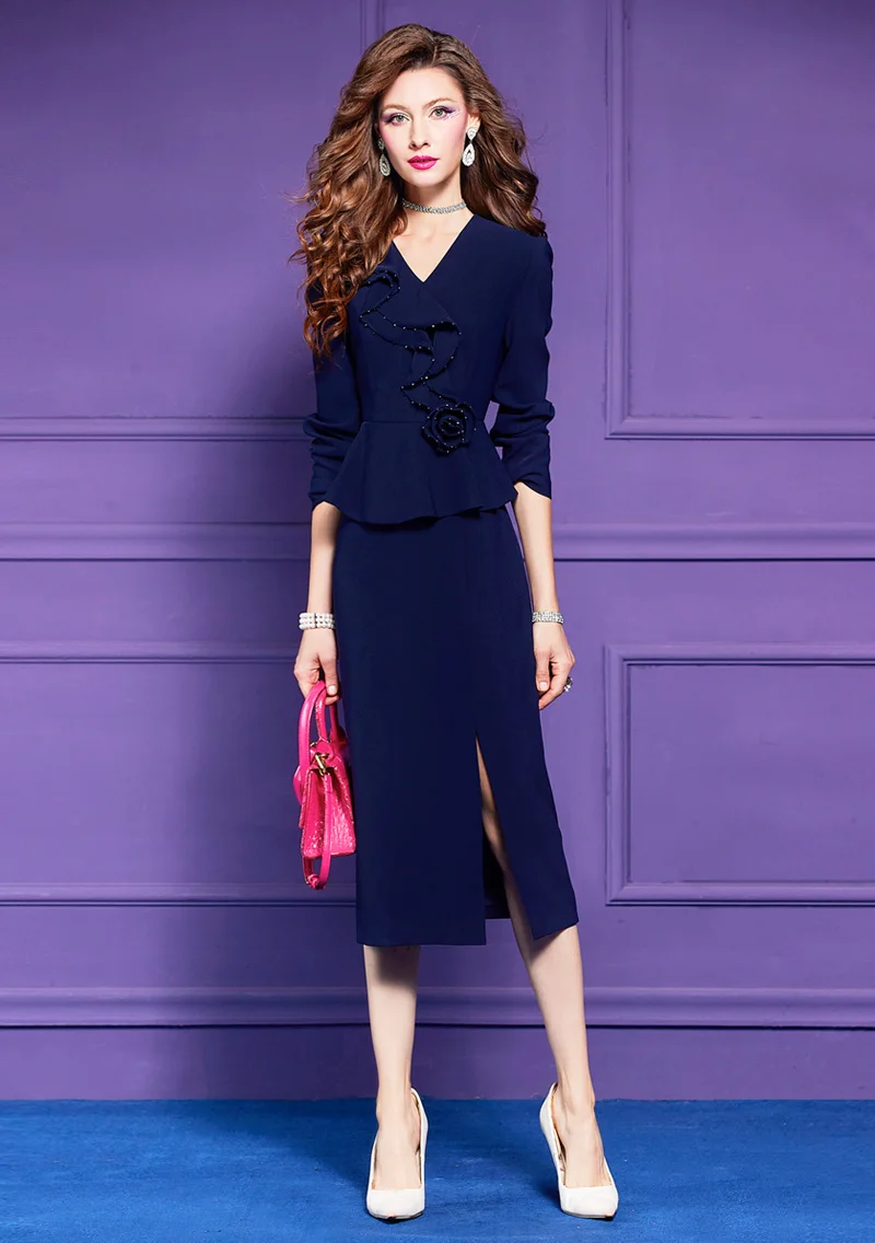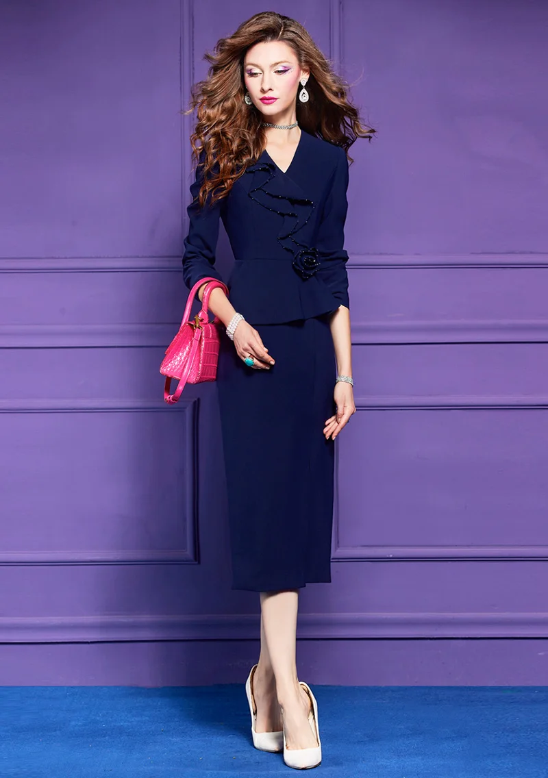 ZJYT Elegant Ladies Beading Ruffles Floral Patchwork Pencil Dresses for Women Office Work Autumn Long Sleeve Formal Party Dress
