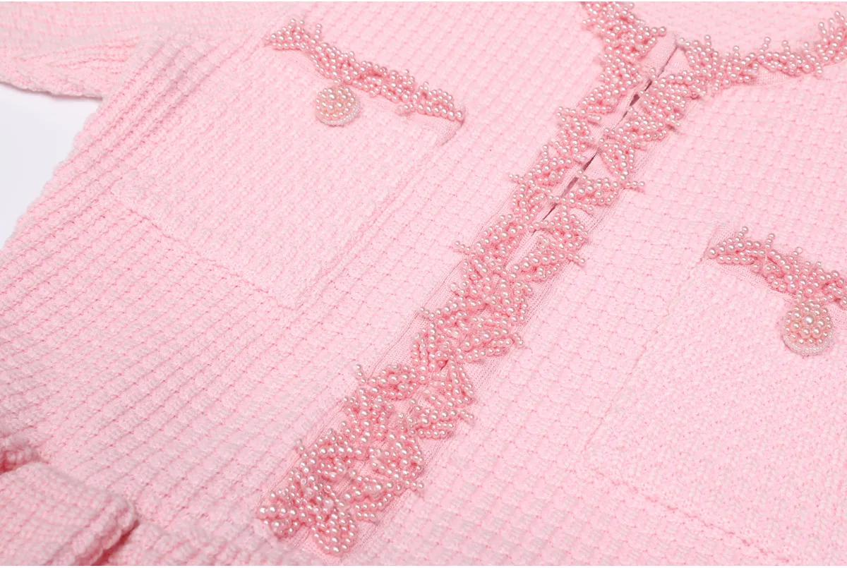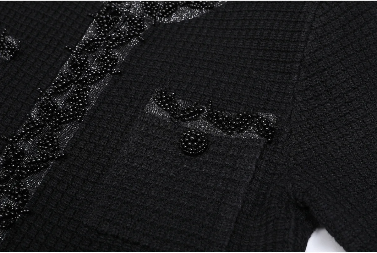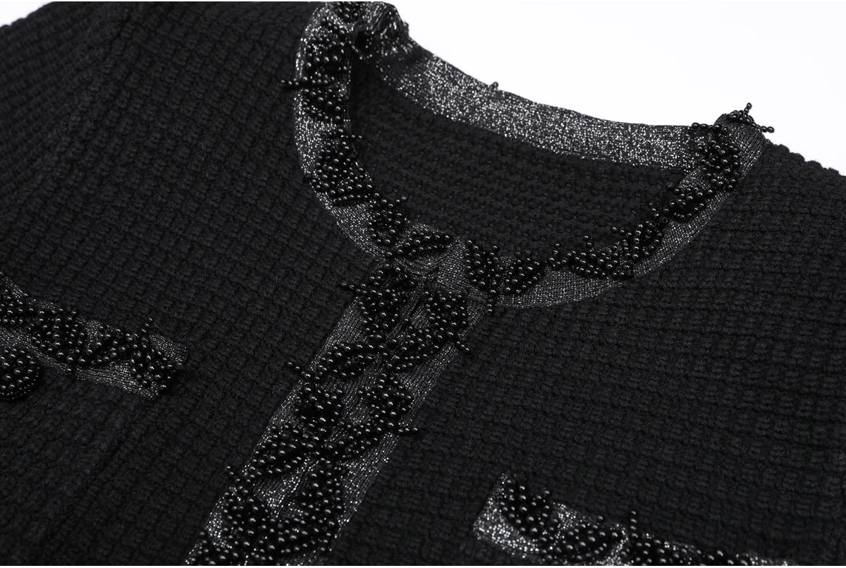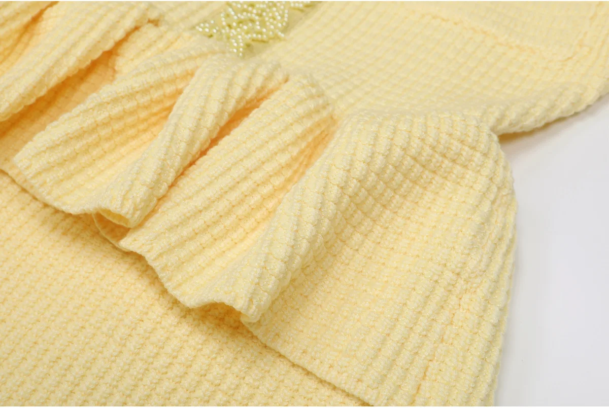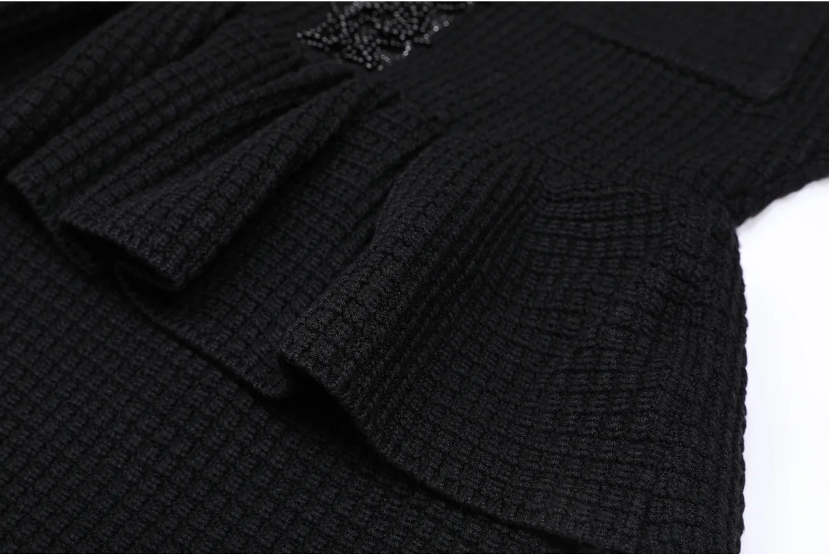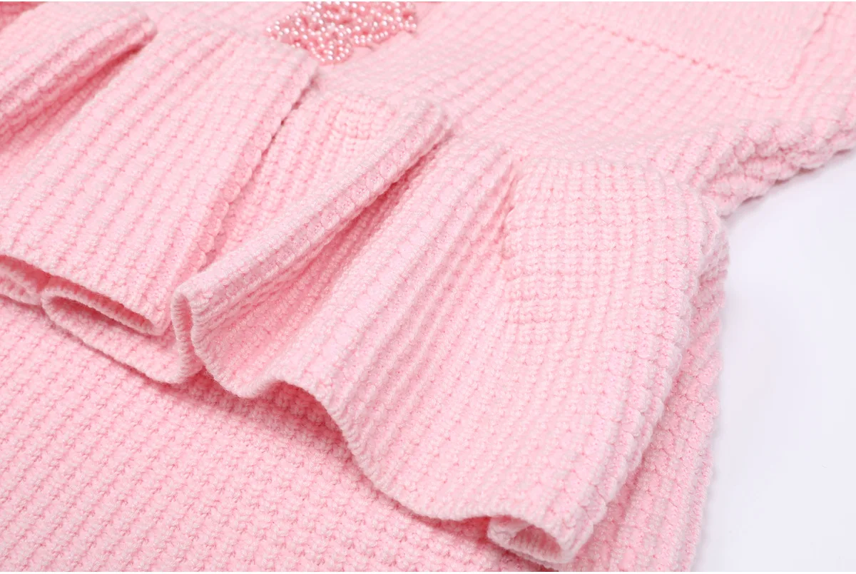 ZJYT Elegant Luxury Pearls Beading Knitted Sweater Dresses for Women Autumn New Fashion Ruffles Patchwork Long Party Dresses
