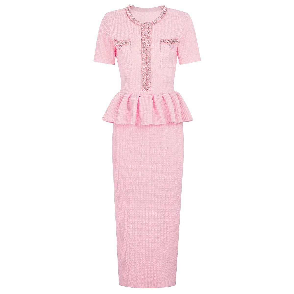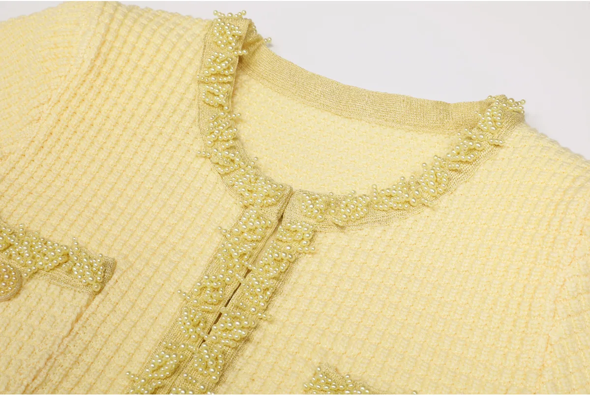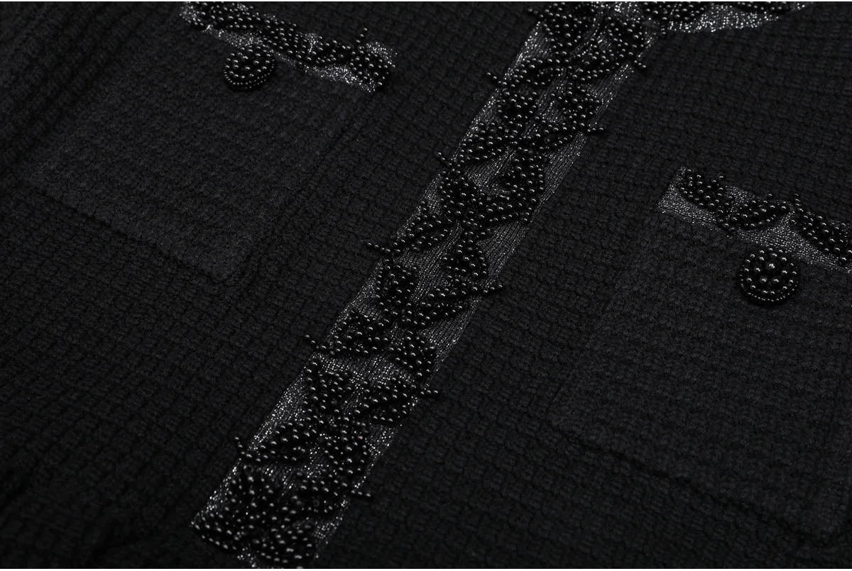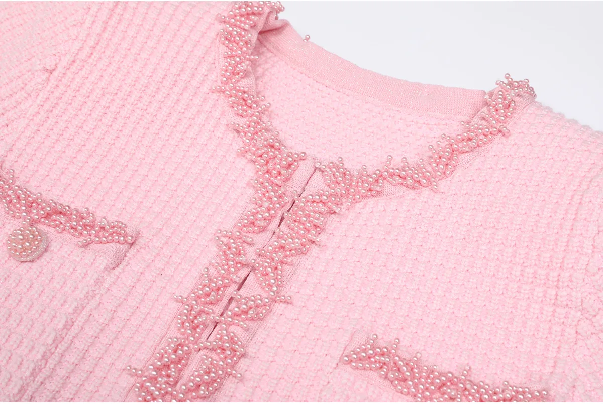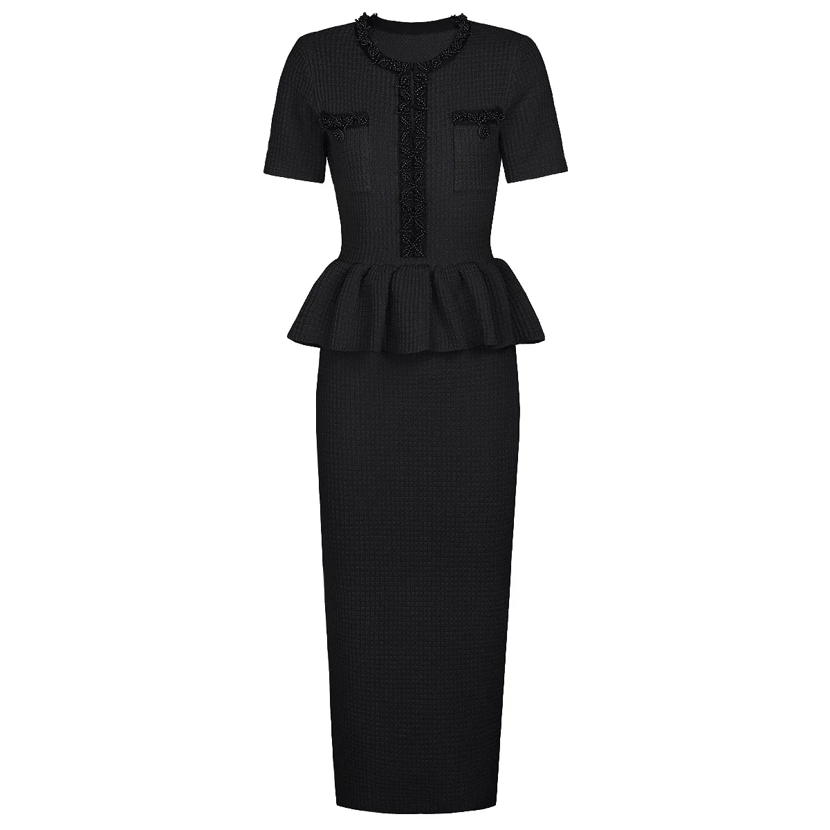 ZJYT Elegant Luxury Pearls Beading Knitted Sweater Dresses for Women Autumn New Fashion Ruffles Patchwork Long Party Dresses
