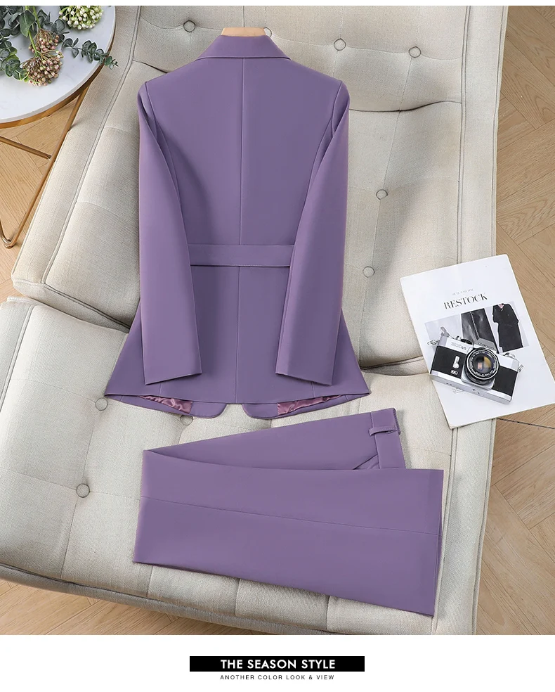 ZJYT Elegant Purple Suit Trousers Women Spring 2026 Fashion Business Chic Formal Office Lady Blazer Pants Sets Plus Size Outfit
