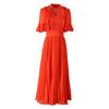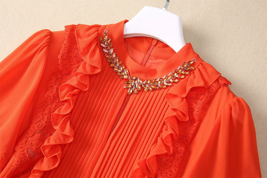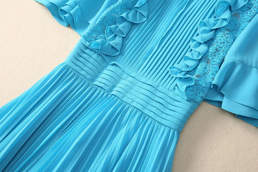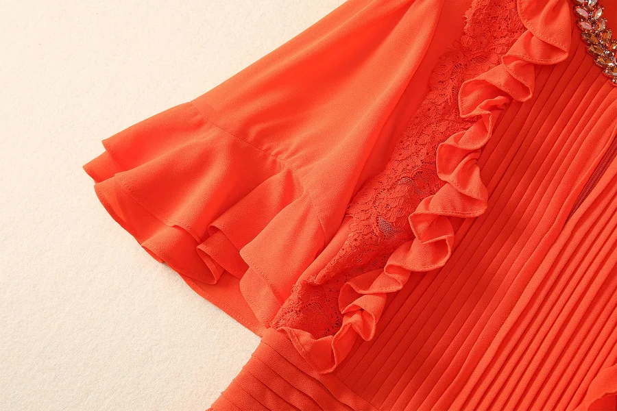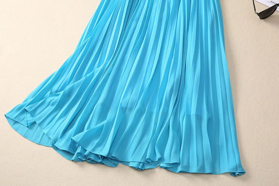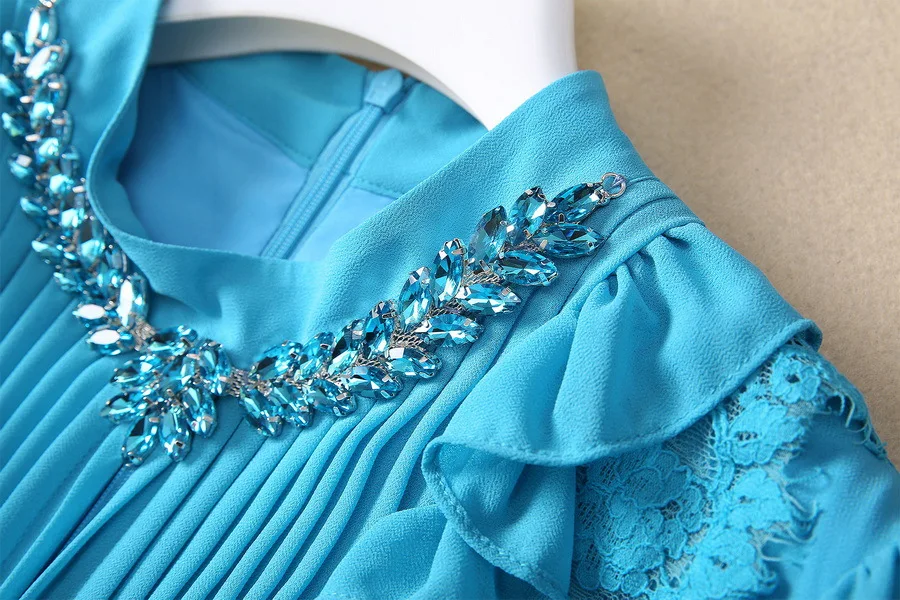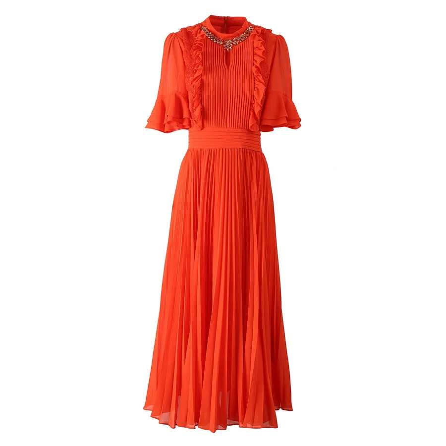 ZJYT Elegant Summer Pleated Long Maxi Chiffon Dresses for Women Stand Collar Rinestone Flare Sleeve Evening Party Gown Vestidos