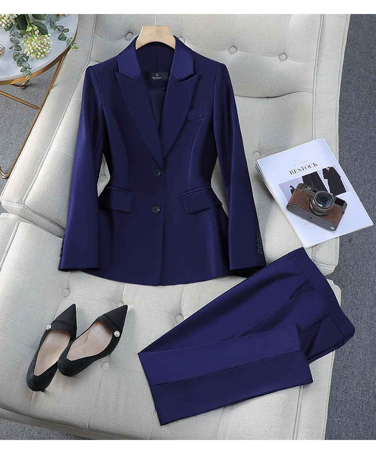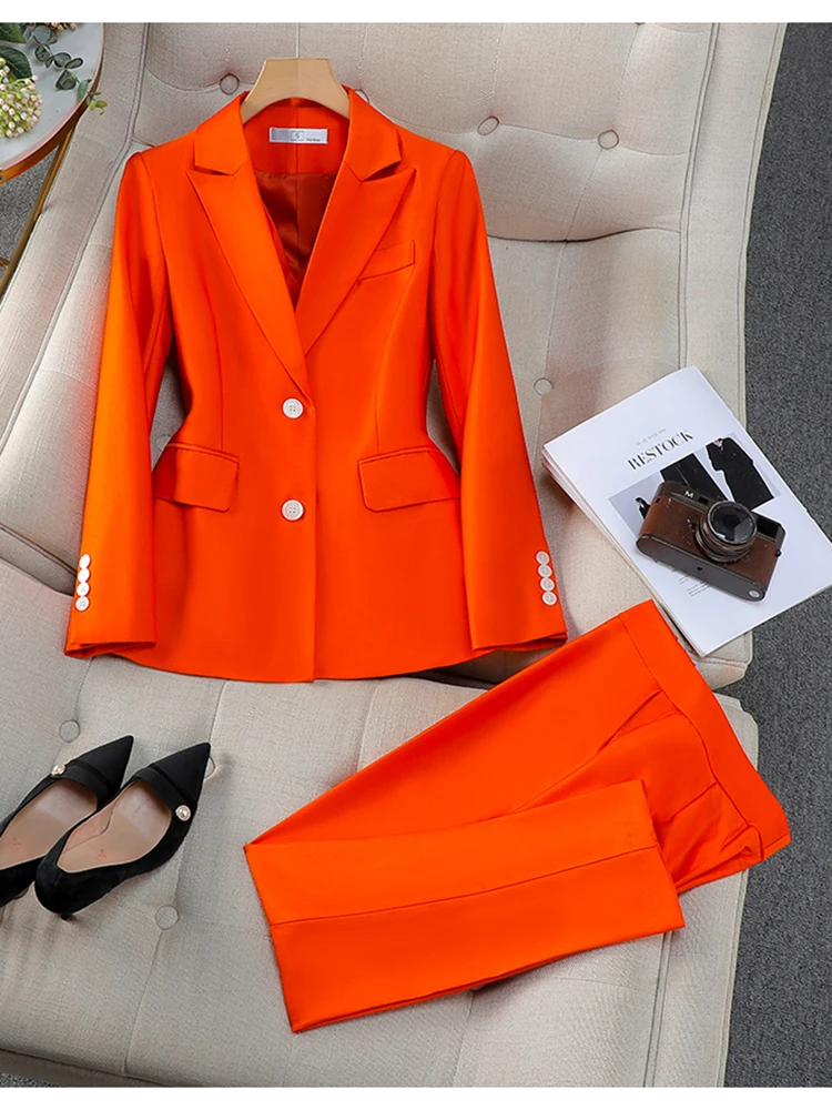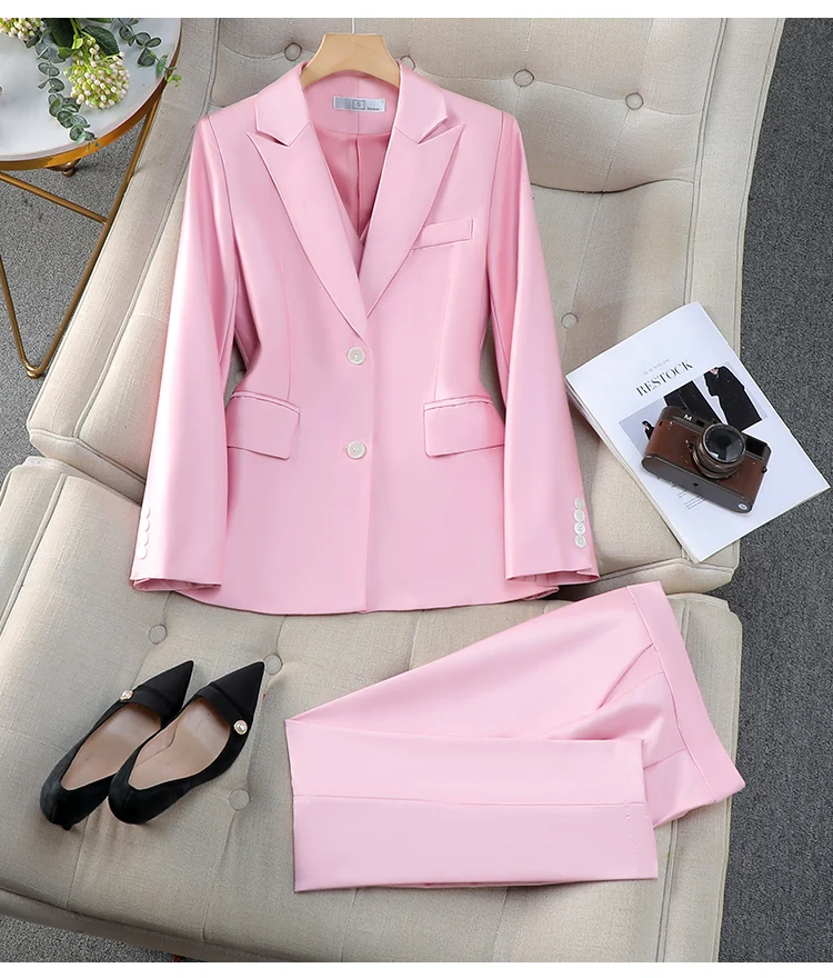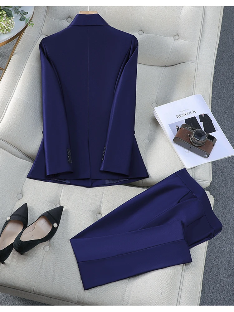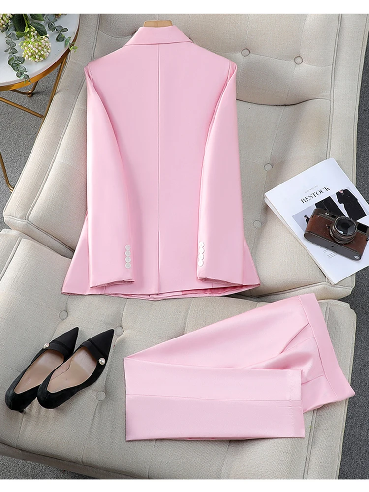ZJYT Elegant Women’s Blazer Trousers Sets for Women 2 Pieces Office Lady Work Outfit Plus Size Matching Pants Sets Suits Spring