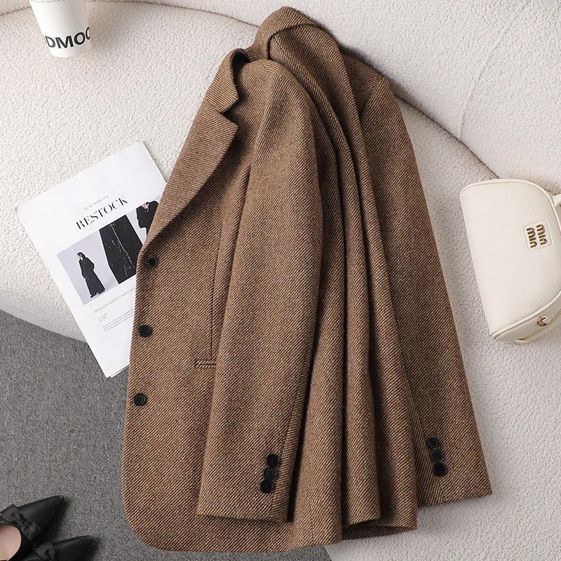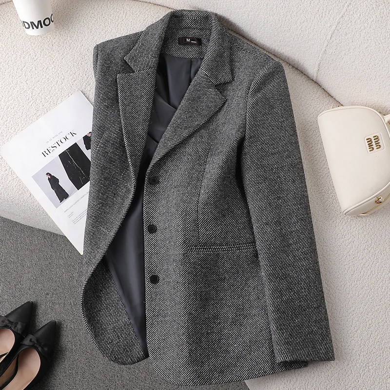 ZJYT Elegant Women’s Woolen Jackets Coats Autumn Winter Fashion Korean Style Casual Blazers Feminino Turn Down Collar Outerwears